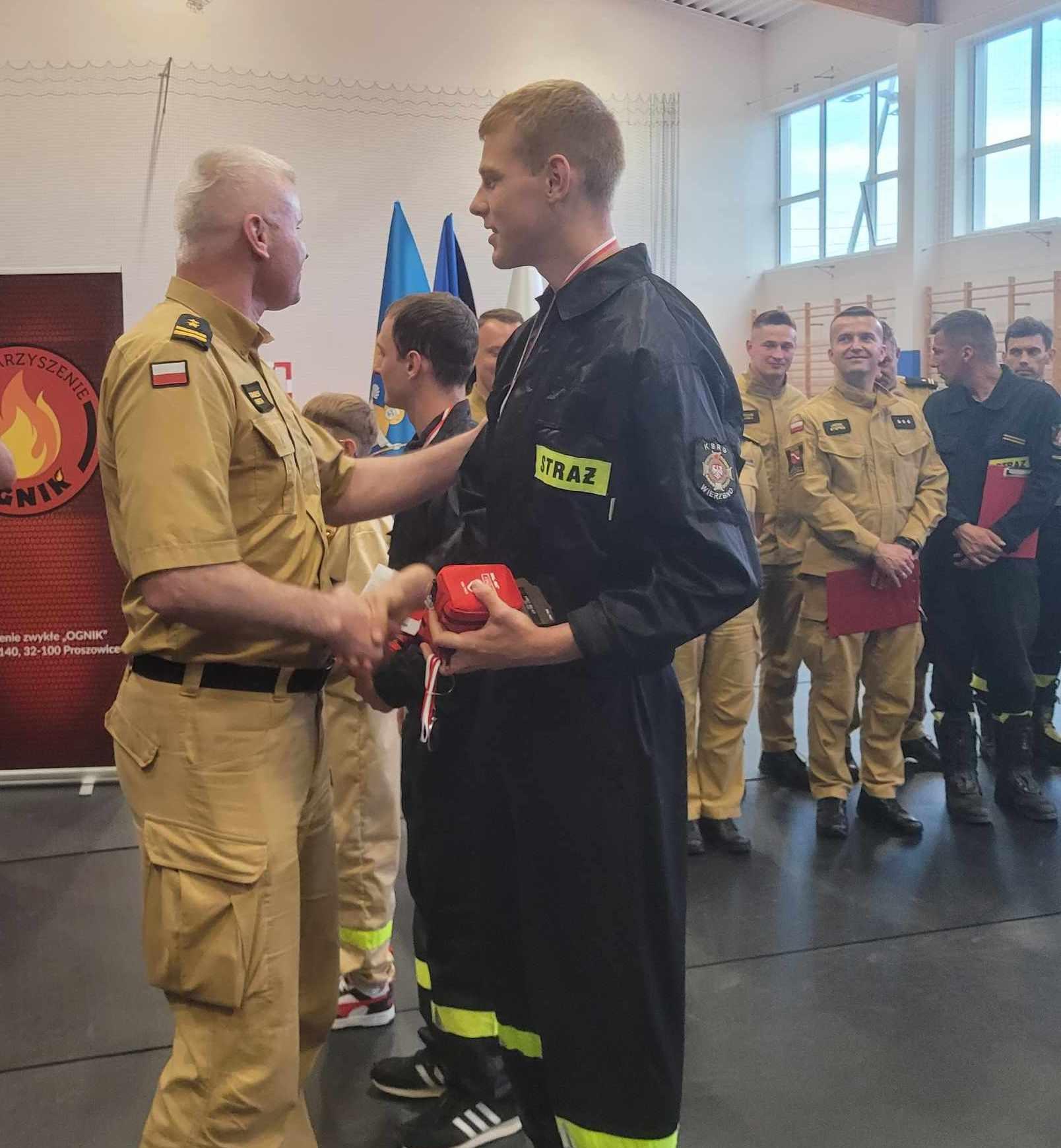 Pamiątkowe, puchary, medale, upominki i dyplomy wręczyli: Komendant Powiatowy PSP w Proszowicach bryg. Zbigniew Kwinta, Prezes Zarząd Oddziału Powiatowego Związku OSP RP w Proszowicach dh Marcin Gaweł, Prezesi Zarządów Oddziałów Miejsko Gminnego ZOSP RP w Nowym Brzesku dh Józef Krosta i Oddziału Gminnego ZOSP RP w Koniuszy dh Aleksander Szopa, Burmistrz Gminy i Miasta Nowe Brzesko Krzysztof Madejski i Wójt Gminy Koniusza Hubert Wawrzeń.