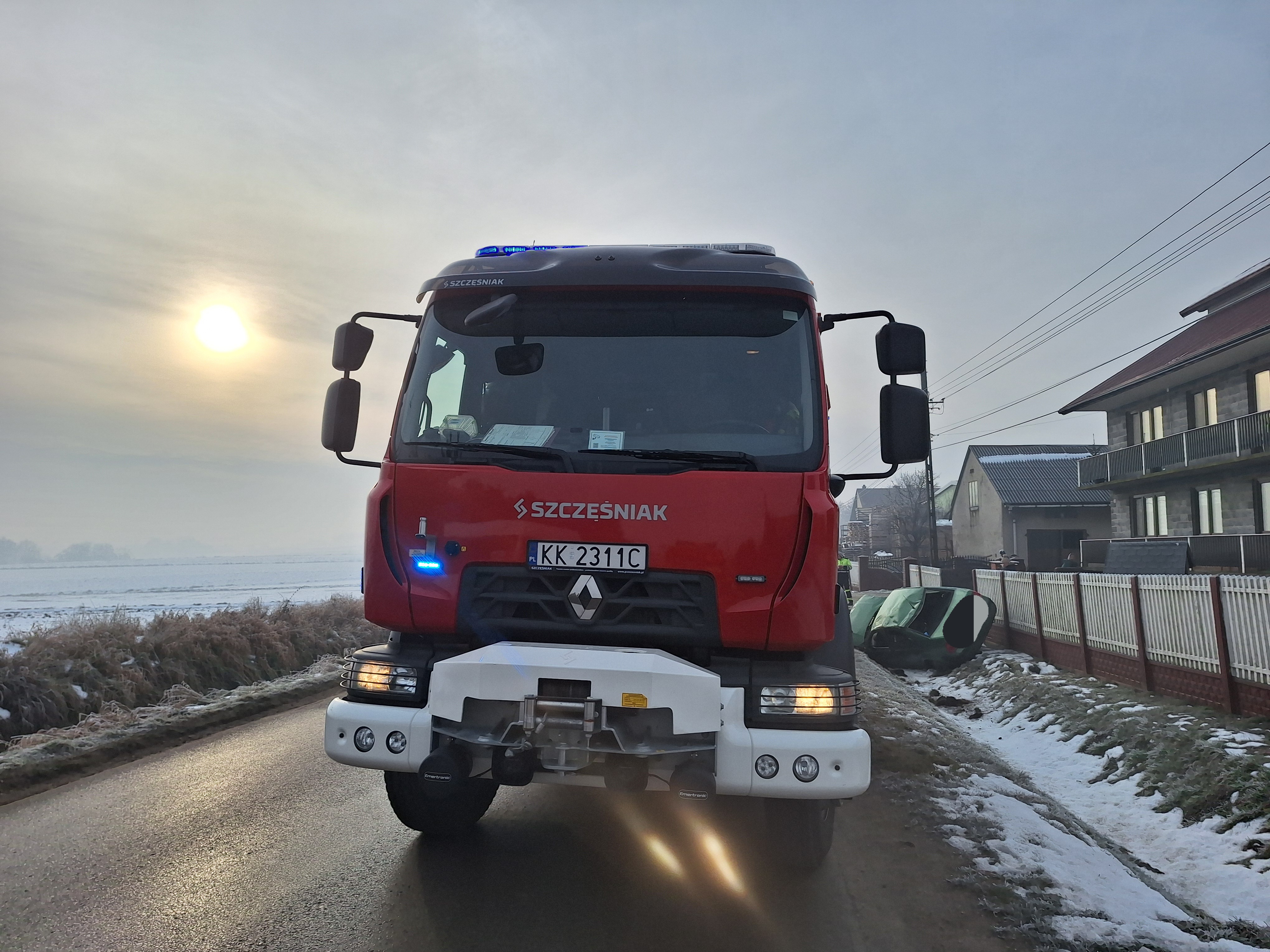 21 stycznia 2025 r Stanowisko Kierowania Komendanta Powiatowego PSP w Proszowicach otrzymało zgłoszenie o wypadku samochodu w Szczytnikach. Po przybyciu na miejsce stwierdzono, że w przydrożnym rowie znajduje się samochód osobowy. Strażacy udzieli pomocy medycznej kierującej pojazdem, która opuściła samochód o własnych siłach, następnie przekazano poszkodowaną Zespołowi Ratownictwa Medycznego.