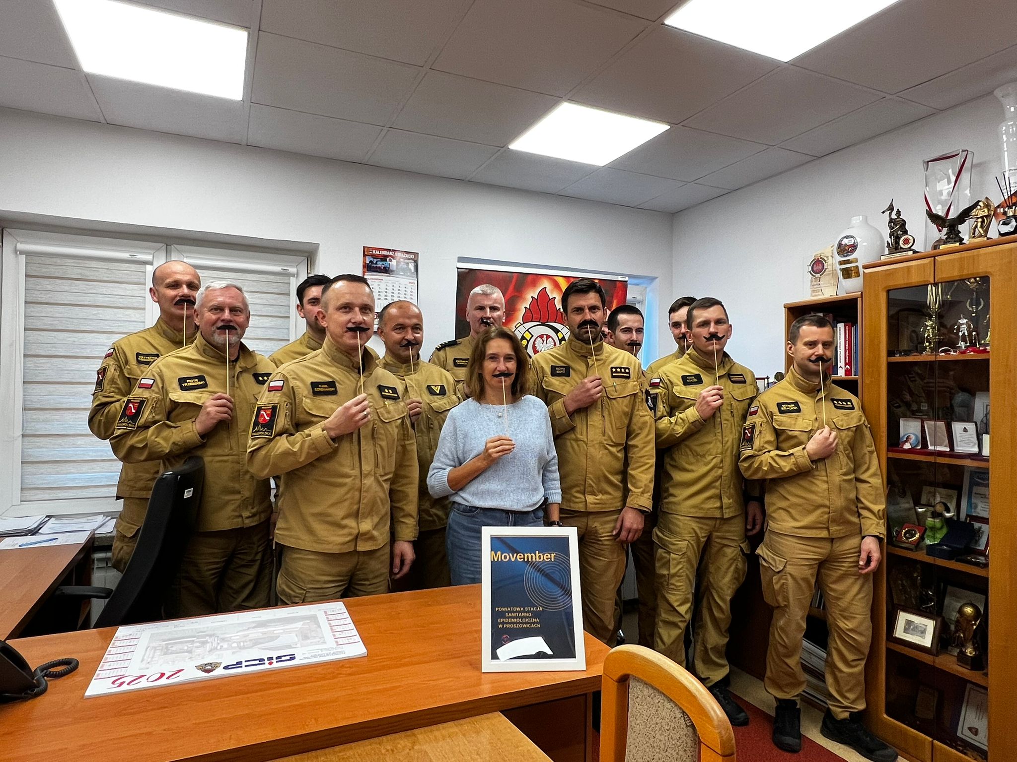 Powiatowa Stacja Sanitarno - Epidemiologiczna w Proszowicach prowadzi na terenie powiatu proszowickiego kampanię "Movember". Delegacja pracowników stacji odwiedziła również KP PSP w Proszowicach. Więcej o akcji można poczytać na stronie PSSE w Proszowicach