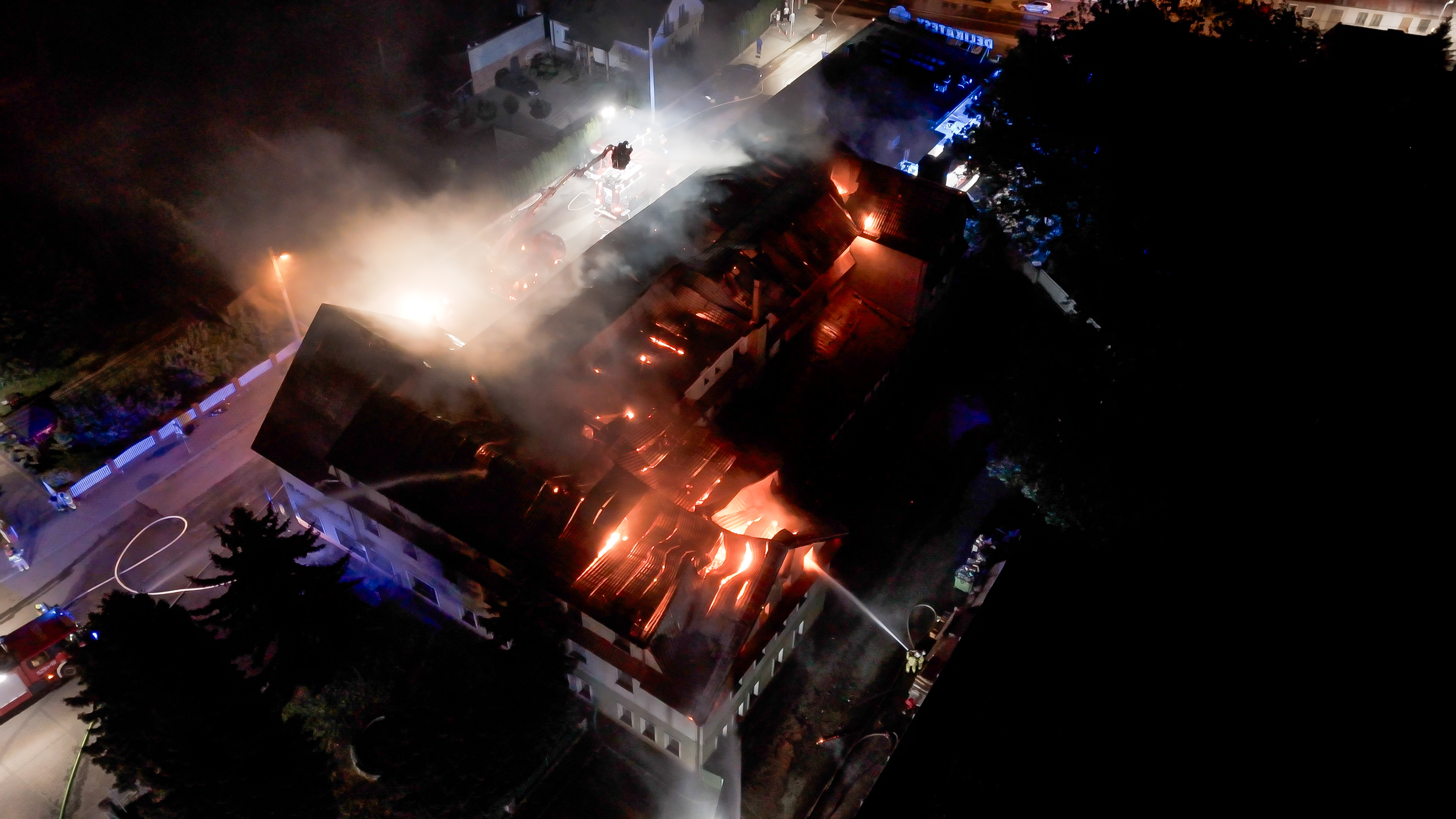 7 lipca 2025 roku kilka minut po północy do Stanowiska Kierowania Komendanta Powiatowego PSP w Proszowiach, wpłyneło zgłoszenie o pożarze w Nowym Brzesku. Po przybyciu na miejsce zdarzenia pierwszych samochodów strażackich stwierdzono płomienie wydobywające się na zewnątrz otwarami okiennymi i dachem. Wszystkie osoby przebywające w części hotelowej bezpiecznie ewakuowały się na zewnątrz przed przybyciem strażaków. Na miejsce pożaru podawano wodę nie tylko z poziomu grutnu, ale również z dwóch podnośników hydraulicznych i jednej drabiny mechanicznej. Po ugaszeniu rozebrano część dachu w celu dogaszenia zarzewi ognia.