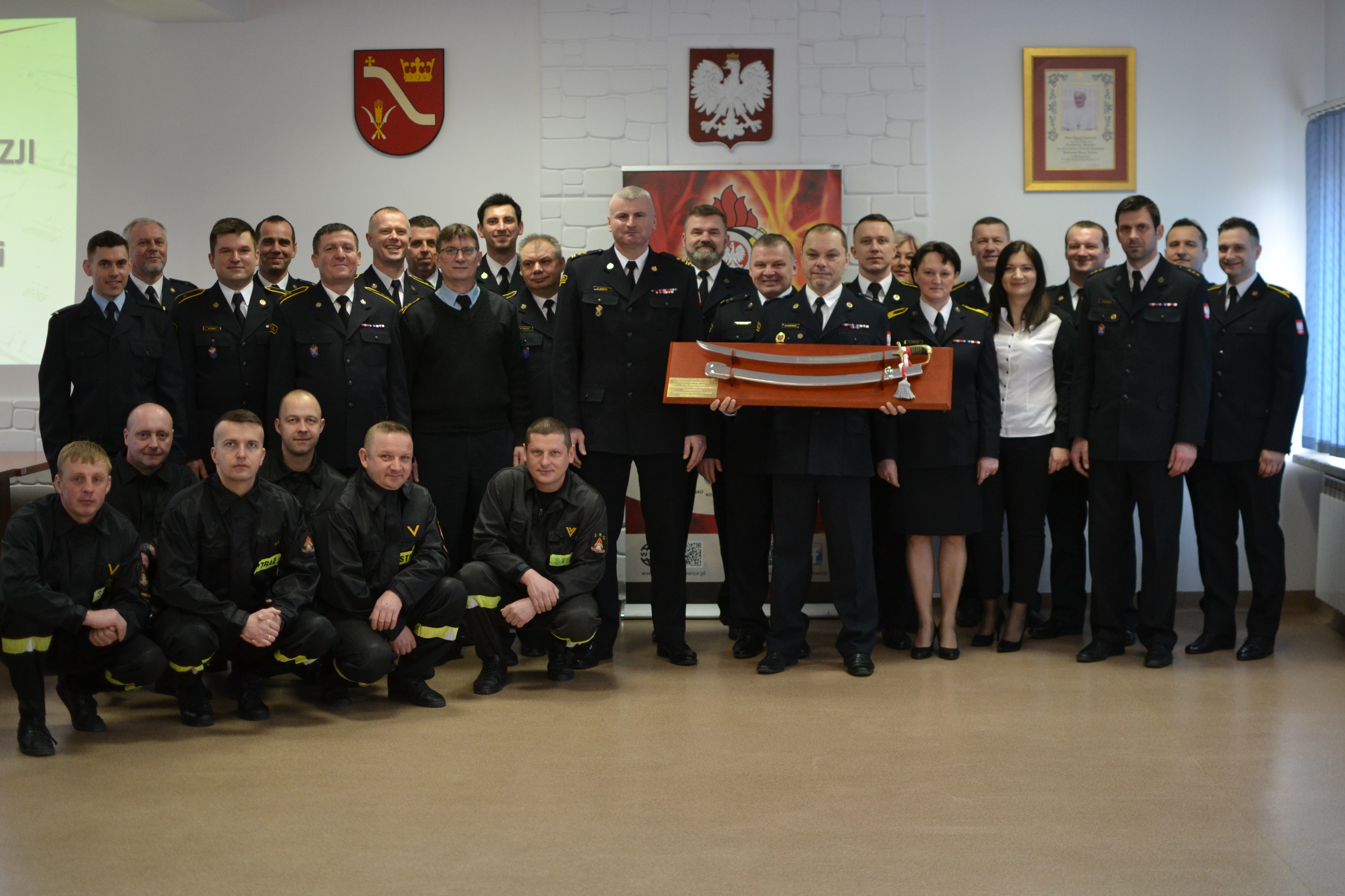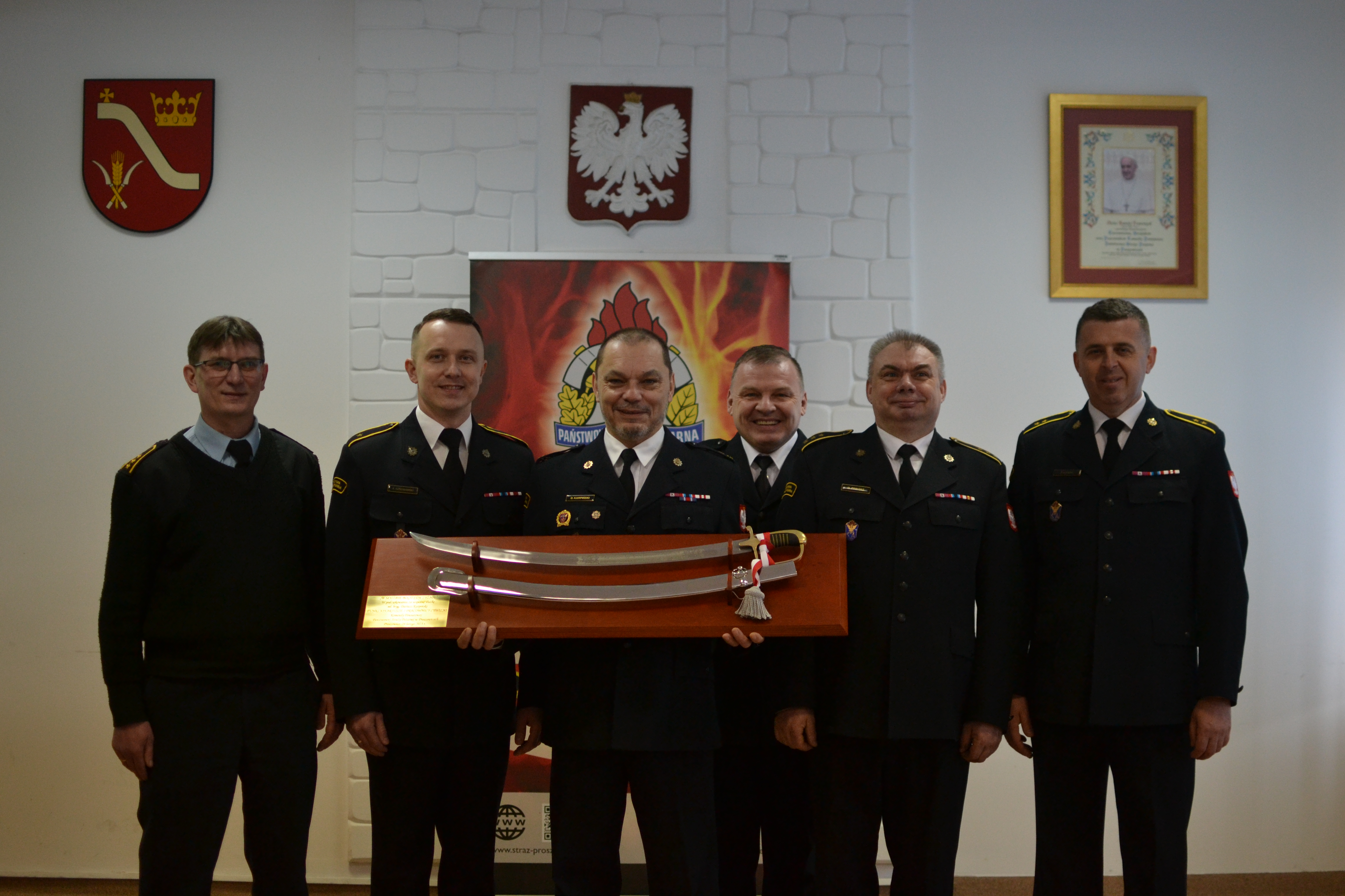 W piątek 3 marca 2023 r. odbyło się uroczyste pożegnanie ze służbą w Państwowej Straży Pożarnej młodszego brygadiera Dariusza Karpińskiego – dyżurnego operacyjnego stanowiska kierowania Komendanta Powiatowego Państwowej Straży Pożarnej w Proszowicach. Na pożegnalnym spotkaniu obecni byli strażacy i pracownicy Komendy Powiatowej PSP.