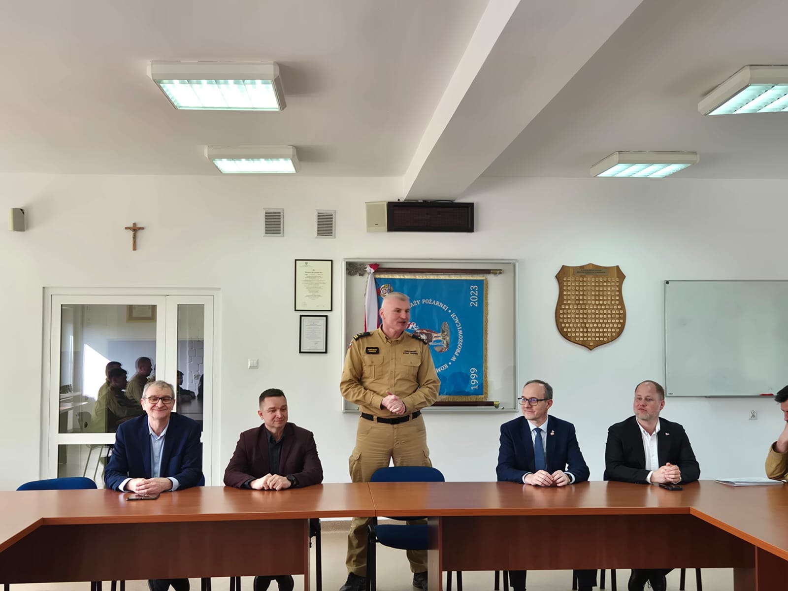 W przekaniu uczestniczył Komendant Powiatowy PSP w Proszowicach bryg. Zbigniew Kwinta, Starosta Powiatu Proszowickiego Wojciech Rzadkowski, Sekretarz Gminy i Miasta Proszowice Magdalena Koperczak - Basta, Burmistrz Miasta i Gminy Koszyce Krystian Hytroś, Wójt Gminy Nowe Brzesko Krzystof Madejski, strażacy druhowie z OSP do których przekazywany był sprzęt.