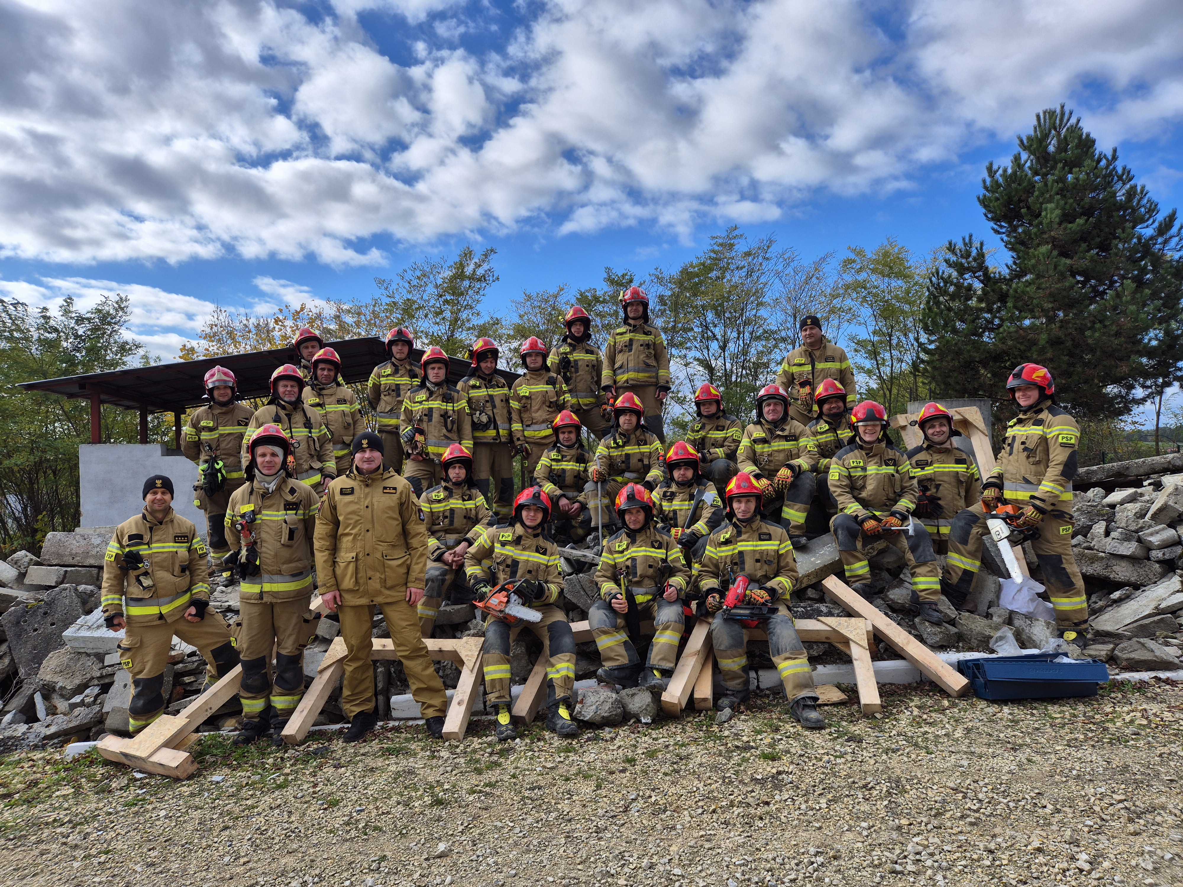 28 października 2025 roku na terenie Poligonu SA PSP w Kościelcu przeprowadzone zostały ćwiczenia z zakresu działań poszukiwawczo - ratowniczych. W warsztatach wzięli udział strażacy ze wszystkich zmian służbowych JRG Proszowice. Miejscem ćwiczeń było gruzowisko a symulowało to wybuch gazu w domu jednorodzinnym, w którym pod gruzami pozostały dwie osoby. Strażacy pod okiem przeszkolonych instruktorów przy pomocy drewna umacniali konstrukcję budowlaną tak, aby dotrzeć w sposób bezpieczny do poszkodowanych. Warsztaty oraz cenne wnioski z nich na pewno zaprocentują w przyszłości.