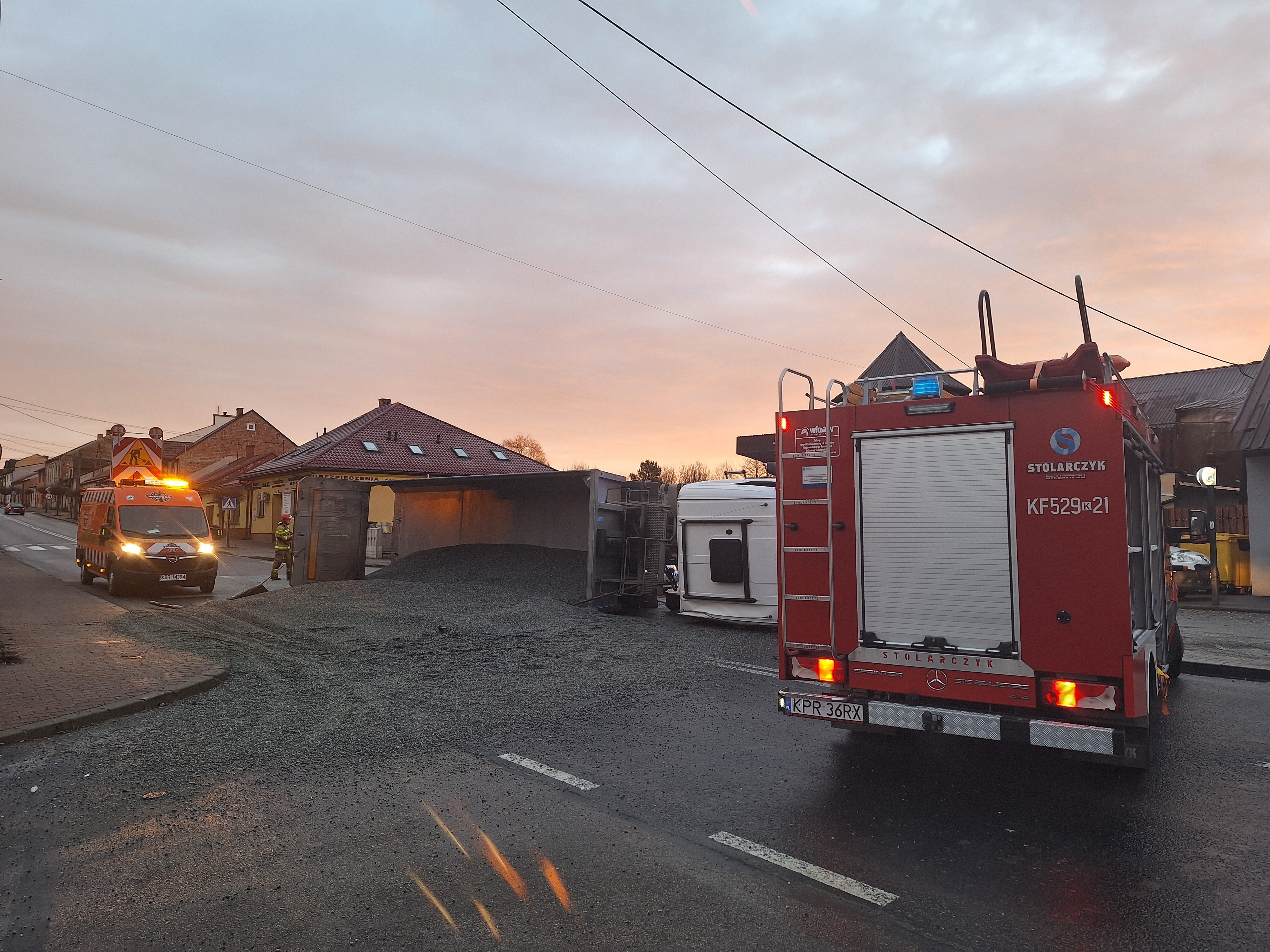 Wypadek samochodu ciężarowego - jedna osoba poszkodowana