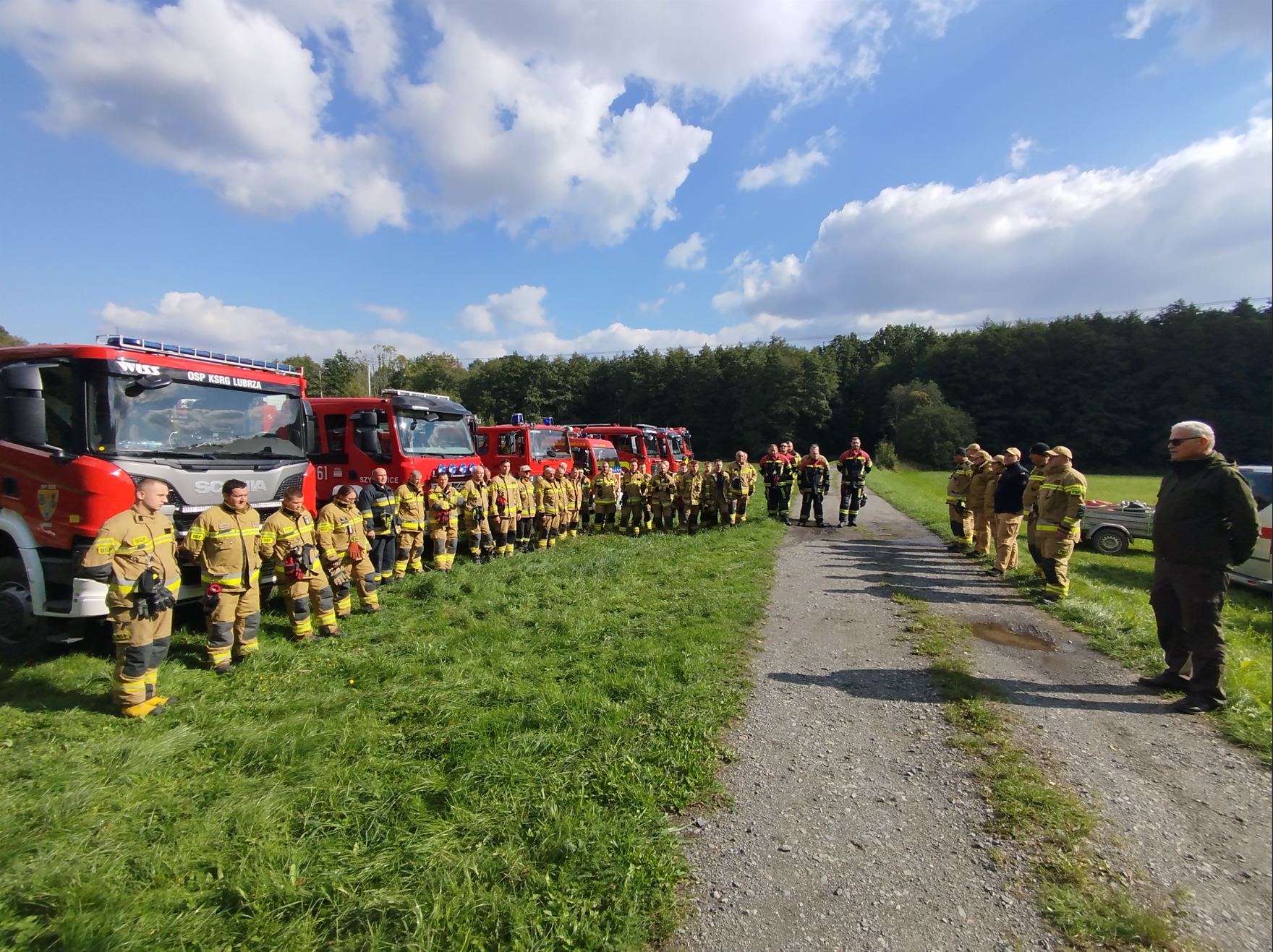 02.10.2025 roku w miejscowości Niemysłowice w oddziale leśnym 61 Nadleśnictwa Prudnik miały miejsce ćwiczenia praktyczne dla jednostek KSRG z terenu powiatu prudnickiego oraz współdziałających służb Nadleśnictwa Prudnik.