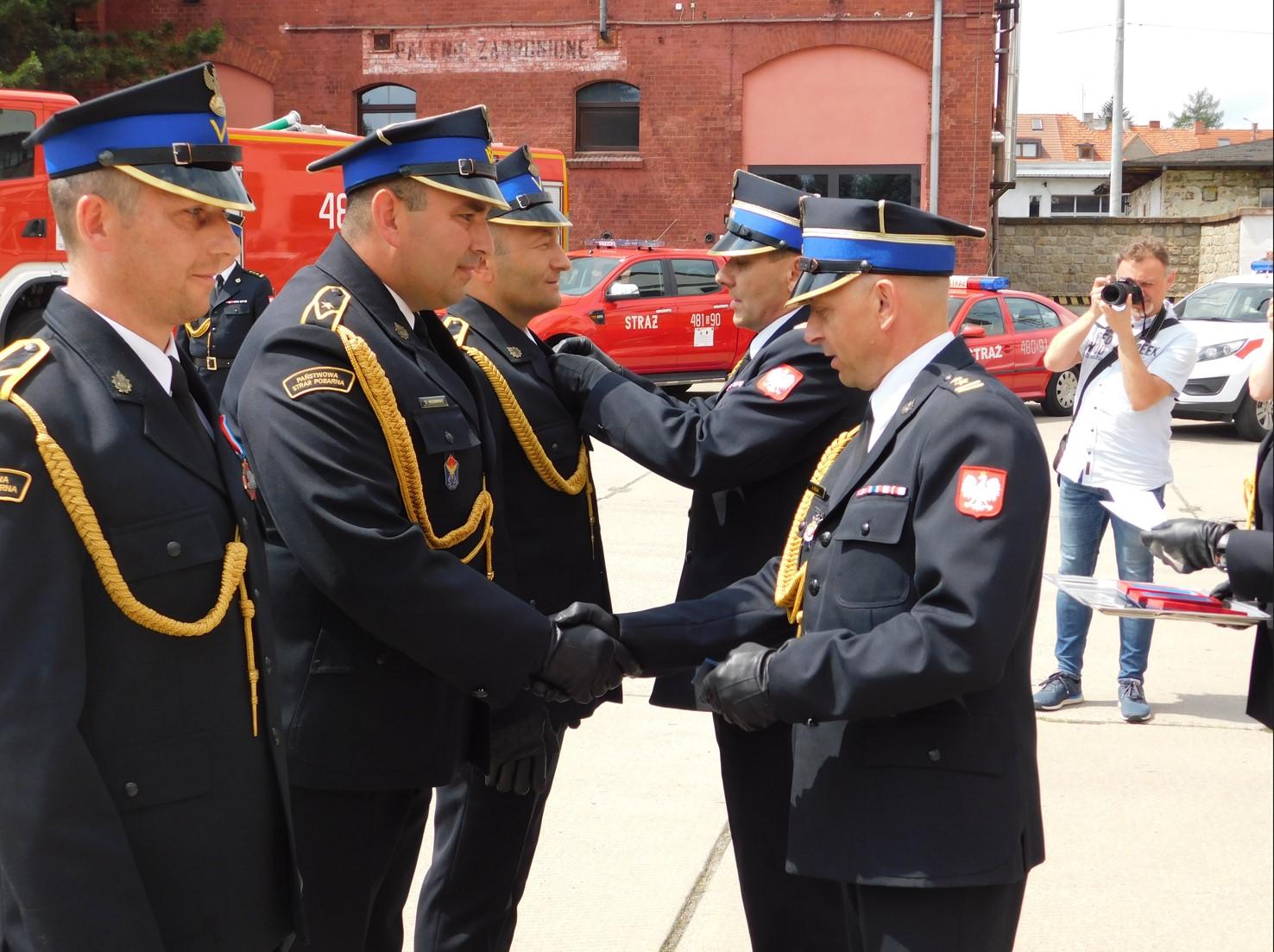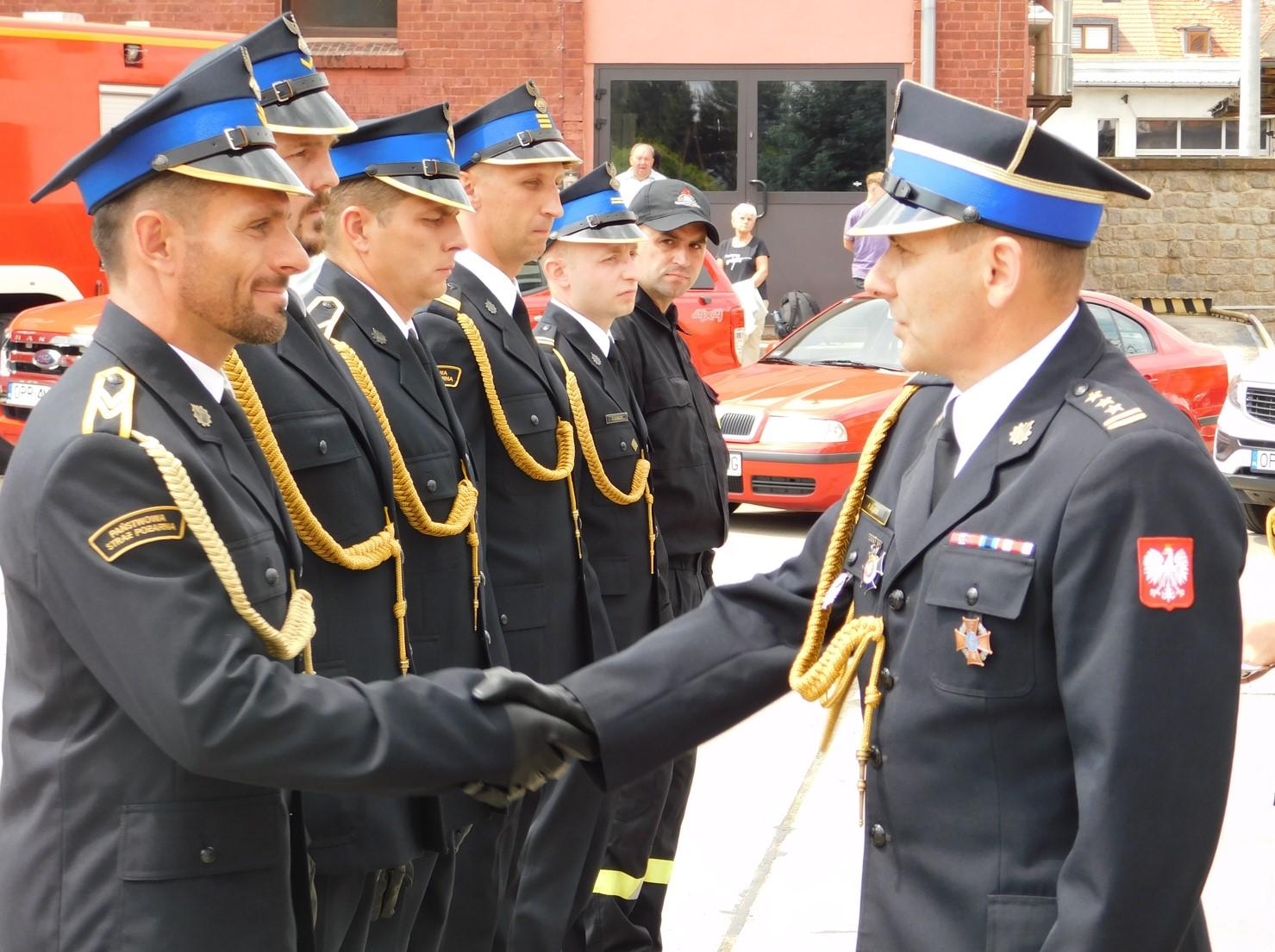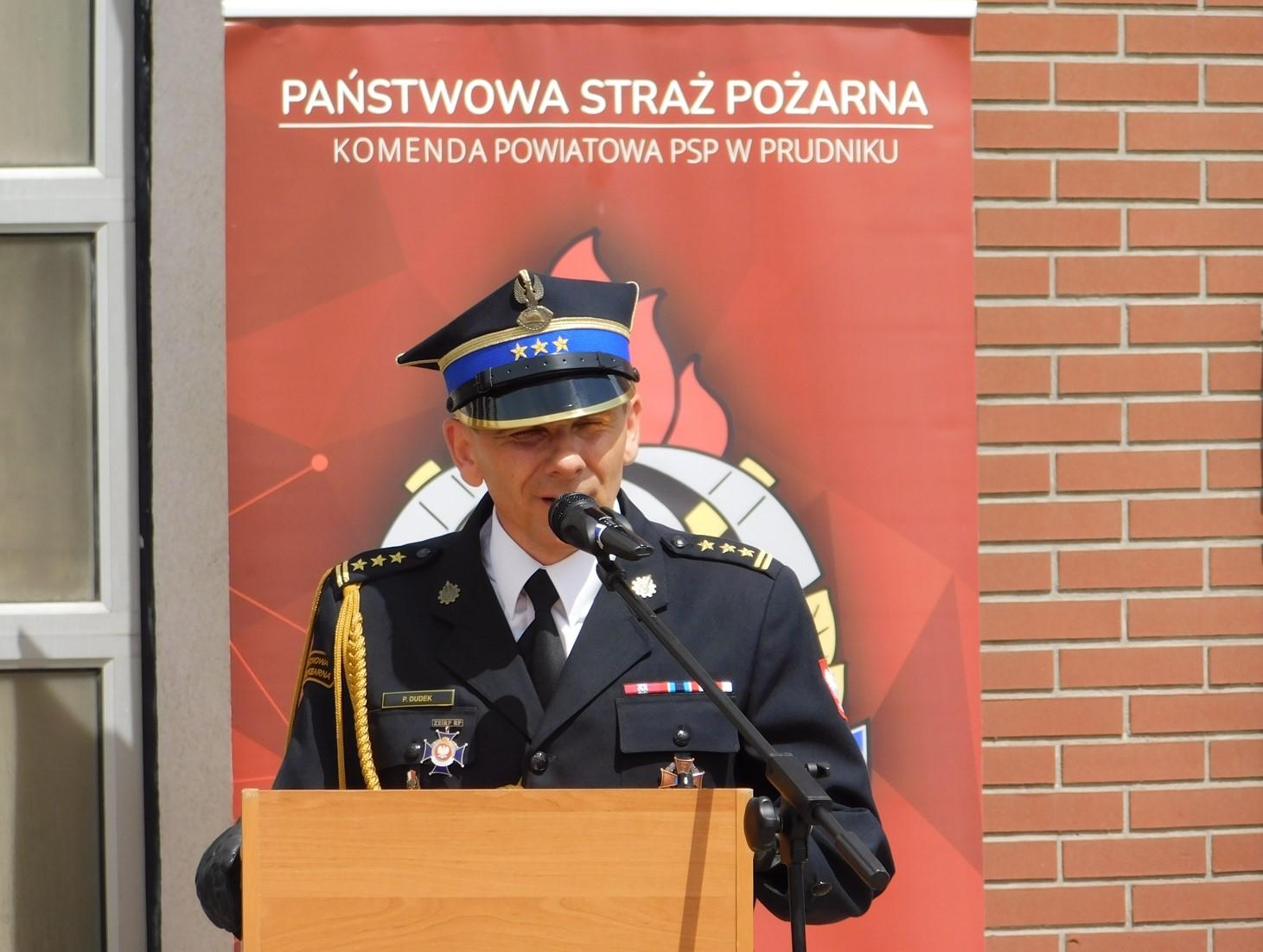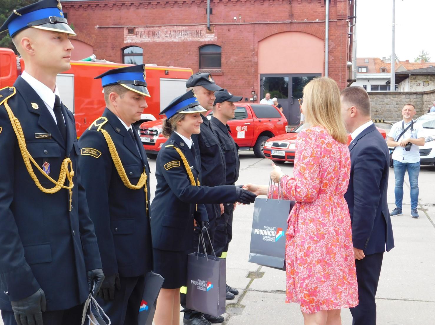 Podczas uroczystego apelu wręczono odznaczenia, awanse na wyższe stopnie służbowe, wyróżnienia oraz nagrody rzeczowe Starosty Prudnickiego.