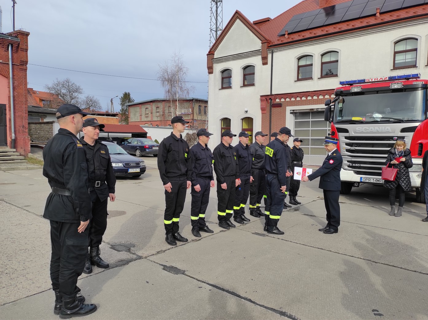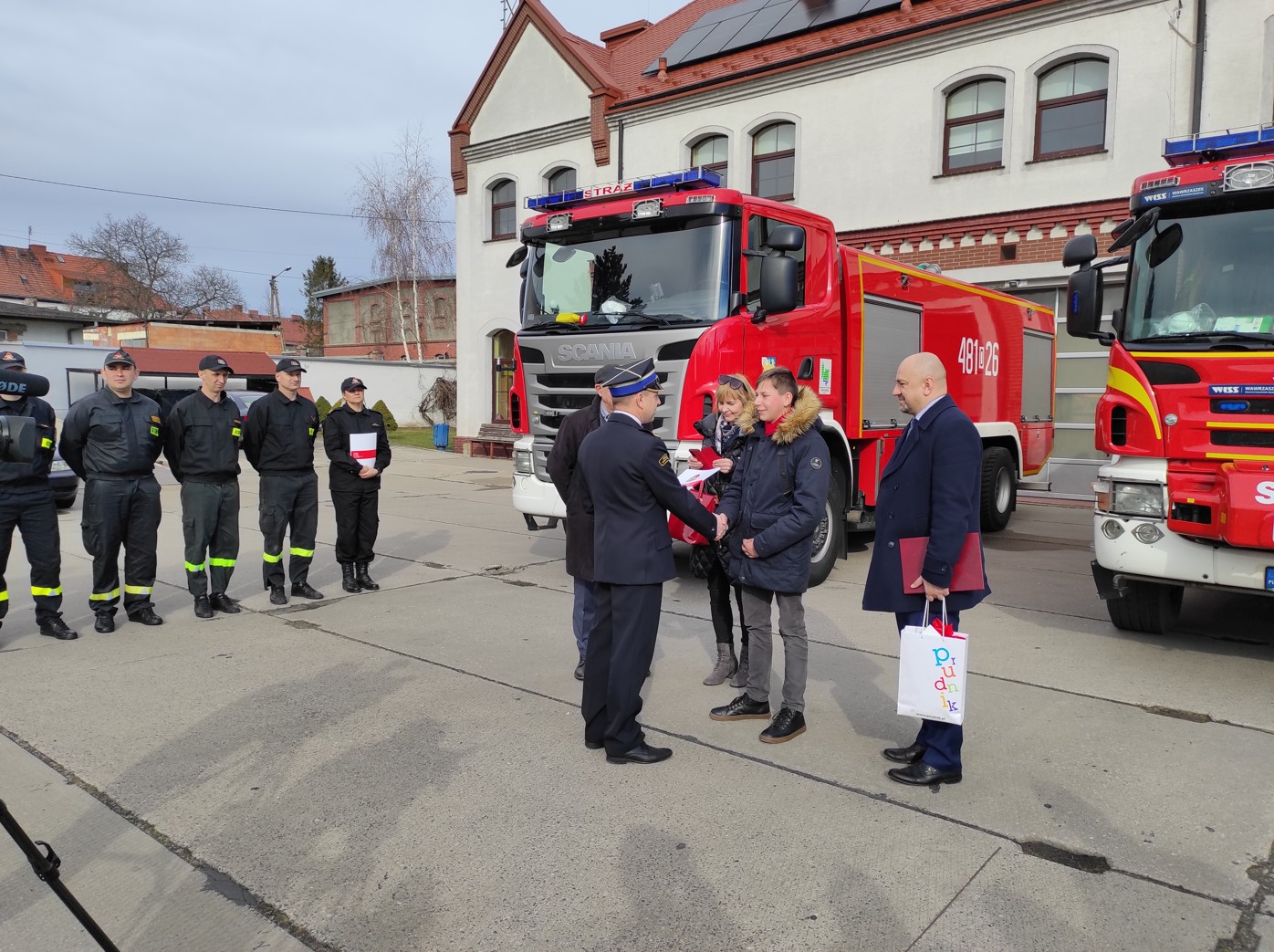 W dniu 16 lutego 2022 r. na placu wewnętrznym w KP PSP w Prudniku miał miejsce uroczysty apel podczas którego mł.bryg. Krzysztof Wiciak Komendant Powiatowy PSP w Prudniku wręczył podziękowanie dla 15 letniego Dominika Jarczewskiego oraz pochwałę dla kpt. Ireneusza Sipiory d-cy zmiany w JRG KP PSP Prudnik.