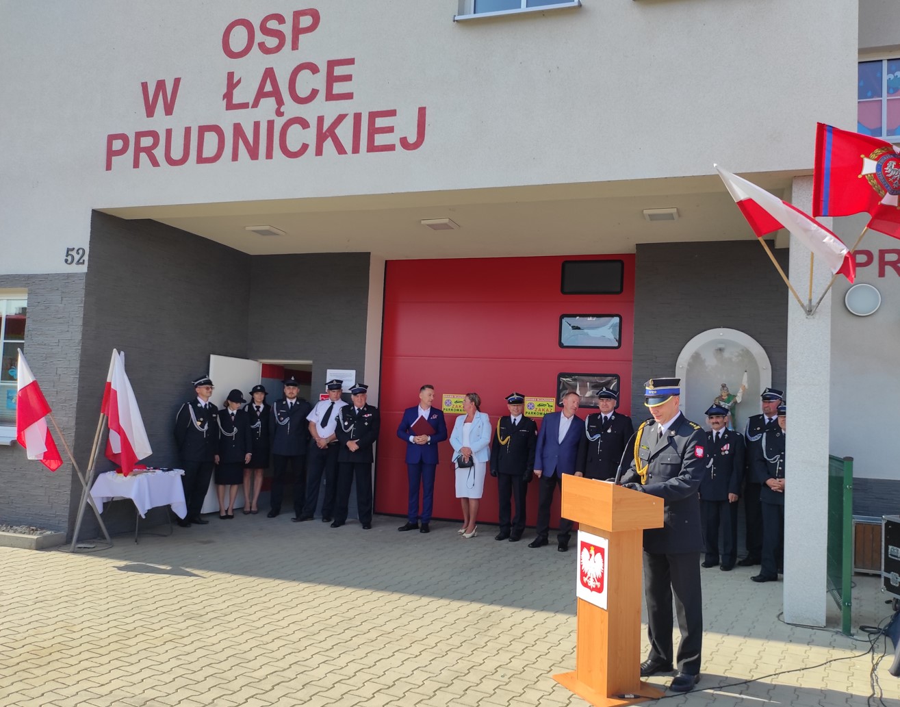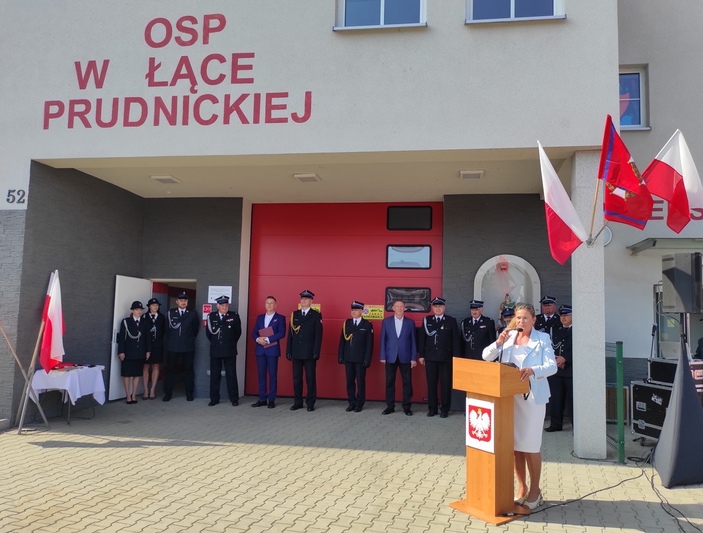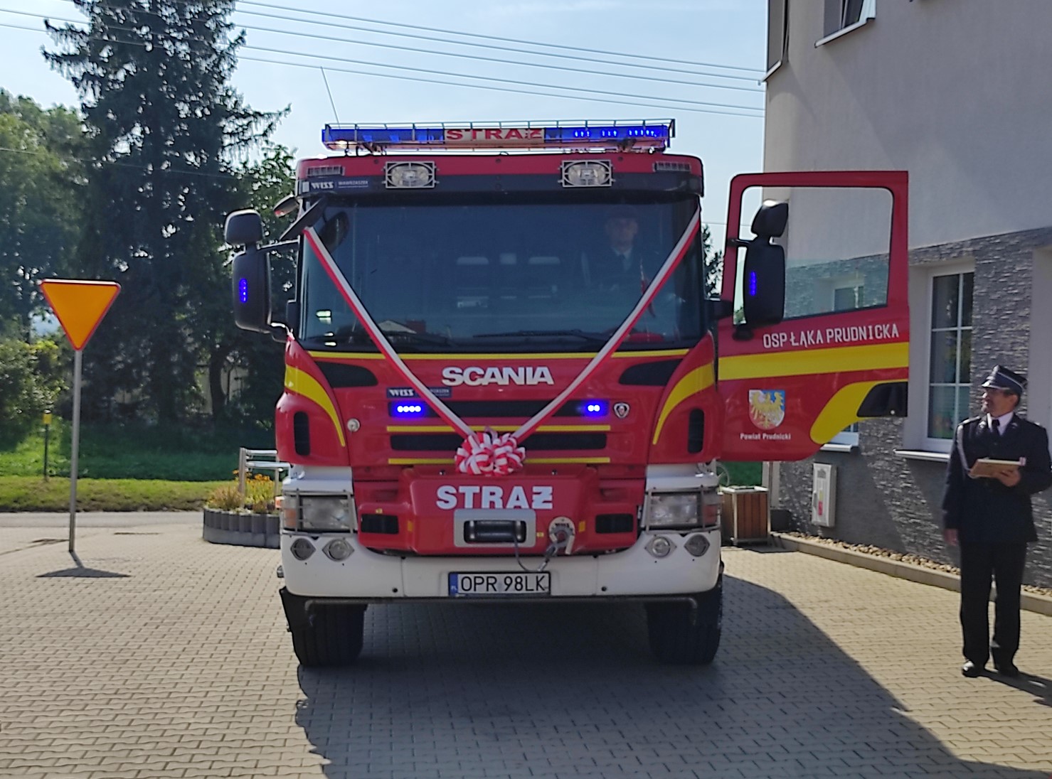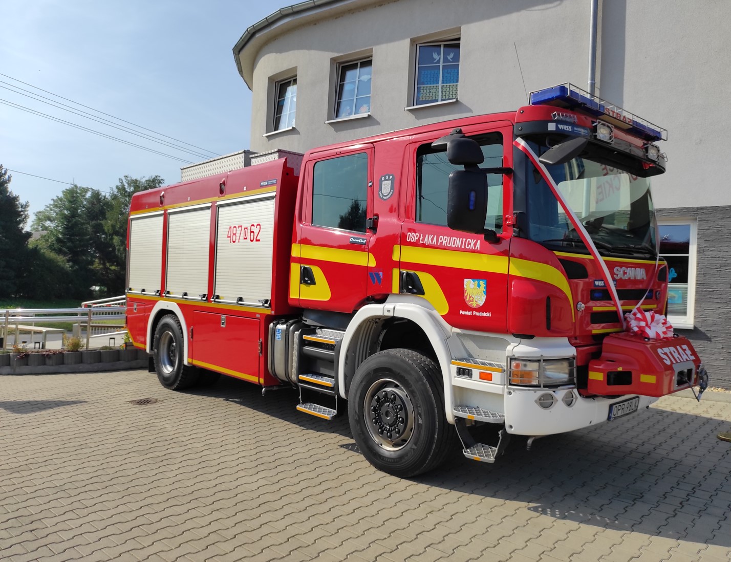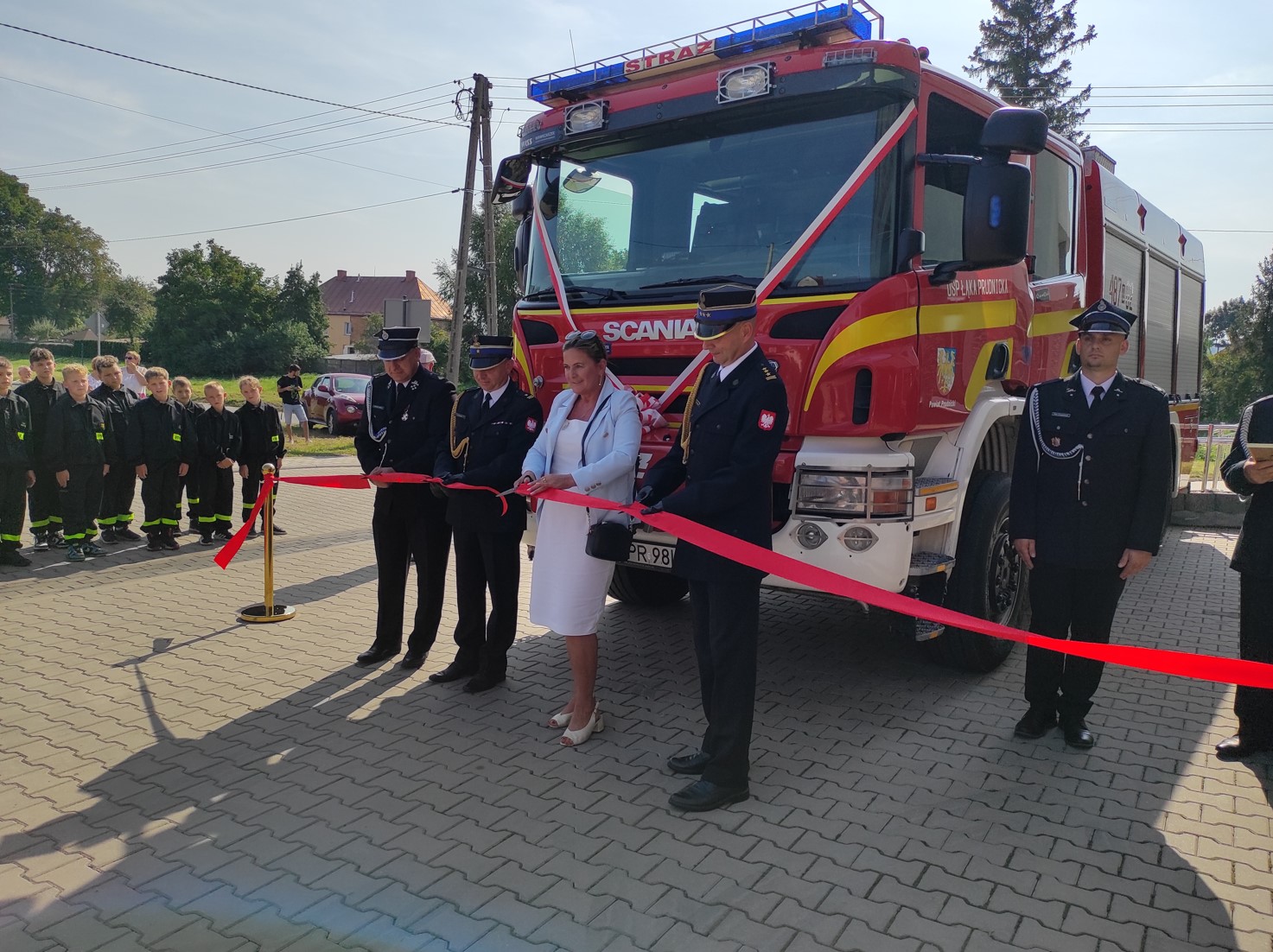 12 września 2023 r. o godz. 11.00 w Łące Prudnickiej na placu przed Domem Kultury a zarazem remizą OSP Łąka Prudnicka gmina Prudnik odbył się uroczysty apel z okazji przekazania i poświecenia ciężkiego samochodu ratowniczo-gaśniczego GCBA 5/36 Scania dla OSP Łąka Prudnicka.
