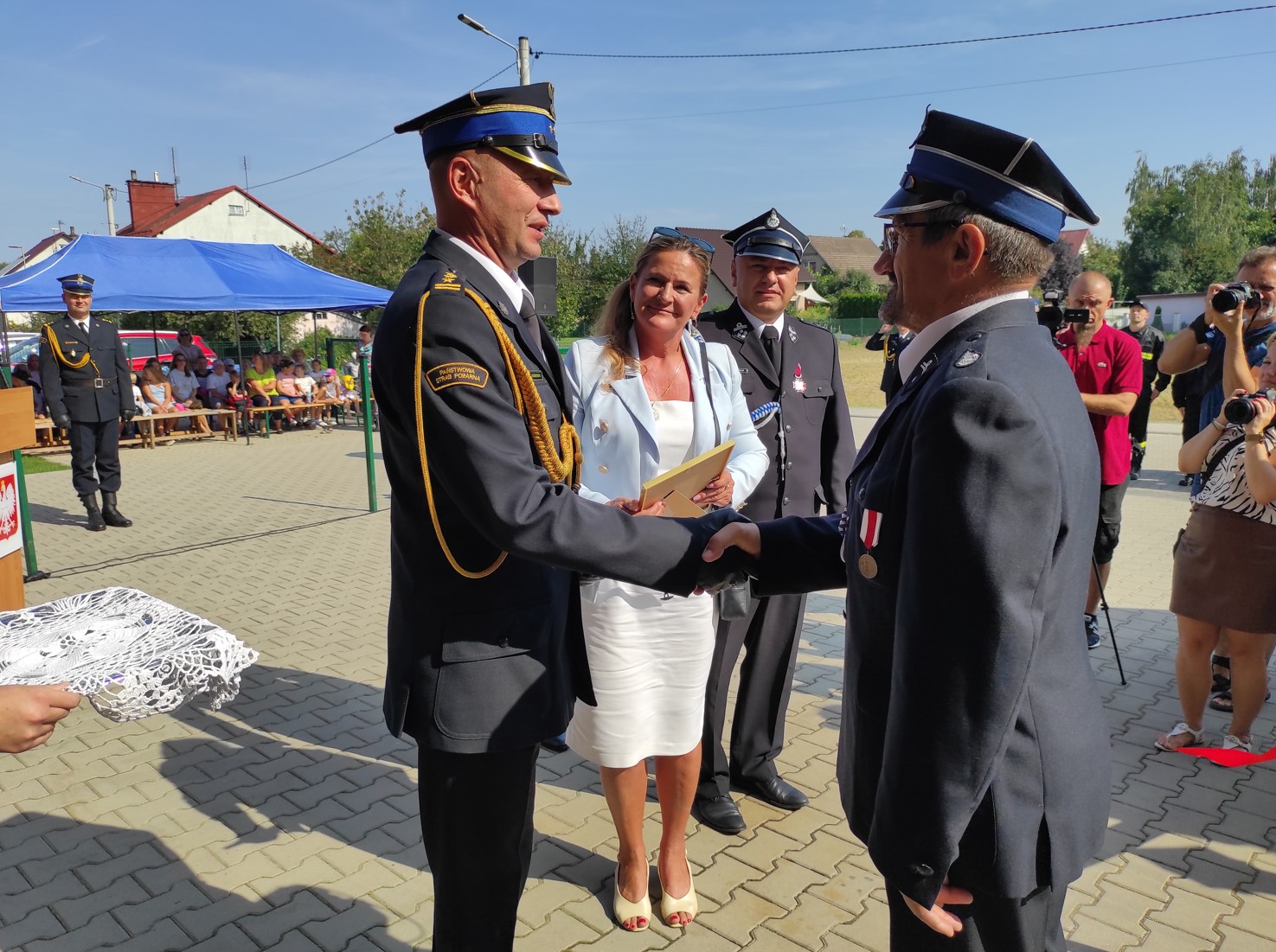 Wśród zaproszonych gości byli obecni: Poseł na Sejm RP Pani Katarzyna Czochara, Zastępca Opolskiego Komendanta Wojewódzkiego Państwowej Straży Pożarnej st.bryg. Arkadiusz Kuśmierski, ks. Krzysztof Maciejak, radni i władze samorządowe.