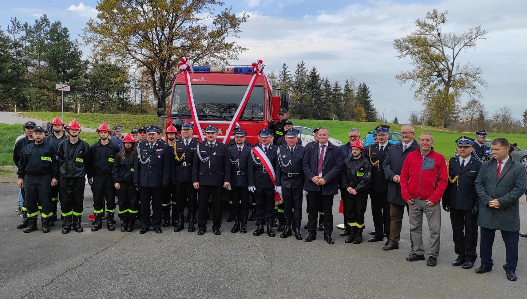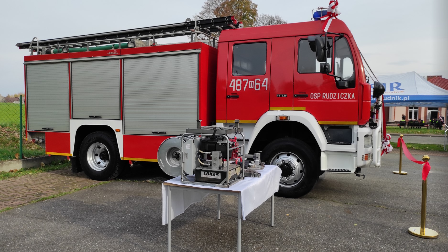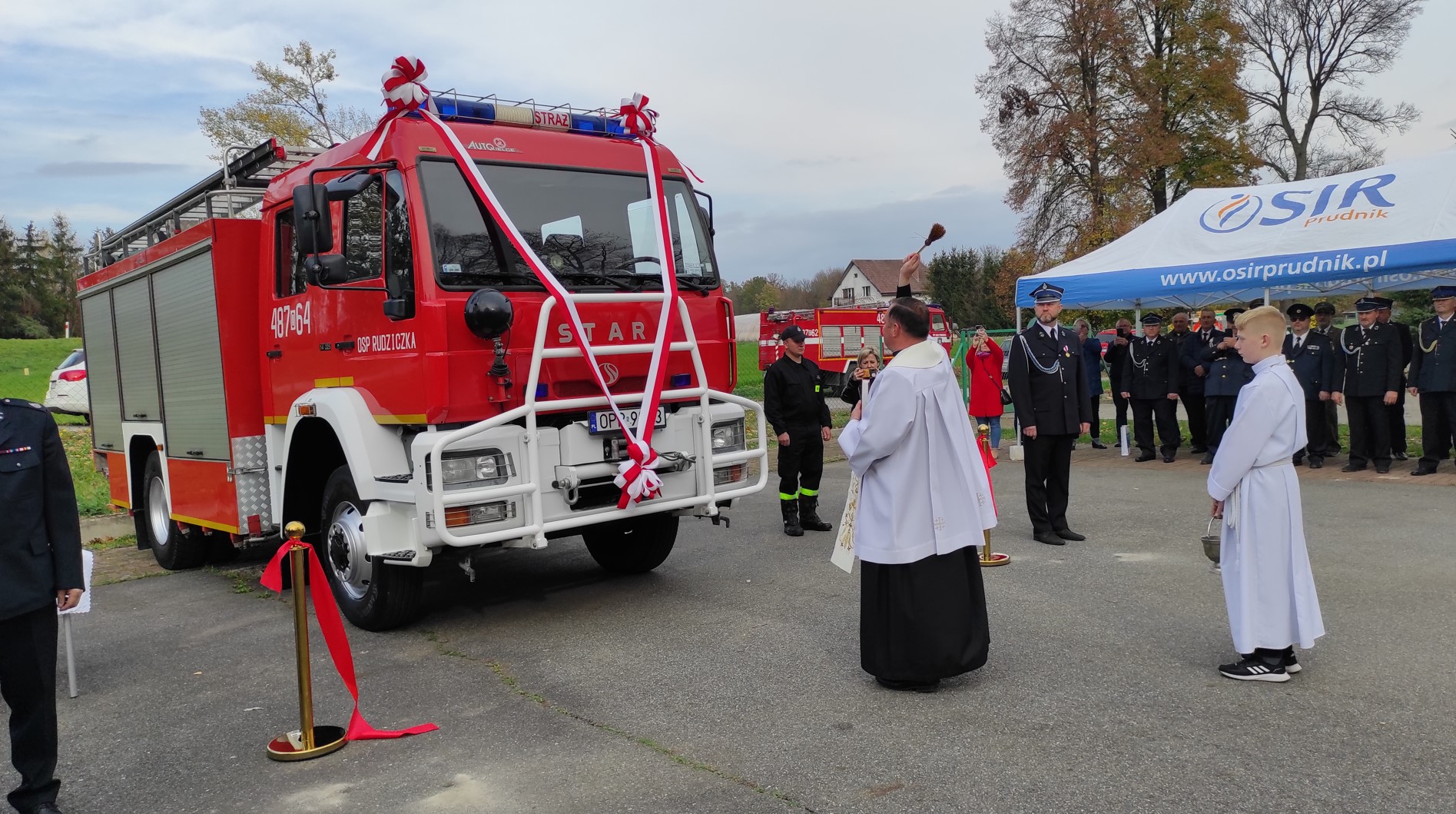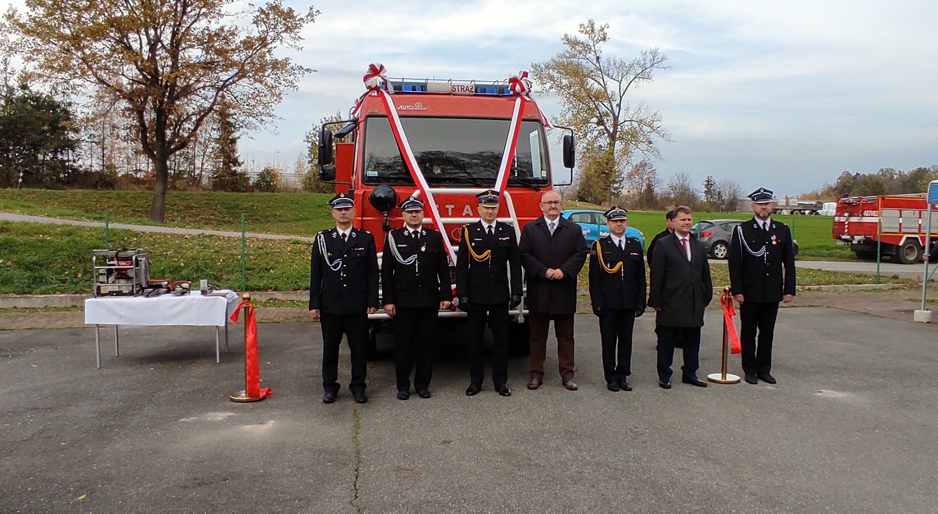 Po odczytaniu aktów przekazania średniego samochodu ratowniczo gaśniczego dla OSP Rudziczka oraz hydraulicznego zestawu ratowniczego dla OSP w Szybowicach nastąpiło wręczenie kluczyków oraz aktów przekazania. Następnie przecięcia wstęgi oraz poświęcenia samochodu i sprzętu hydraulicznego dokonali przybyli na uroczystość goście.