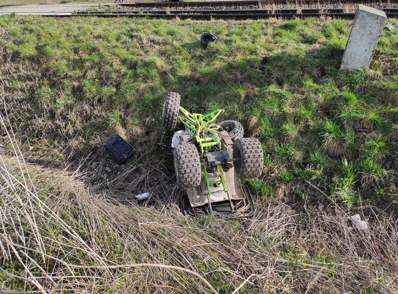 Po przybyciu na miejsce zdarzenia kierujący działaniem ratowniczym w wyniku rozpoznania stwierdził, że na przejeździe kolejowym doszło zderzenia lekkiego pojazdu czterokołowego typu quad z lokomotywą pociągu osobowego. W wyniku zderzenia poszkodowany został 10 letni chłopiec kierujący Fuadem.