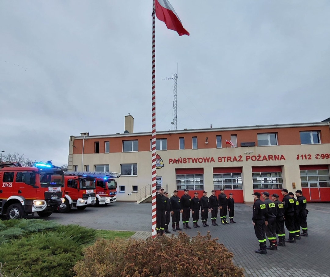 W dniu 11 listopada 2022 roku z okazji 104 rocznicy odzyskania przez Polskę niepodległości, podczas uroczystej zmiany służby w Jednostce Ratowniczo-Gaśniczej Komendy Powiatowej Państwowej Straży Pożarnej w Pruszczu Gdańskim przy dźwiękach hymnu państwowego podniesiono flagę państwową na maszt.