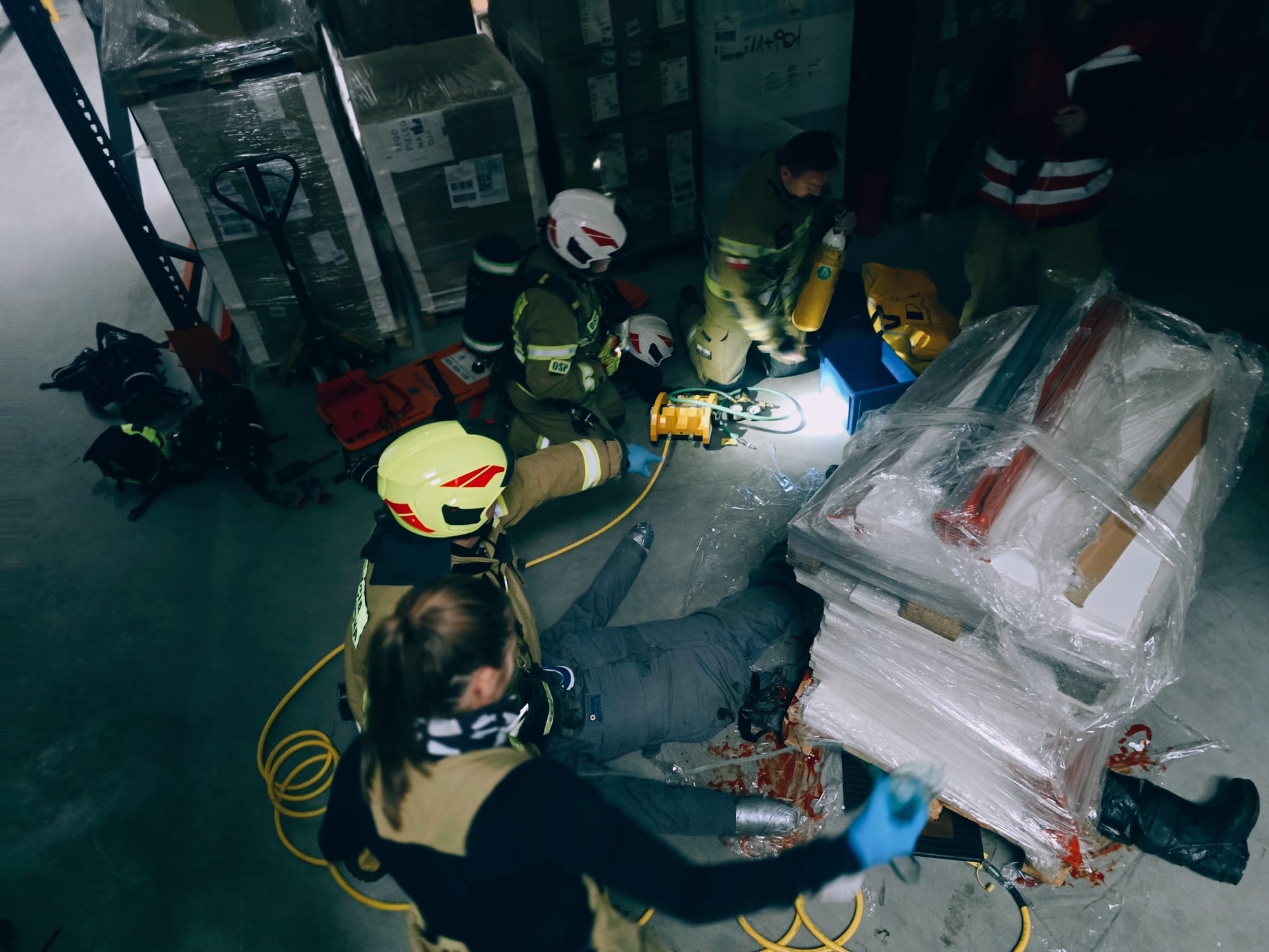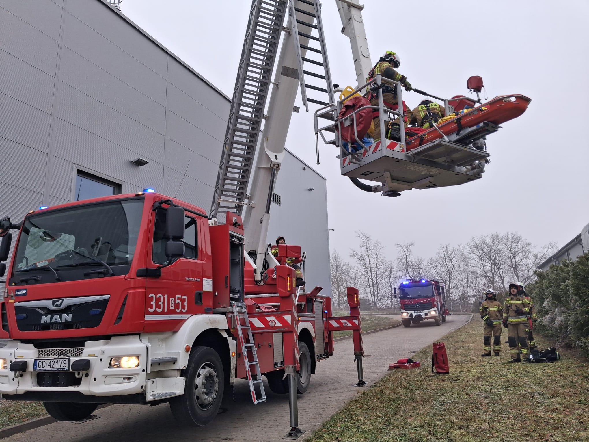 Strażacy z powiatu gdańskiego mieli okazję wziąć udział w ćwiczeniach na terenie kompleksu prodykcyjno-magazynowego w Kolbudach, podczas których strażacy z JRG oraz OSP ćwiczyli m. in. elementy taktyki ratowniczo-gaśniczej, ewakuacje osób poszkodownych oraz udzialanie Kwalifikowanej Pierwszej Pomocy, a także doskonalili umiejętności w kierowaniu działaniami. Była to także świetna okazja, aby zapoznać się ze specyfiką i warunkami ochrony przeciwpożarowej obiektów oraz stanem dróg dojazdowych i pożarowych. Pracownicy firmy mieli okazję przypomnieć sobie zasady sprawnej i bezpiecznej ewakuacji z obiektów w przypadku zagrożenia pożarem.