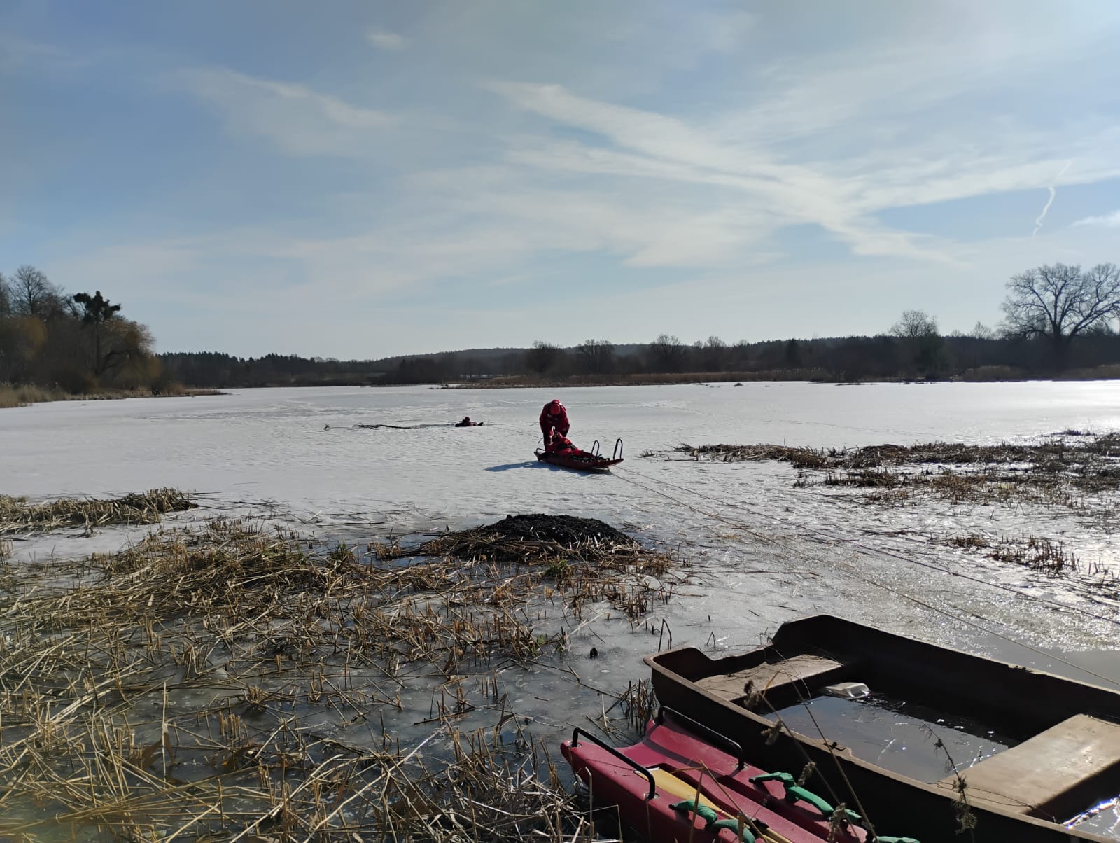 W dniach 03-05 marca 2026 r. zostały przeprowadzone ćwiczenia z zakresu ratownictwa wodno-lodowego na zbiorniku wodnym w Sobowidzu. W ćwiczeniach udział brały siły i środki z JRG Pruszcz Gdański oraz OSP z terenu powiatu.