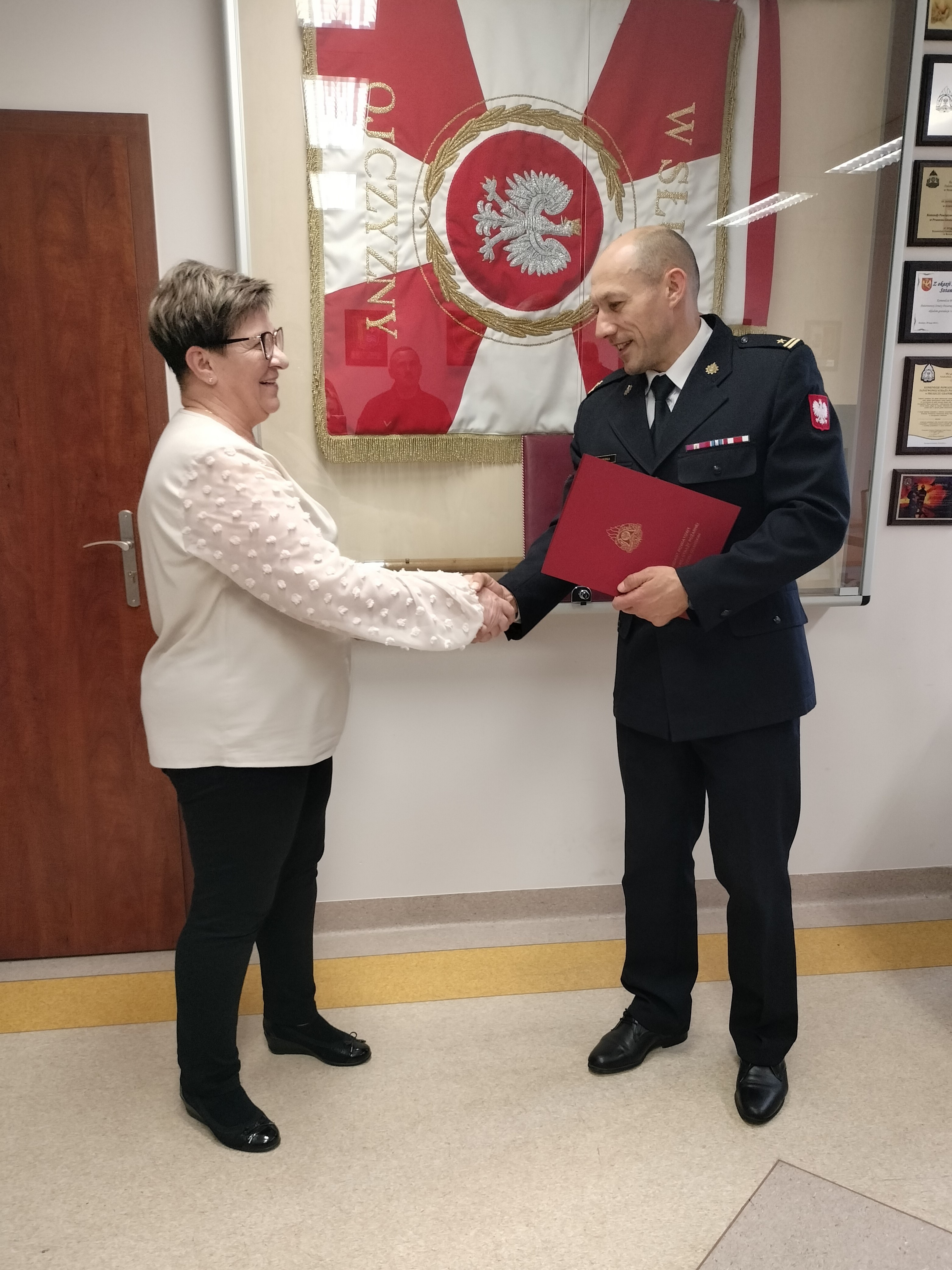 28 marca 2024 r. Pani Maria Soja obchodziła Jubileusz 35 – lecia pracy. Z tej okazji p. o. komendanta powiatowego PSP w Pruszczu Gdańskim mł. bryg. Zbigniew Rzepka złożył na jej ręce podziękowania za wzorową postawę i sumienną pracę oraz życzył pomyślności w realizacji planów w życiu osobistym i zawodowym. Na ręce jubilatki p. o. komendanta powiatowego PSP w Pruszczu Gdańskim mł. bryg. Zbigniew Rzepka złożył decyzję o przyznaniu jej nagrody jubileuszowej. Gratulujemy wytrwałości i życzymy dalszych sukcesów!