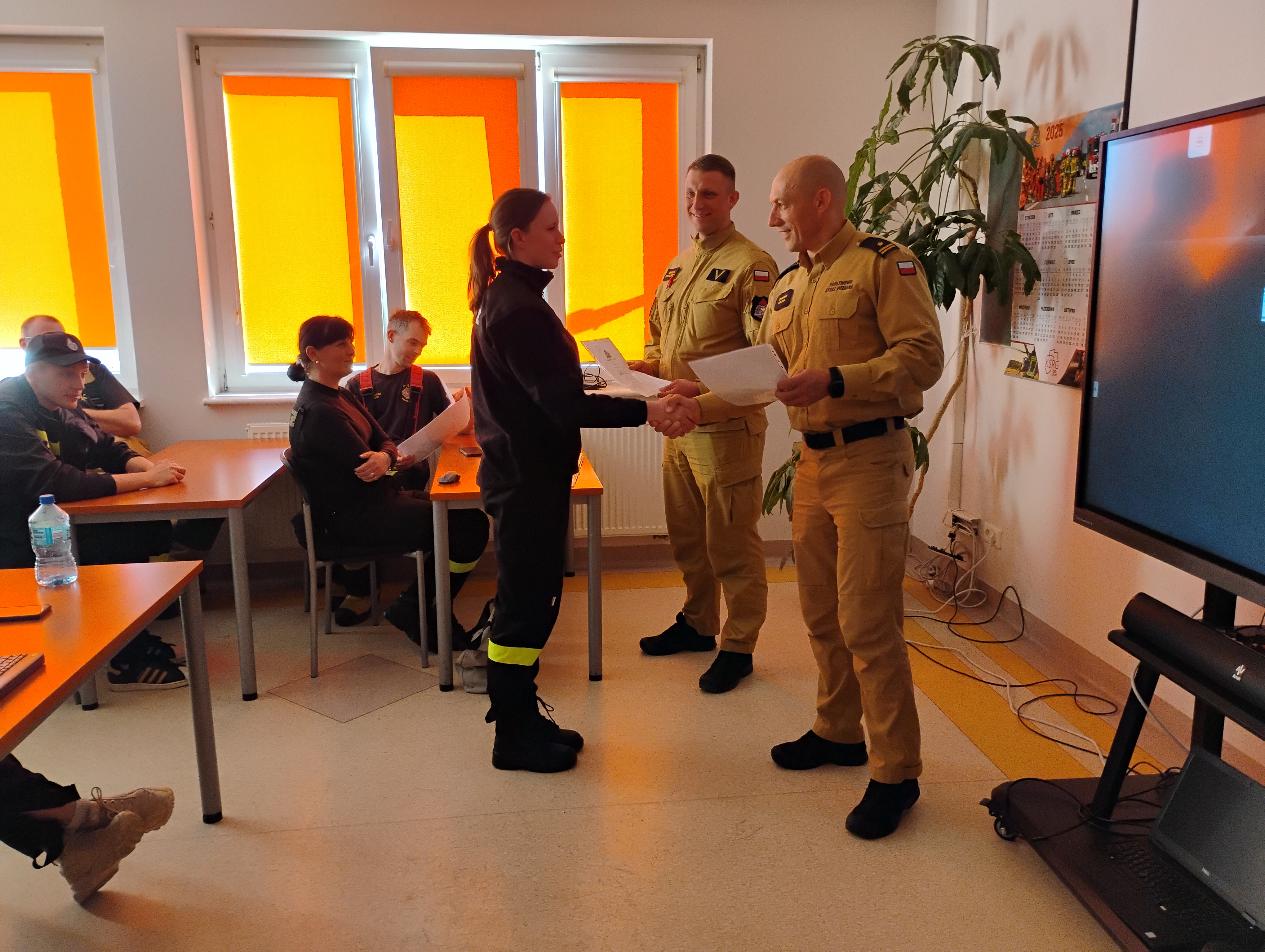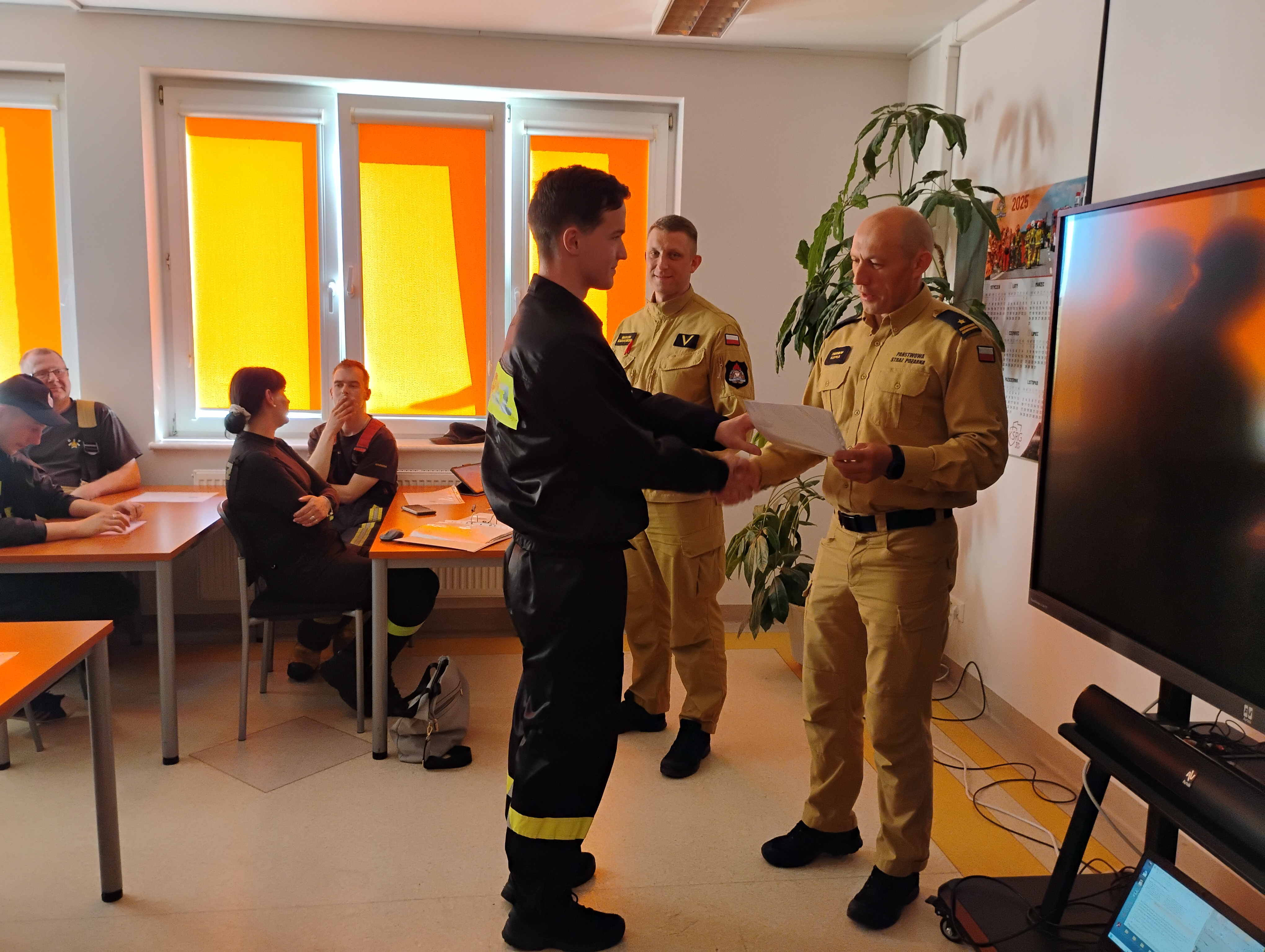 Egzamin końcowy odbył się 26 kwietnia 2025 r. Wszyscy uczestnicy szkolenia uzyskali wynik pozytywny. Uroczystego wręczenia zaświadczeń potwierdzających ukończenie szkolenia dokonał komendant powiatowy PSP w Pruszczu Gdańskim - mł. bryg. Zbigniew Rzepka