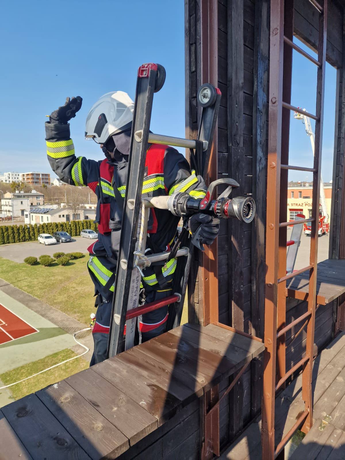 Takie szkolenie to przypomnienie i doskonalenie zasad bezpiecznego prowadzenia działań na wysokości oraz praktycznego wykorzystania sprzętu będącego na wyposażeniu jednostek ochrony przeciwpożarowej.