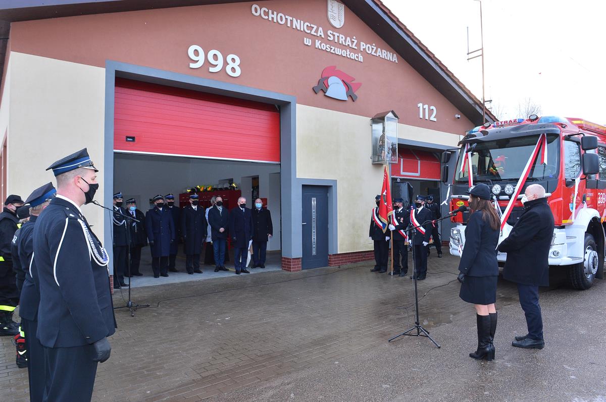 Podczas uroczystości nie zabrakło podziękowań płynących od Wojewody Pomorskiego Pana Dariusza Drelicha podsumowujących pracę i służbę strażaków z Ochotniczej Straży Pożarnej w Koszwałach. Zastępca Pomorskiego Komendanta Wojewódzkiego PSP st. bryg. Tomasz Siemiętowski podkreślił, że zakup nowego wozu pożarniczego był możliwy dzięki dobrej woli ludzi i ich zaangażowaniu, podkreślając „Takich wozów życzyłbym wszystkim jednostkom straży pożarnej. Życzę Wam tyle samo powrotów co wyjazdów. Bogu na chwałę, ludziom na ratunek".