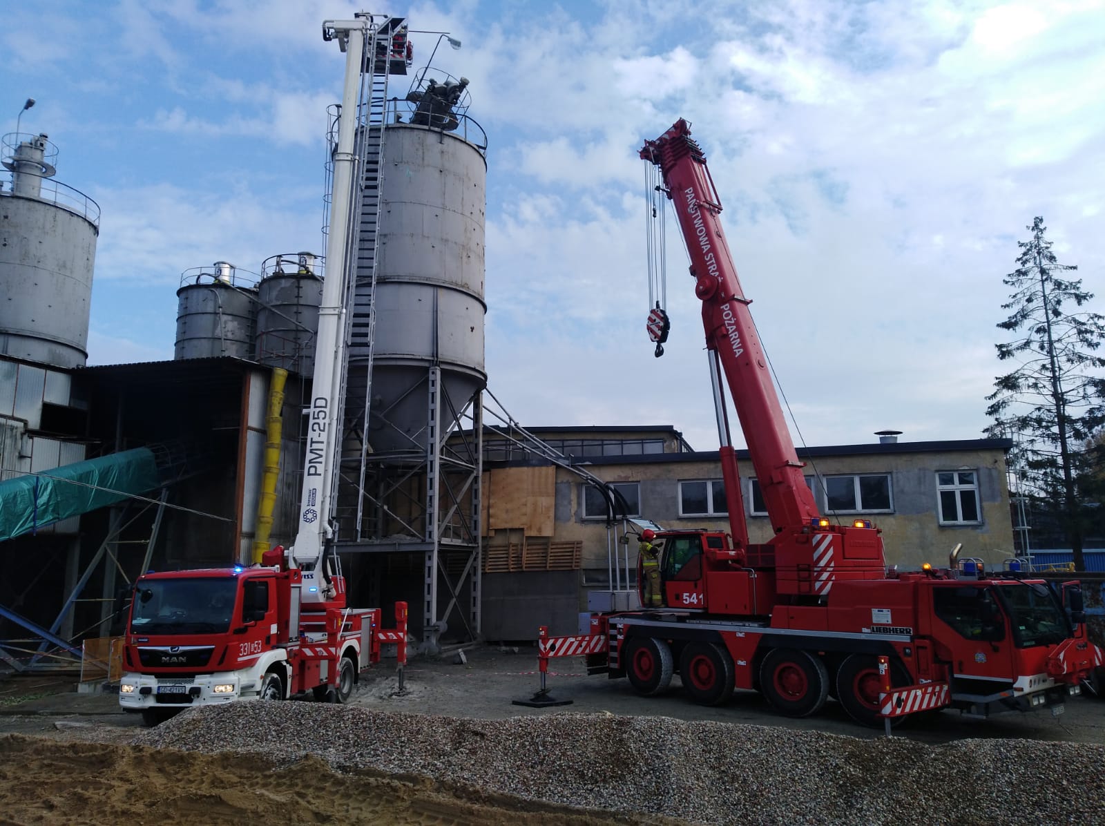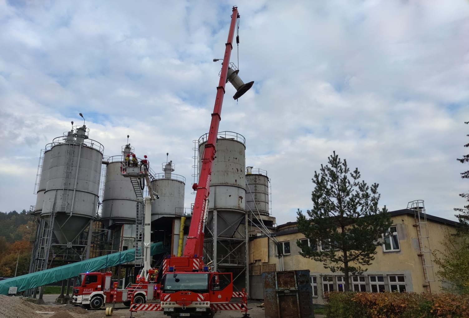 19 października 2021 r. o godzinie 12:10 do Stanowiska Kierowania Komendanta Powiatowego Państwowej Straży Pożarnej w Pruszczu Gdańskim wpłynęło zgłoszenie, z którego wynikało, że w miejscowości Kolbudy podczas rozbiórki silosu cementowego jeden z usuwanych elementów osunął się i przygniótł wykonującego prace rozbiórkowe mężczyznę. Działania strażaków polegały na zabezpieczeniu miejsca zdarzenia oraz dotarciu do osoby poszkodowanej. Niestety w wyniku odniesionych obrażeń mężczyzna poniósł śmierć na miejscu. Konieczne było użycie podnośnika hydraulicznego oraz dźwigu, z wykorzystaniem których strażacy zabezpieczyli i zdjęli z silosu sprzęt oraz elementy zagrażające pracownikom zakładu. W działaniach brało udział 8 zastępów straży pożarnej, w tym Komendant Powiatowy PSP, zastępy z JRG Pruszcz Gdański, OSP Kolbudy, Specjalistyczna Grupa Ratownictwa Technicznego Tczew, Specjalistyczna Grupa Ratownictwa Wysokościowego Słupsk, a ponadto Zespół Ratownictwa Medycznego, Lekarz Sądowy, Policja, Prokurator oraz Służba BHP.