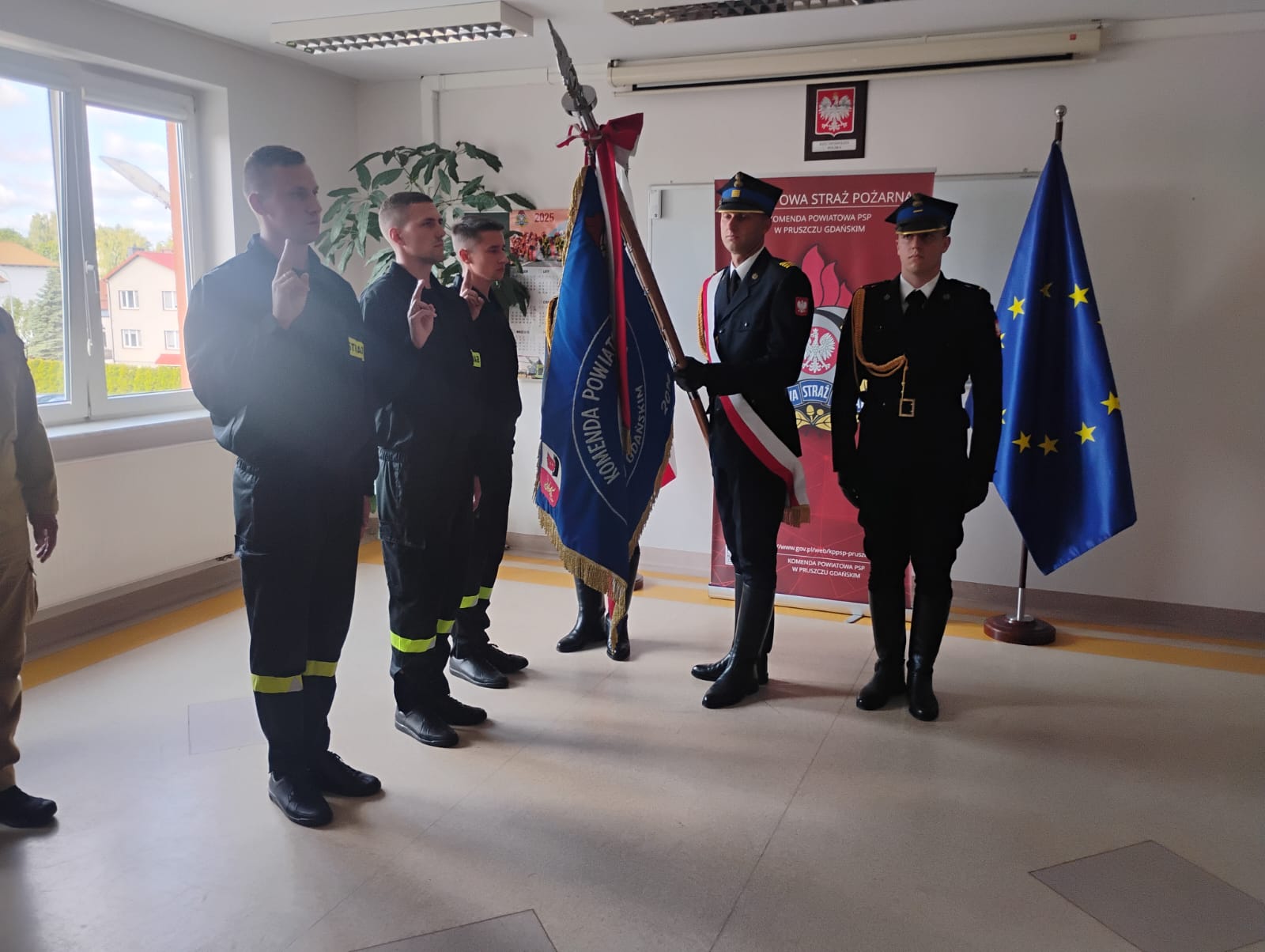 W siedzibie Komendy Powiatowej PSP w Pruszczu Gdańskim odbyła się uroczysta zbiórka związana ze złożeniem ślubowania przez trzech nowych funkcjonariuszy.