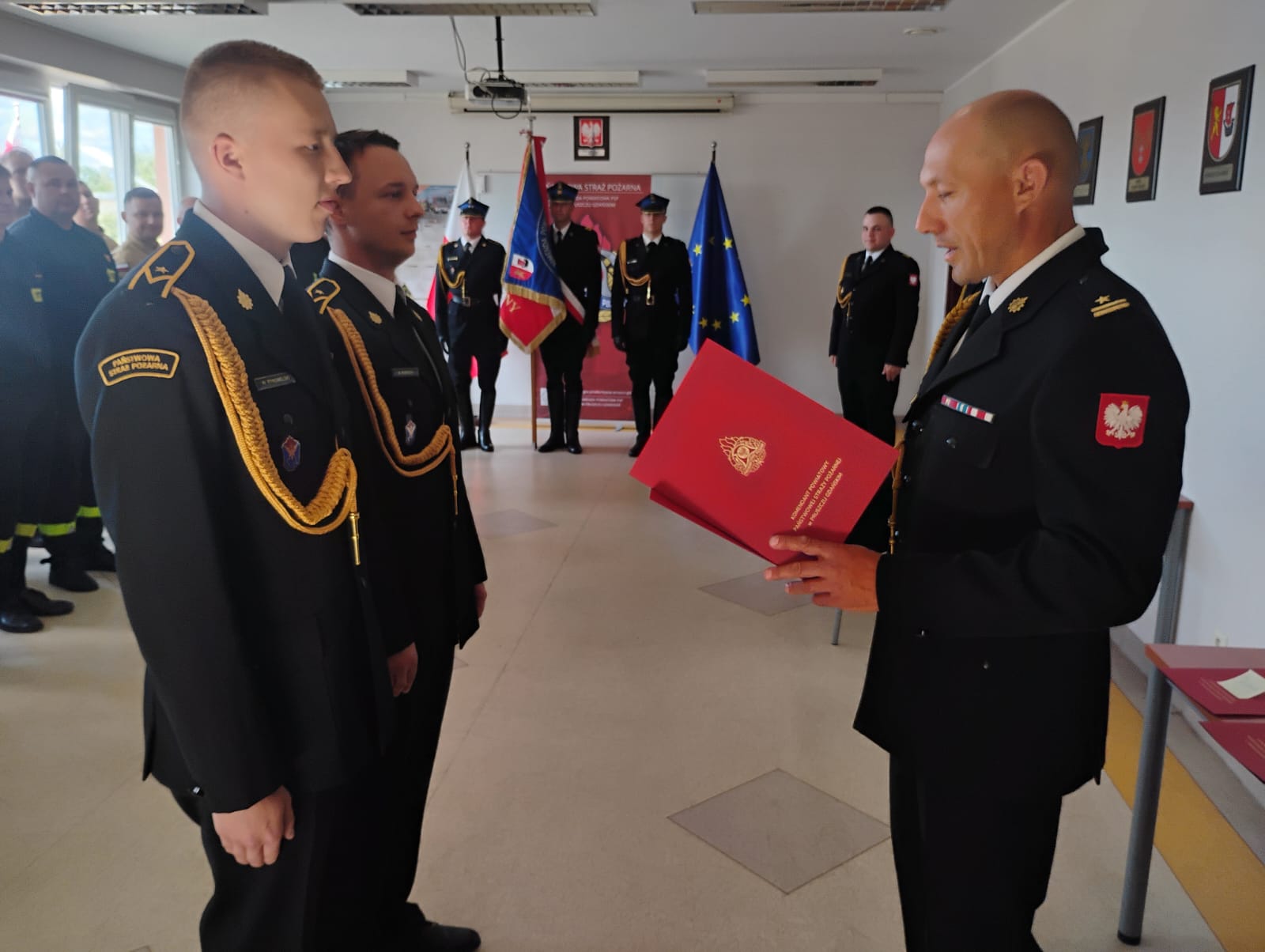 Kolejna część zbiórki poświęcona została na wręczenie aktów mianowania na pierwsze stanowiska w służbie stałej dwóm świeżo upieczonym absolwentom Szkoły Aspirantów w Poznaniu: