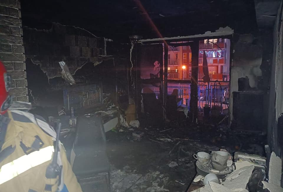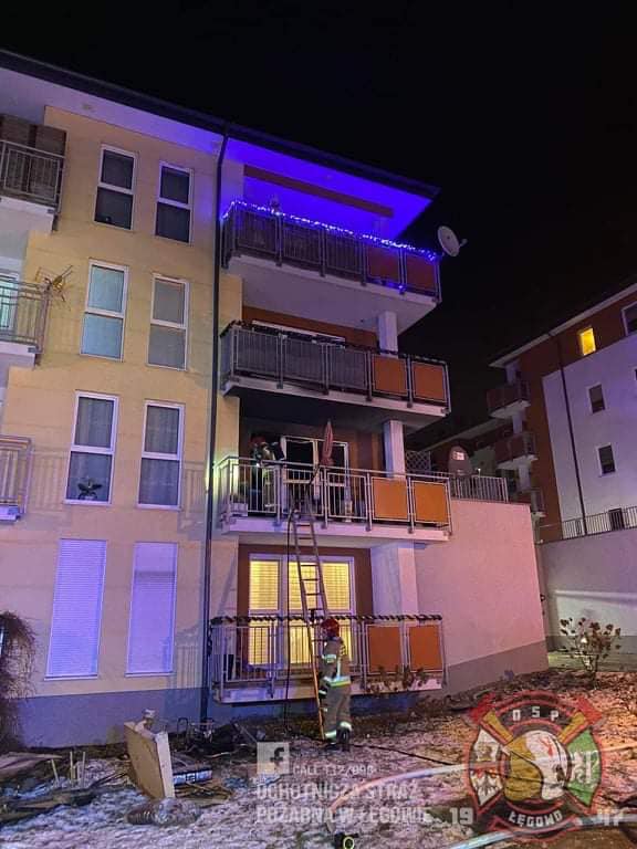 w murowanym 4-kondygnacyjnym budynku, widoczne były płomienie wydobywające się przez okna i drzwi balkonowe. Część mieszkańców bloku ewakuowała się przed naszym przybyciem, a część była ewakuowana przez strażaków, łącznie ewakuowano 42 osoby. Nasze działania polegały na zabezpieczeniu i oświetleniu miejsca zdarzenia, odłączeniu zasilania elektrycznego, wprowadzeniu prądu wody w natarciu do wnętrza budynku przez balkon z użyciem drabiny przystawnej oraz drugiego prądu wody w natarciu od strony klatki schodowej w celu lokalizacji i ugaszenia pożaru. Podczas rozpoznania ustalono, że w objętym pożarem mieszkaniu znajdowało się 2 osoby, 1 ewakuowana z objawami zatrucia gazami pożarowymi, 2 znajdowała się nadal w mieszkaniu, ratownicy po wstępnym przygaszeniu ognia i przeszukaniu mieszkania zlokalizowali osobę poszkodowaną i ewakuowali ją na zewnątrz w celu udzielenia kwalifikowanej pierwszej pomocy, w tym czasie na miejscu pojawił się Zespół Ratownictwa Medycznego, który przebadał poszkodowanego i stwierdził jego zgon. Równolegle prowadzona była ewakuacja mieszkańców bloku oraz oddymianie klatki schodowej. Po ugaszeniu pożaru pomieszczenia przewietrzono z użyciem wentylatorów, a następnie skontrolowano z użyciem kamery termowizyjnej i miernika wielogazowego – zagrożeń nie stwierdzono. W wyniku zdarzenia śmierć poniosła 1 osoba,
