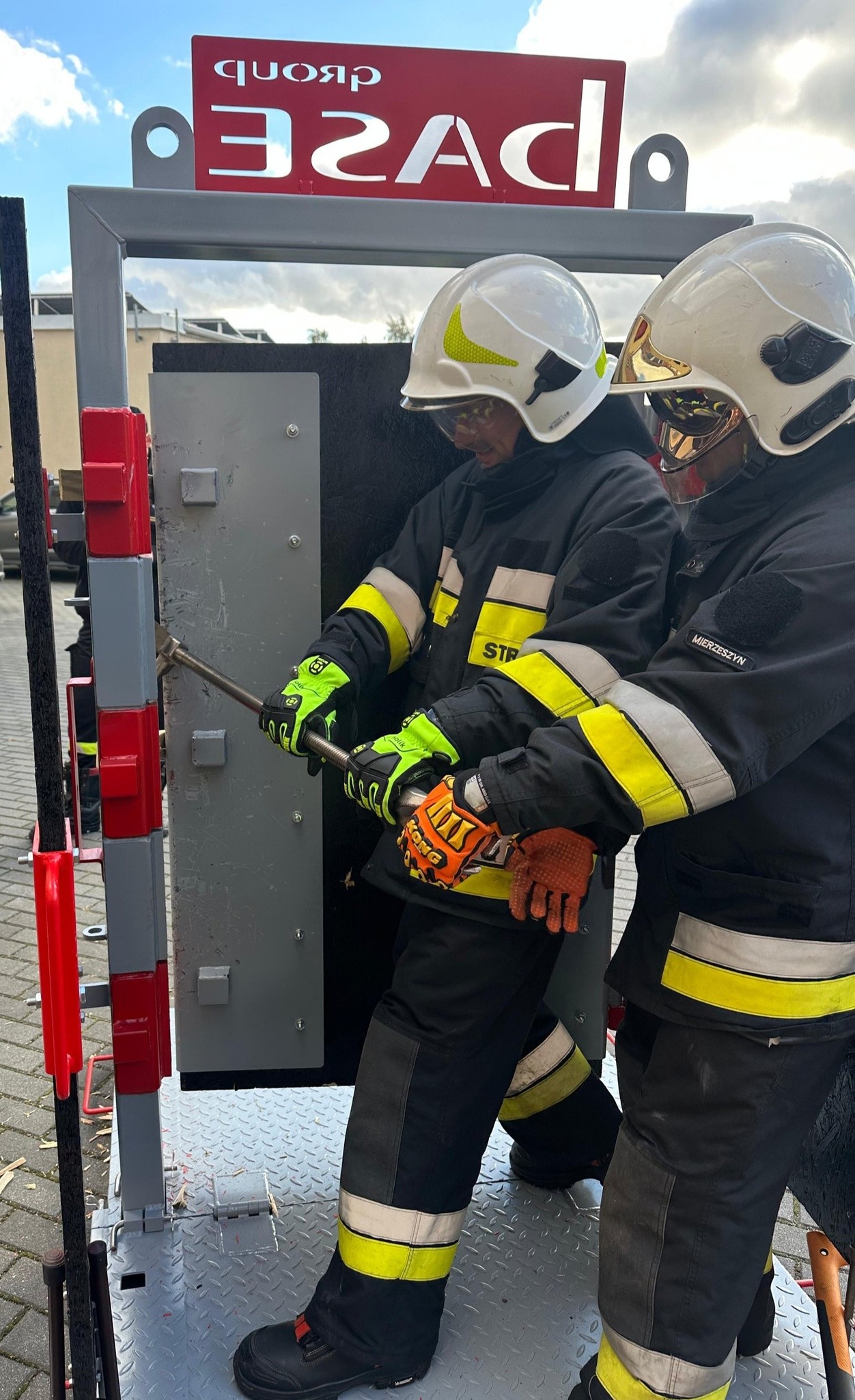 W sobotę doskonalili swoje umiejętności w naszej Komendzie, m. in. uczyli się otwierania drzwi by ratować! Dziękujemy Base Group - Urządzenia/Konstrukcje Przemysłowe - Metal Structures/Machines za trenażer!