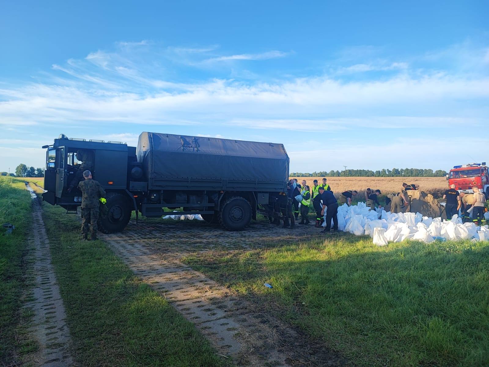 Kiedy we wtorkowy poranek opady deszczu ustały nie oznaczało to końca pracy dla naszych strażaków, nadal wypompowywaliśmy wodę z zalanych posesji i dróg, usuwaliśmy przewrócone drzewa, kiedy otrzymaliśmy informację o przerwanych wałach rzeki Kłodawy oraz ciężkiej sytuacji na Kanale Śledziowym w związku z podniesionym poziomem wody. Działania polegały na rozstawianiu rękawów przeciwpowodziowych, układaniu worków z piaskiem w celu uszczelnienia wałów, kontrolowaniu wałów i dalszym przepompowywania wody. Zostaliśmy wsparci m.in. przez strażaków z innych powiatów oraz Wojska Obrony Terytorialnej.