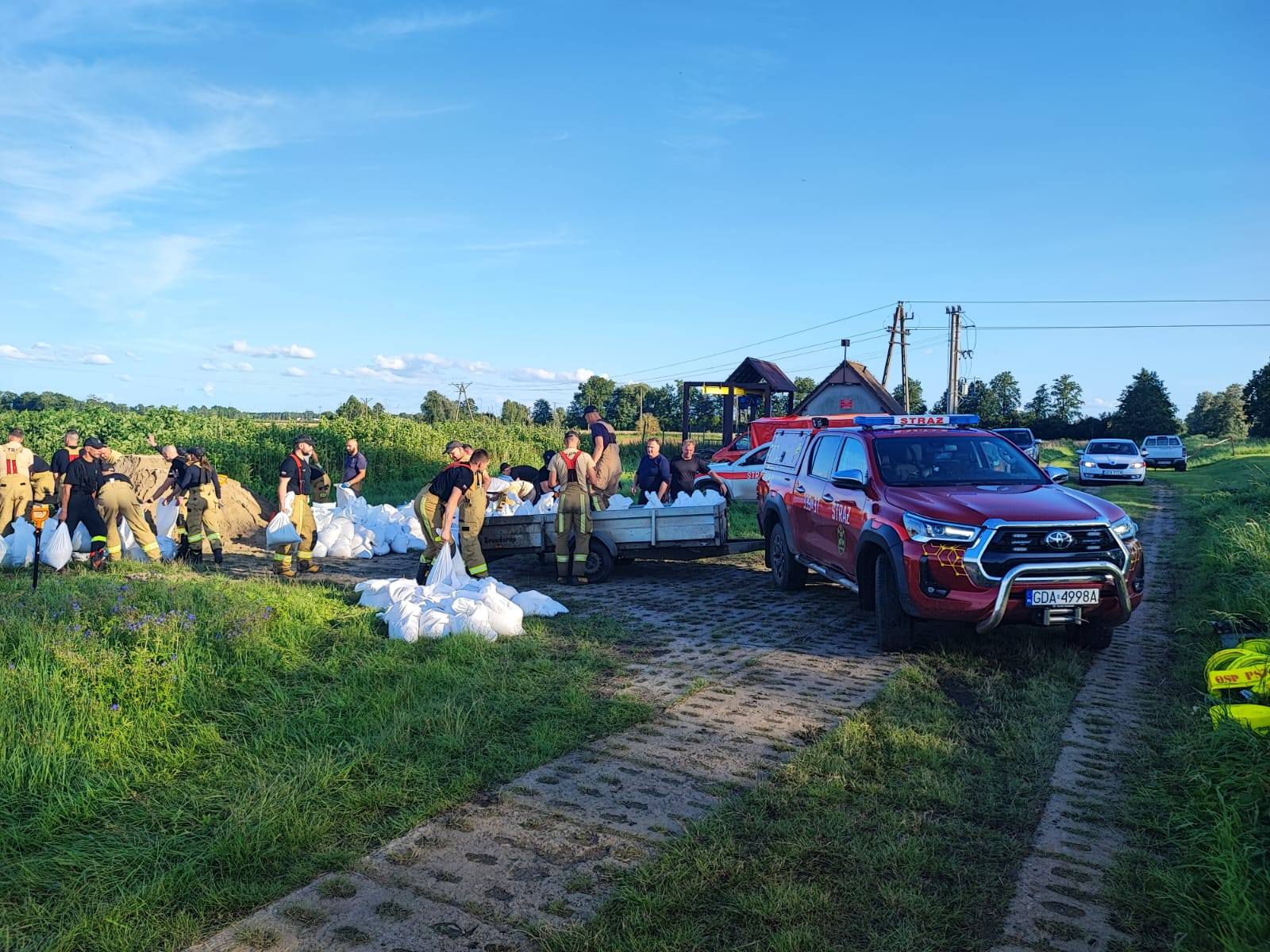 Najpierw wchodzący w skład Wojewódzkiego Odwodu Operacyjnego pluton ULEWA, którego trzon stanowią ratownicy i pojazdy oraz pompy wysokiej wydajności z jednostek OSP powiatu gdańskiego zadysponowany został do pomocy przy działaniach w sąsiednim powiecie nowodworskim. Następnie zgłoszenia o pierwszych podtopieniach na terenie naszego powiatu zaczęły spływać do Stanowiska Kierowania Komendanta Powiatowego PSP w Pruszczu Gdańskim. Sukcesywnie do działań dysponowane były kolejne jednostki z naszego terenu, a ciągle padający deszcz nie ułatwiał prowadzenia działań.