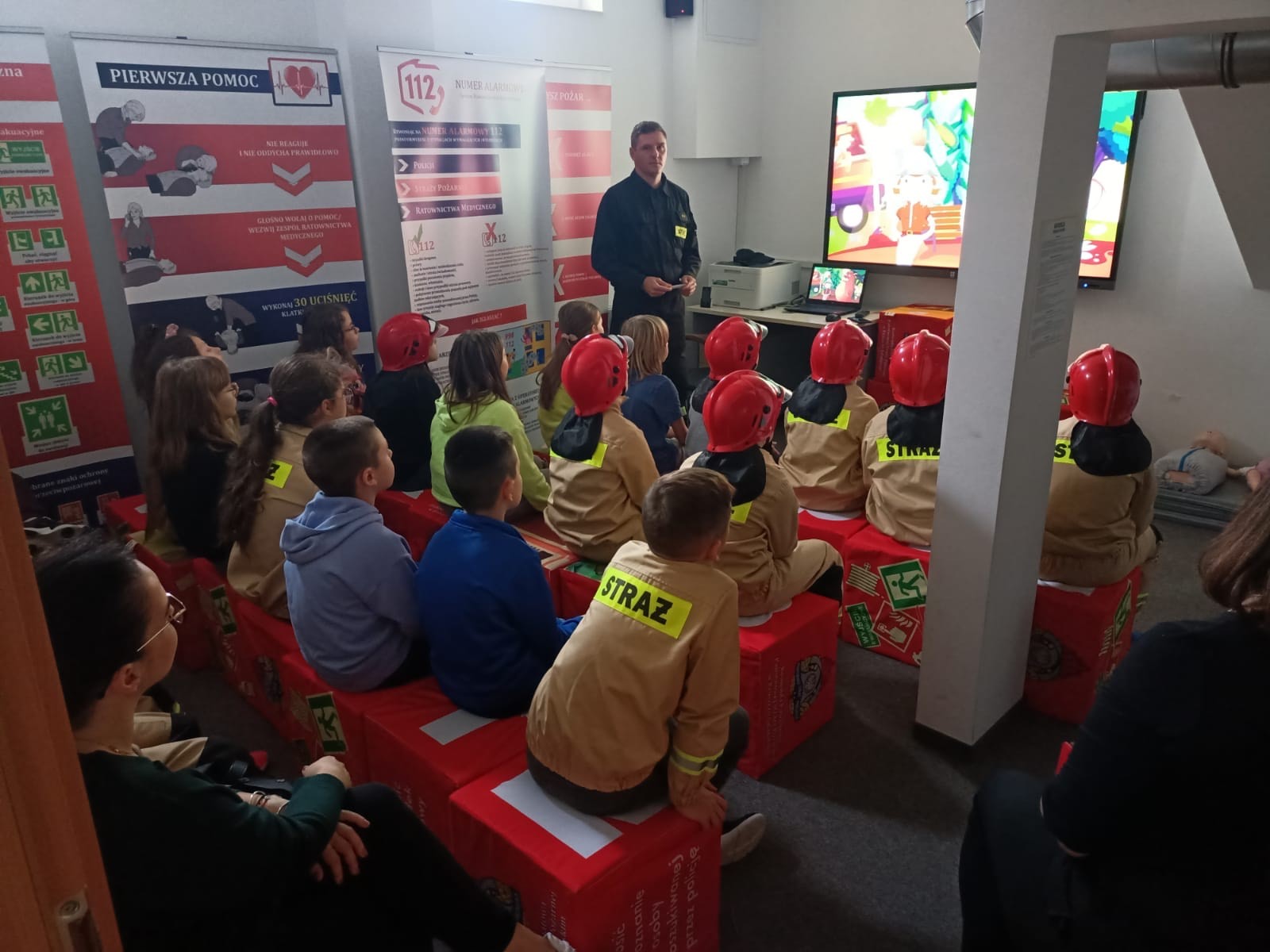 Nasi goście dowiadują się jak uniknąć zagrożeń w swoim otoczeniu, co można w nim poprawić, aby podnieść poziom bezpieczeństwa swojego i swoich bliskich. Strażacy mogą wyjaśnić dzieciom w jaki sposób ustrzec się przed zatruciem czadem, do czego może doprowadzić niewłaściwe użytkowanie sprzętów domowych oraz jak powinna przebiegać ewakuacja z miejsca objętego pożarem. Ponadto dzieci mogą nauczyć się powiadamiania służby ratowniczej, udzielić pierwszej pomocy, a także obsługi gaśnic i zapoznać się z charakterystyką pracy strażaka i sprzętem wykorzystywanym podczas działań.