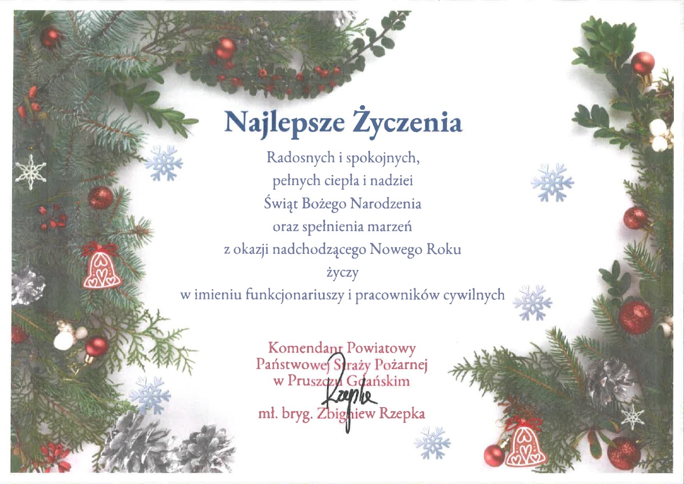 ŻYCZENIA ŚWIĄTECZNO-NOWOROCZNE KOMENDANTA POWIATOWEGO PSP W PRUSZCZU GDAŃSKIM 23.12.2024 Zdjęcia (1) Pokaż zdjęcie 1 z galerii.