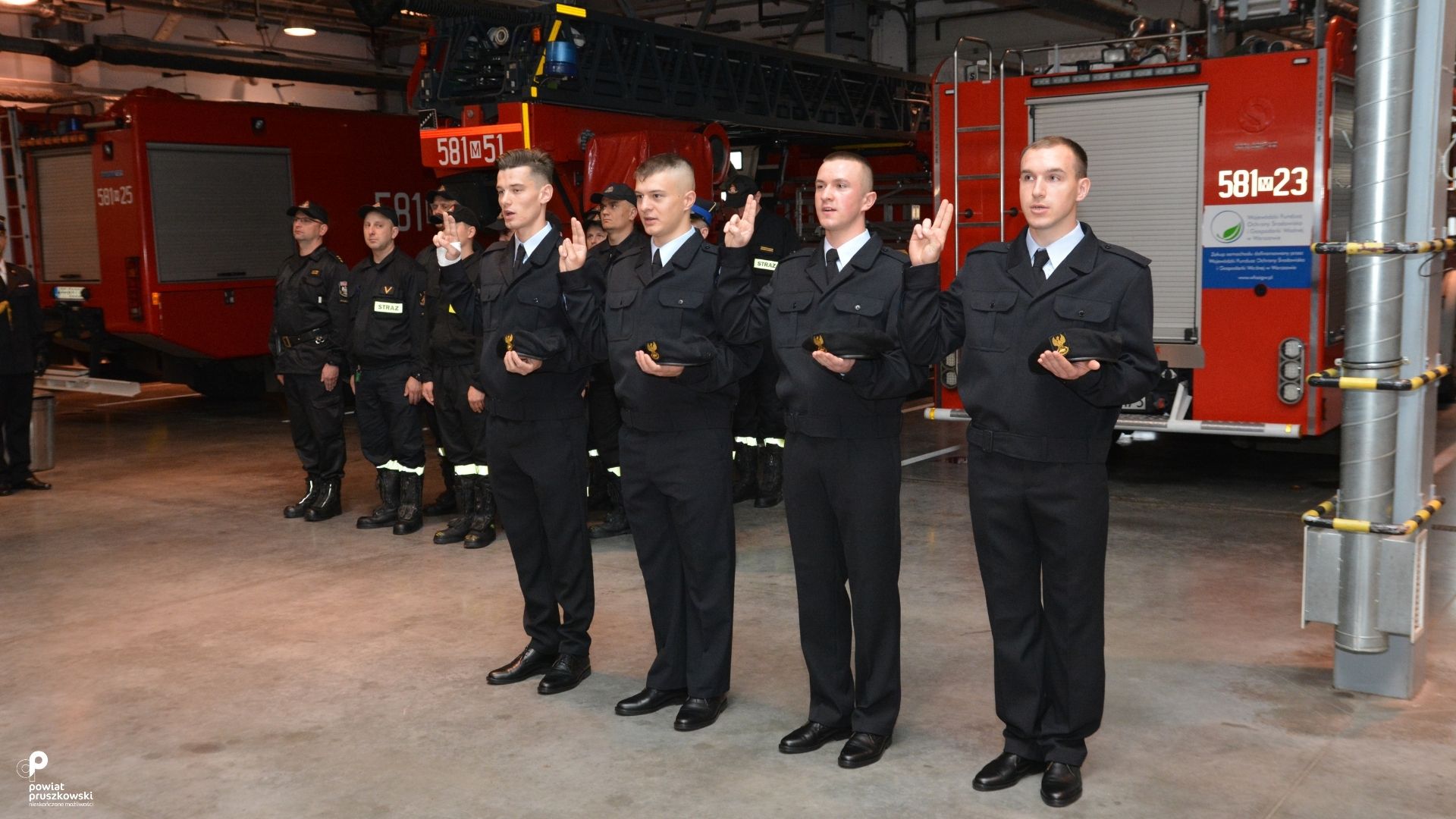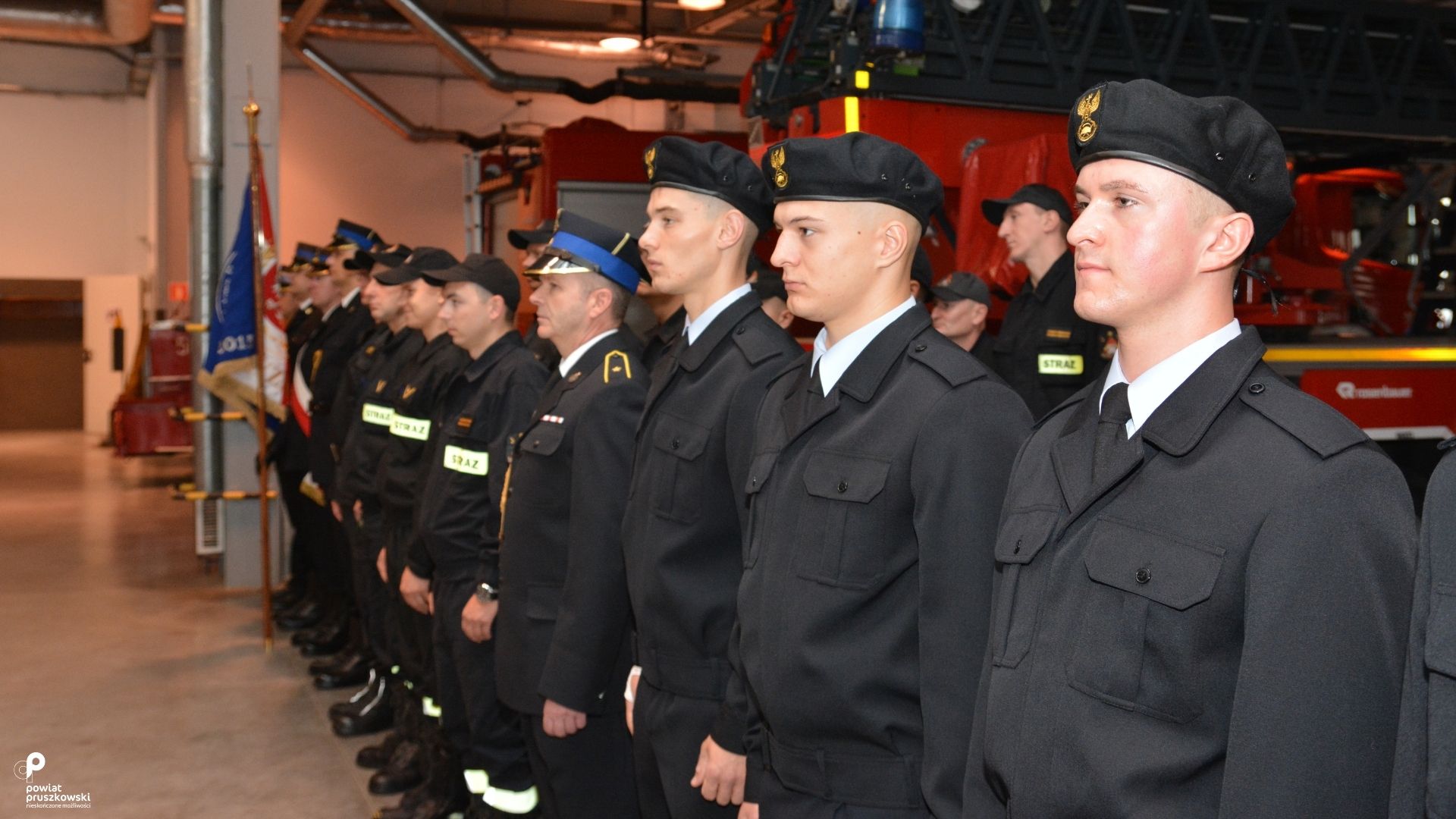 Uroczyste ślubowanie przed Komendantem Powiatowym PSP w Pruszkowie st. bryg. Lesławem Pawul złożyli: