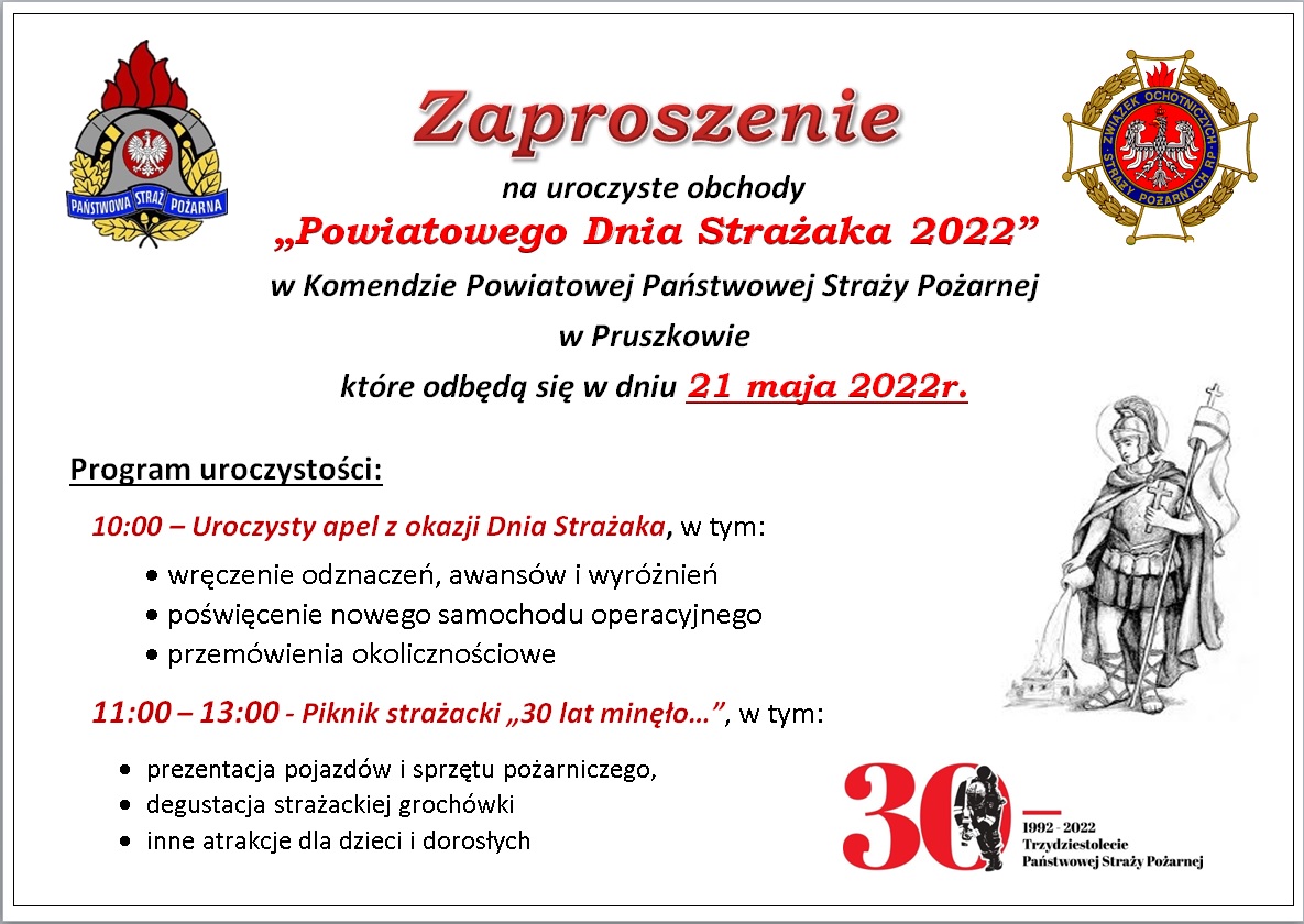 Zaproszenie na uroczyste obchody "Powiatowego Dnia Strażaka 2022" 15.05.2022 Zdjęcia (1) Pokaż zdjęcie 1 z galerii.