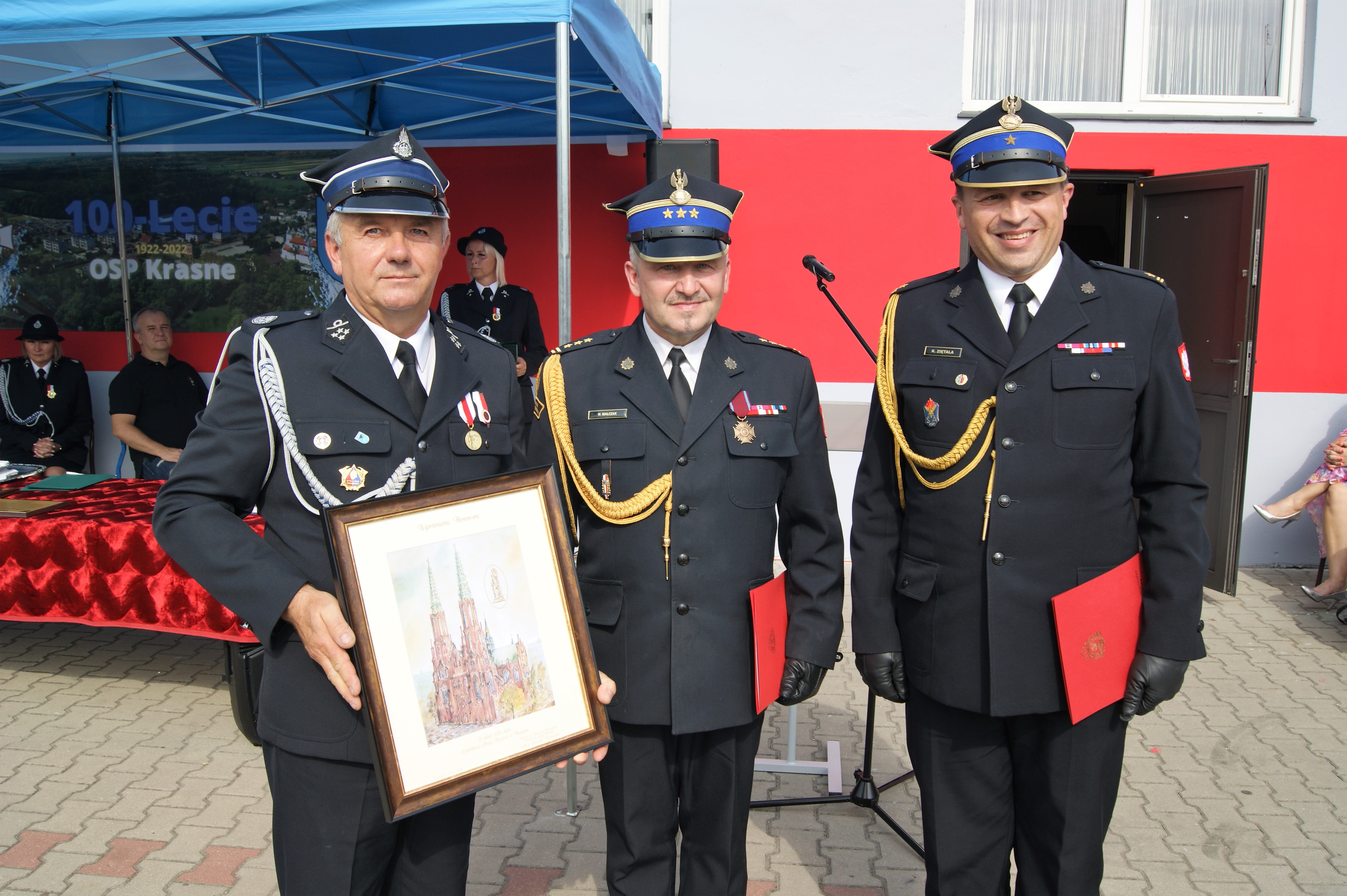 Ponadto przedstawiciel Mazowieckiego Komendanta Wojewódzkiego mł.bryg. Karol Ziętala z okazji 100-lecia OSP w Krasnem na ręce Prezesa dh. Marka Balcerzaka wręczył pamiątkowy obraz przedstawiający Katedrę św. Michała Archanioła i św. Floriana w Warszawie