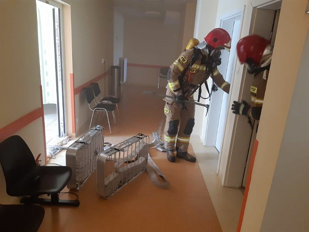Po przybyciu na miejsce okazało się, że ewakuacja z zagrożonego oddziału rehabilitacji już trwa. Kierujący Działaniami Ratowniczymi otrzymał informację od siostry oddziałowej o miejscu wystąpienia pożaru i liczbie ewakuowanych osób.
