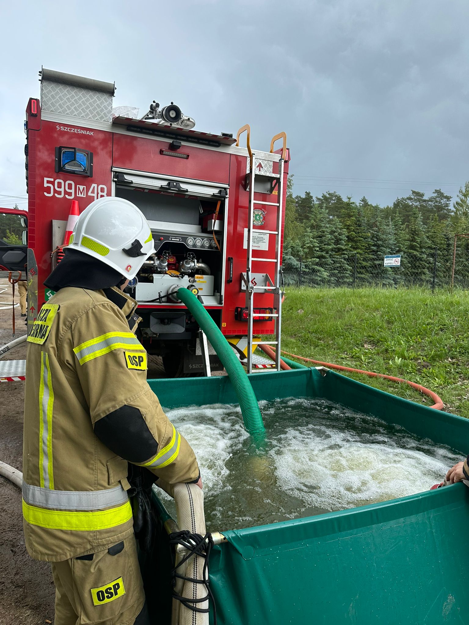 Zadaniem było zapewnienie wystarczającej wydajności środka gaśniczego w celu lokalizacji i likwidacji zagrożenia w postaci pożaru lasu. W tym celu zbudowano stanowisko czerpania wody na zbiorniku przeciwpożarowym przy Nadleśnictwie Parciaki oraz sprawdzenie możliwości dostarczenia wody z Rzeki Orzyc.