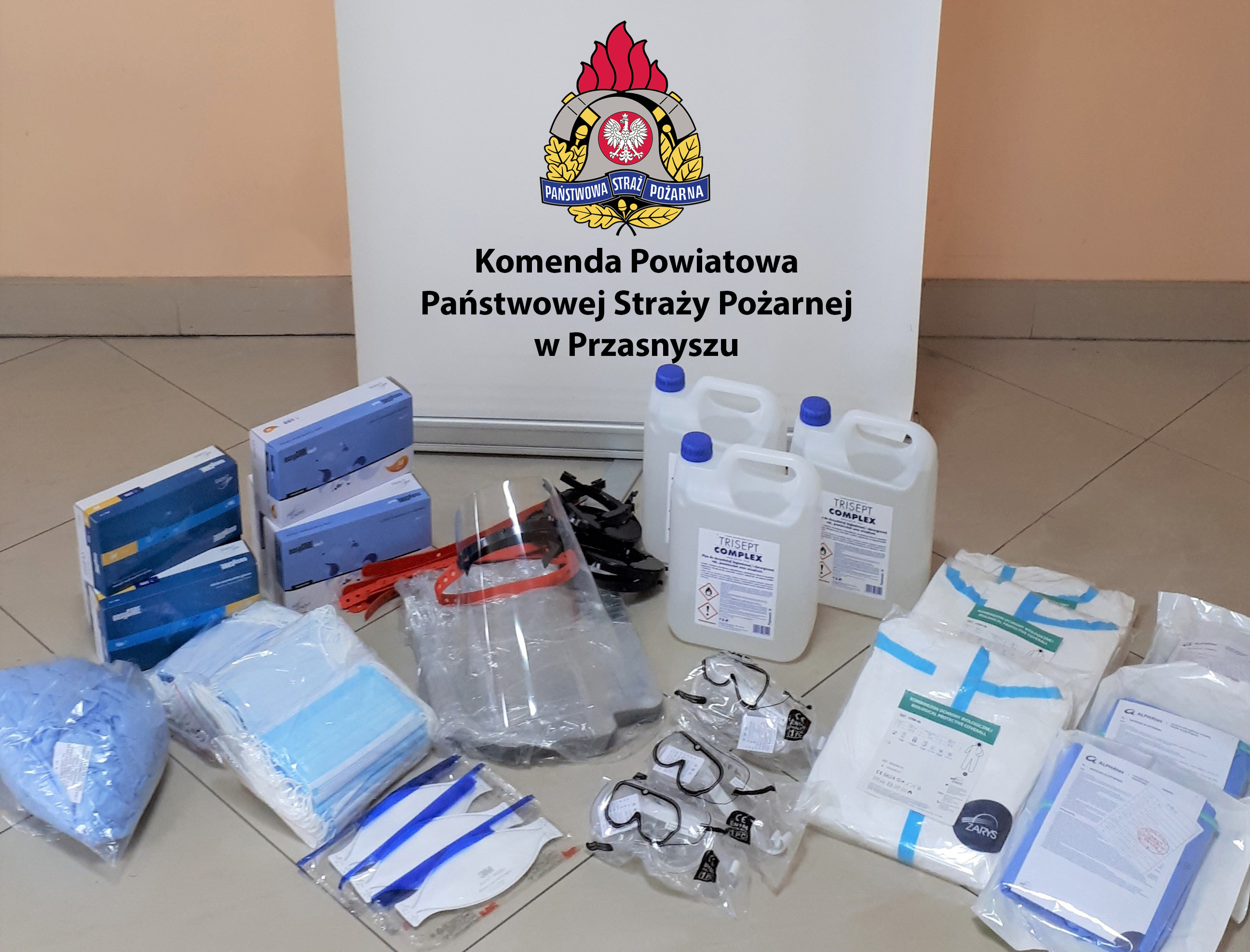 Komenda Powiatowa Państwowej Straży Pożarnej w Przasnyszu otrzymała asortyment przekazany przez Mazowiecki Urząd Wojewódzki w Warszawie z zasobów Agencji Rezerw Materiałowych na potrzeby jednostek organizacyjnych Państwowej Straży Pożarnej oraz Ochotniczych Straży Pożarnych z terenu województwa mazowieckiego zaangażowanych do działań z pandemią.