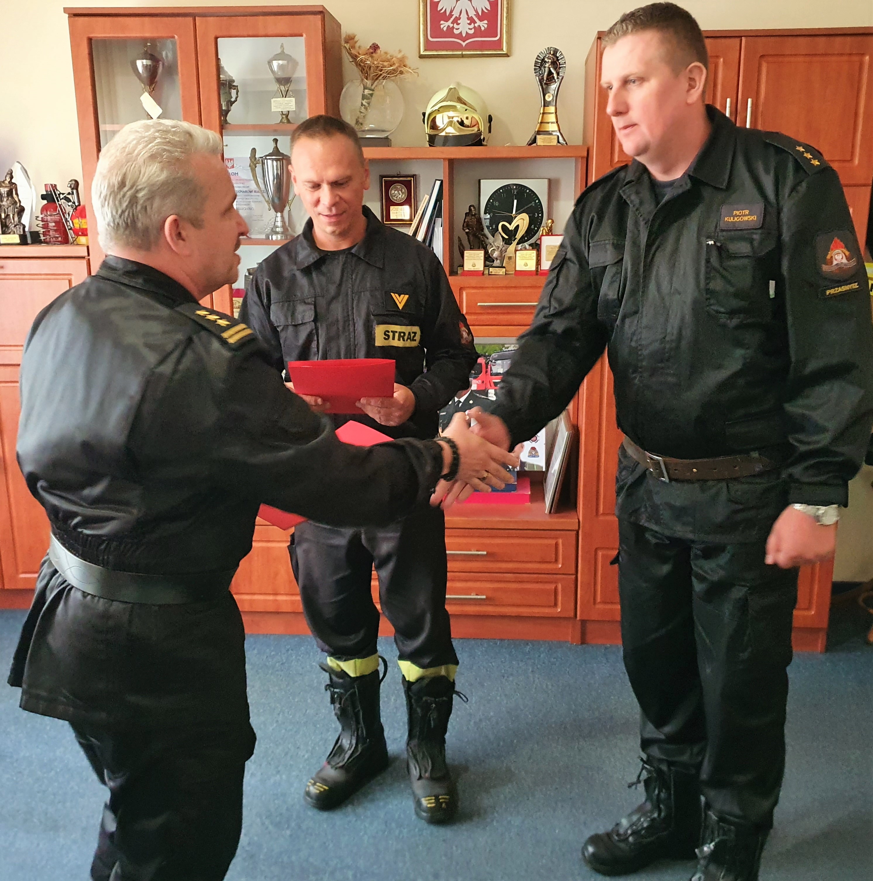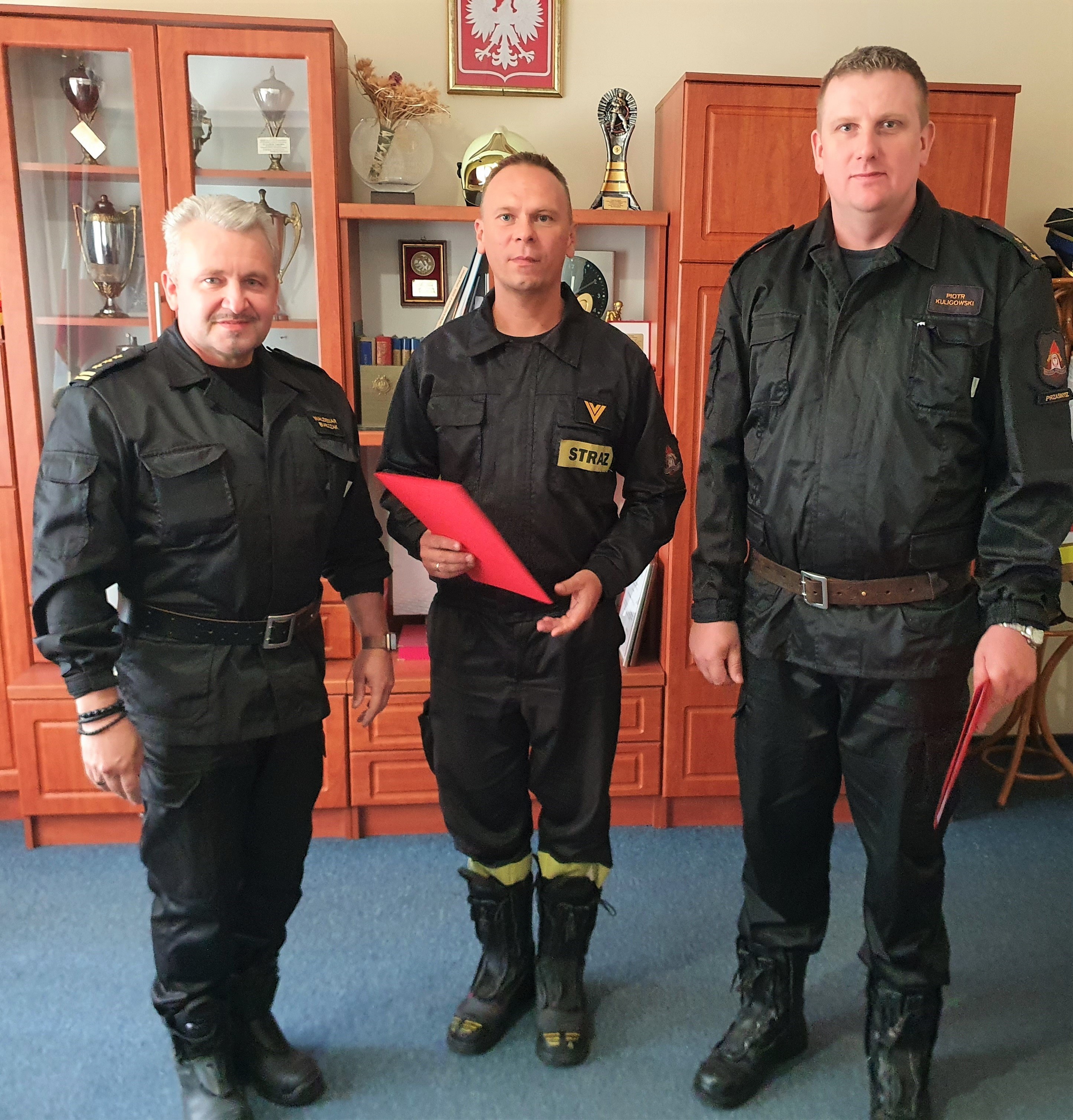 Za wzorowe wykonywanie zadań służbowych wyróżniające się efektami dla działania, promocji i rozwoju PSP na szczeblu ponad powiatowym, w tym związanych z realizacją warsztatów z zakresu ratownictwa wodnego organizowanych przez Ośrodek Szkolenia PSP w Warszawie z Komendy Powiatowej PSP w Przasnyszu nagrody MKW otrzymało dwóch strażaków: