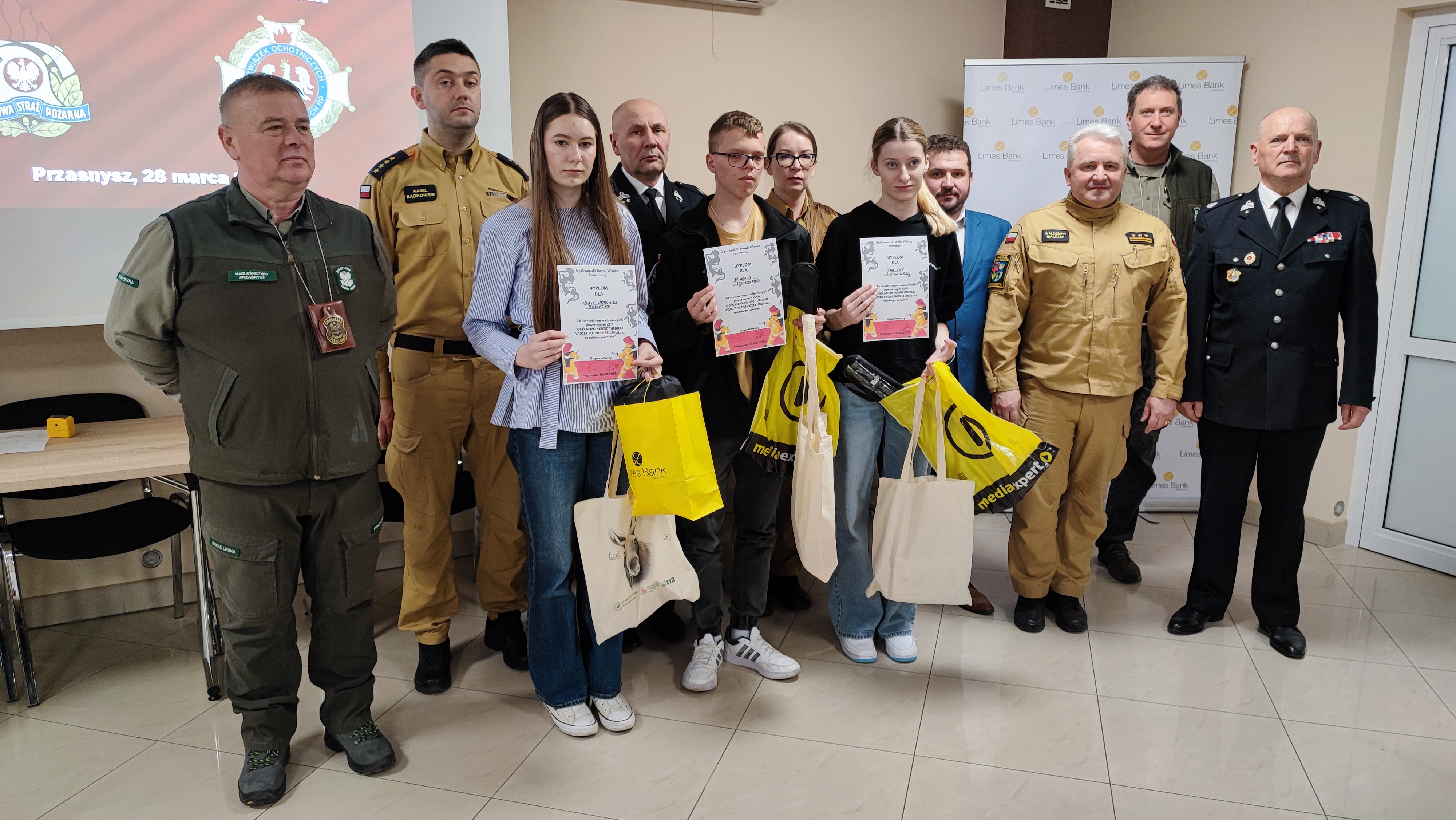 Dzięki pomocy i wsparciu sponsorów: LIMES Bank Spółdzielczy w Chorzelach, Starostwa Powiatowego oraz Nadleśnictwa Przasnysz konkurs był obfity w nagrody. Nagrody, dyplomy oraz upominki odebrali wszyscy uczestnicy z rąk Starosty Przasnyskiego Pana Pawła Mostowego, Prezesa Zarządu Oddziału Powiatowego ZOSP RP w Przasnyszu dh. Bogdana Rzepczyńskiego, Komendanta Powiatowego PSP w Przasnyszu st. bryg. Waldemara Białczaka, oraz Dariusza Sobotki i Pawła Reszko z Nadleśnictwa Przasnysz.