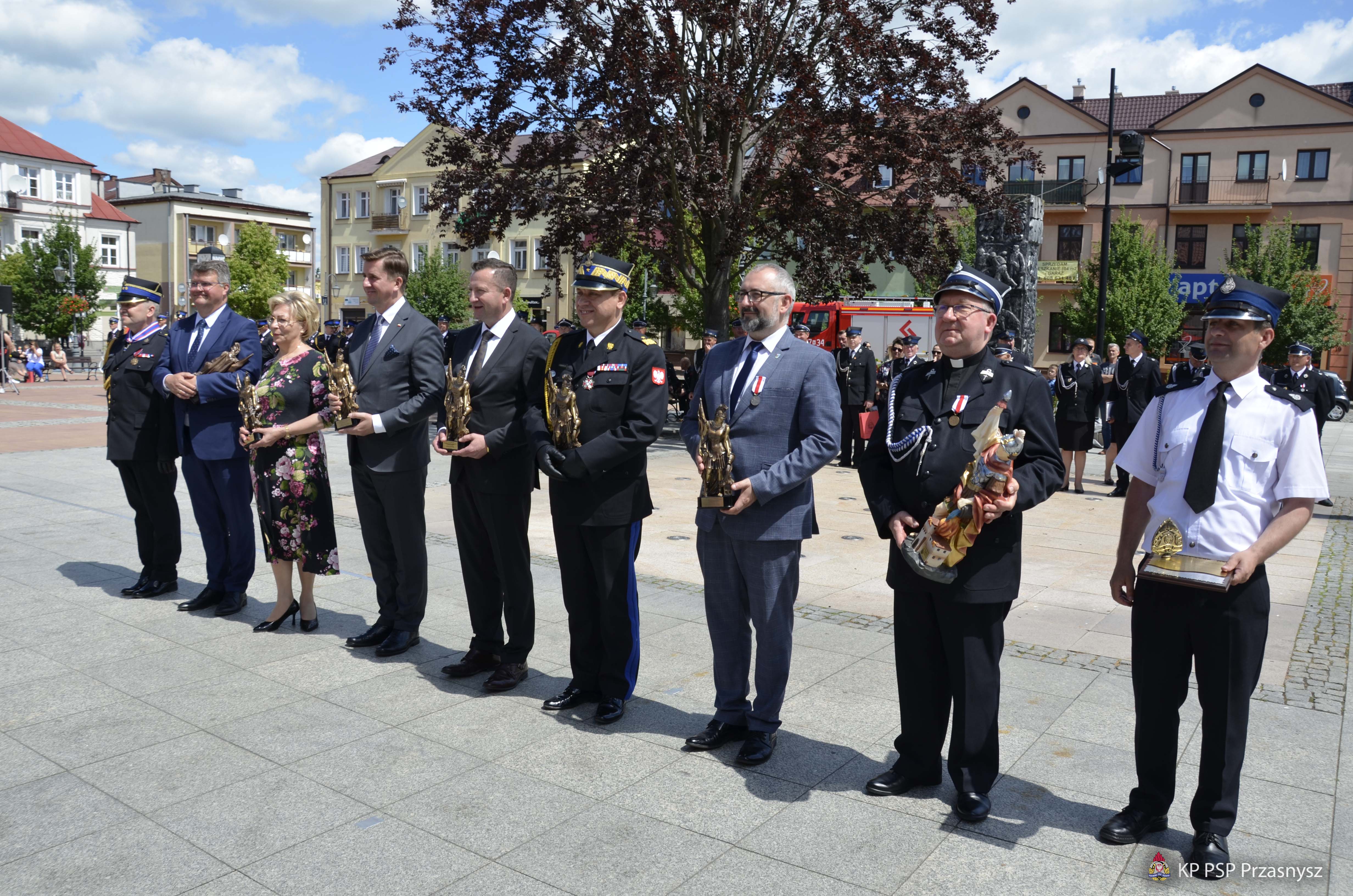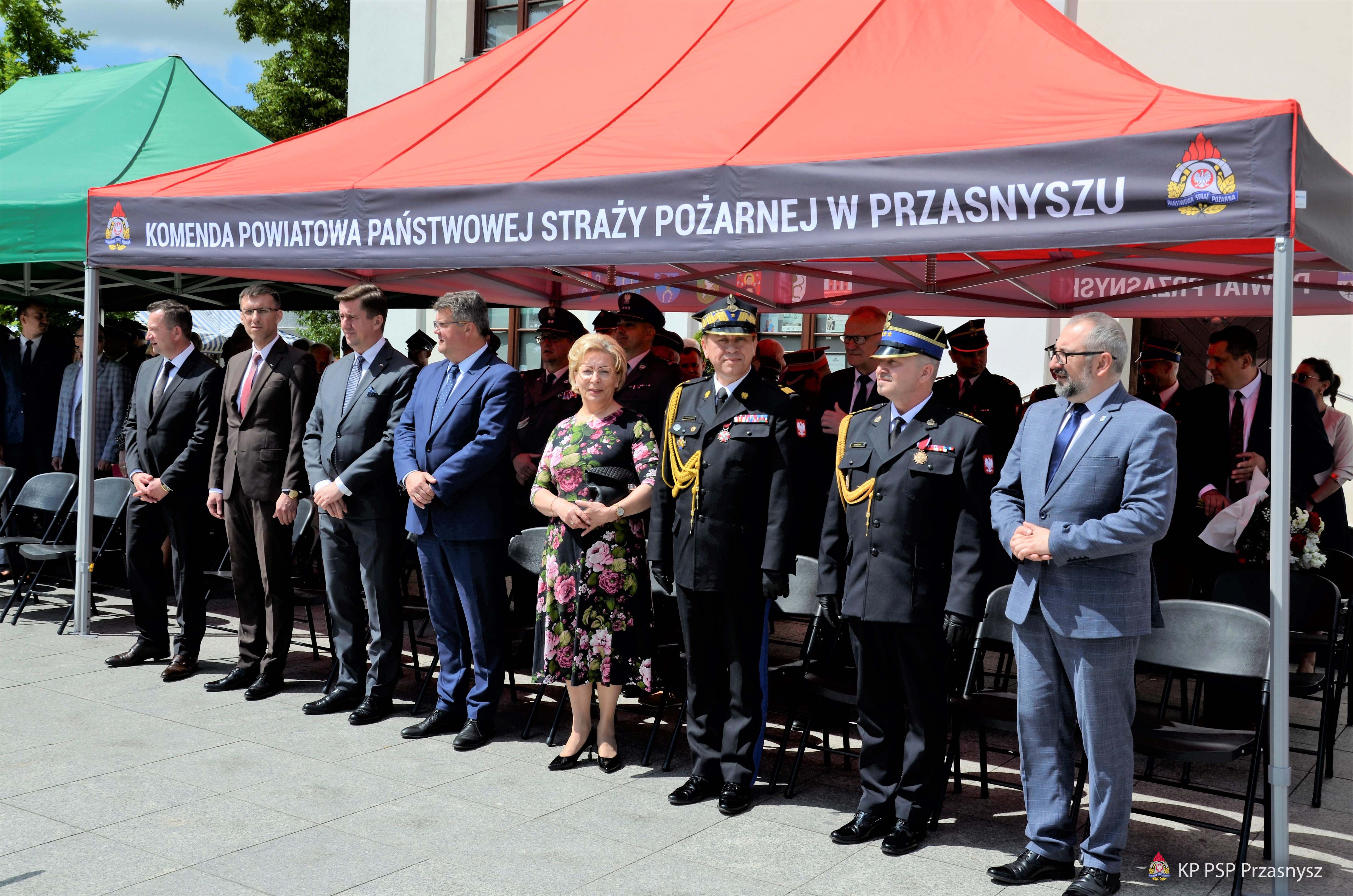 Obchody Powiatowego Dnia Strażaka w Przasnyszu swoją obecnością zaszczycili m.in.: Pan Maciej Wąsik Sekretarz Stanu w Ministerstwie Spraw Wewnętrznych i Administracji, Pan Rafał Romanowski Sekretarz Stanu w Ministerstwie Rolnictwa, Pani Anna Ewa Cicholska Poseł na Sejm, nadbryg. Jarosław Nowosielski Mazowiecki Komendant Wojewódzki Państwowej Straży Pożarnej, parlamentarzyści, przedstawiciele władz wojewódzkich, przedstawiciele władz samorządowych, przedstawiciele służb mundurowych, przedstawiciele jednostek Ochotniczych Straży Pożarnych, lokalna społeczność.