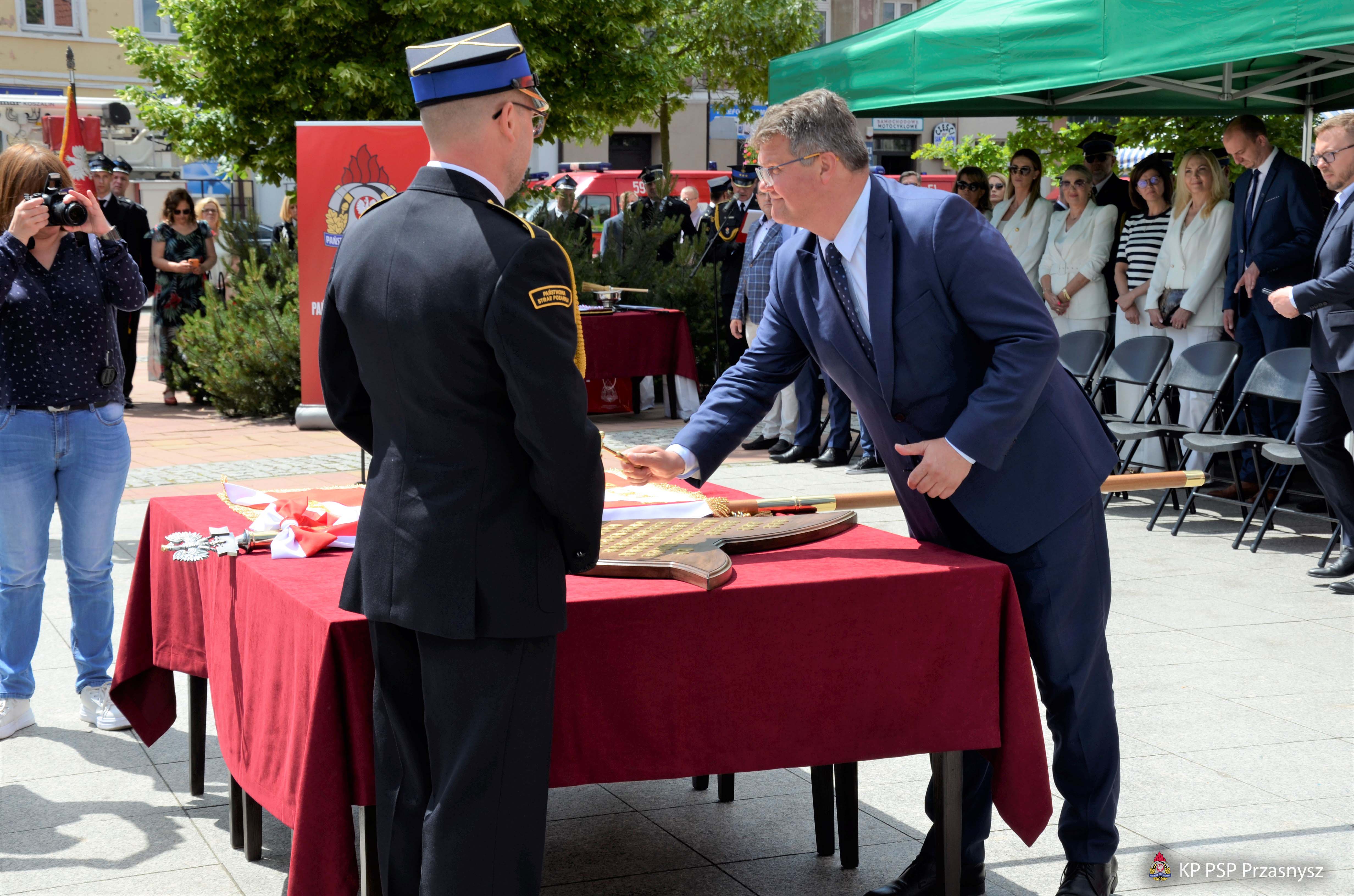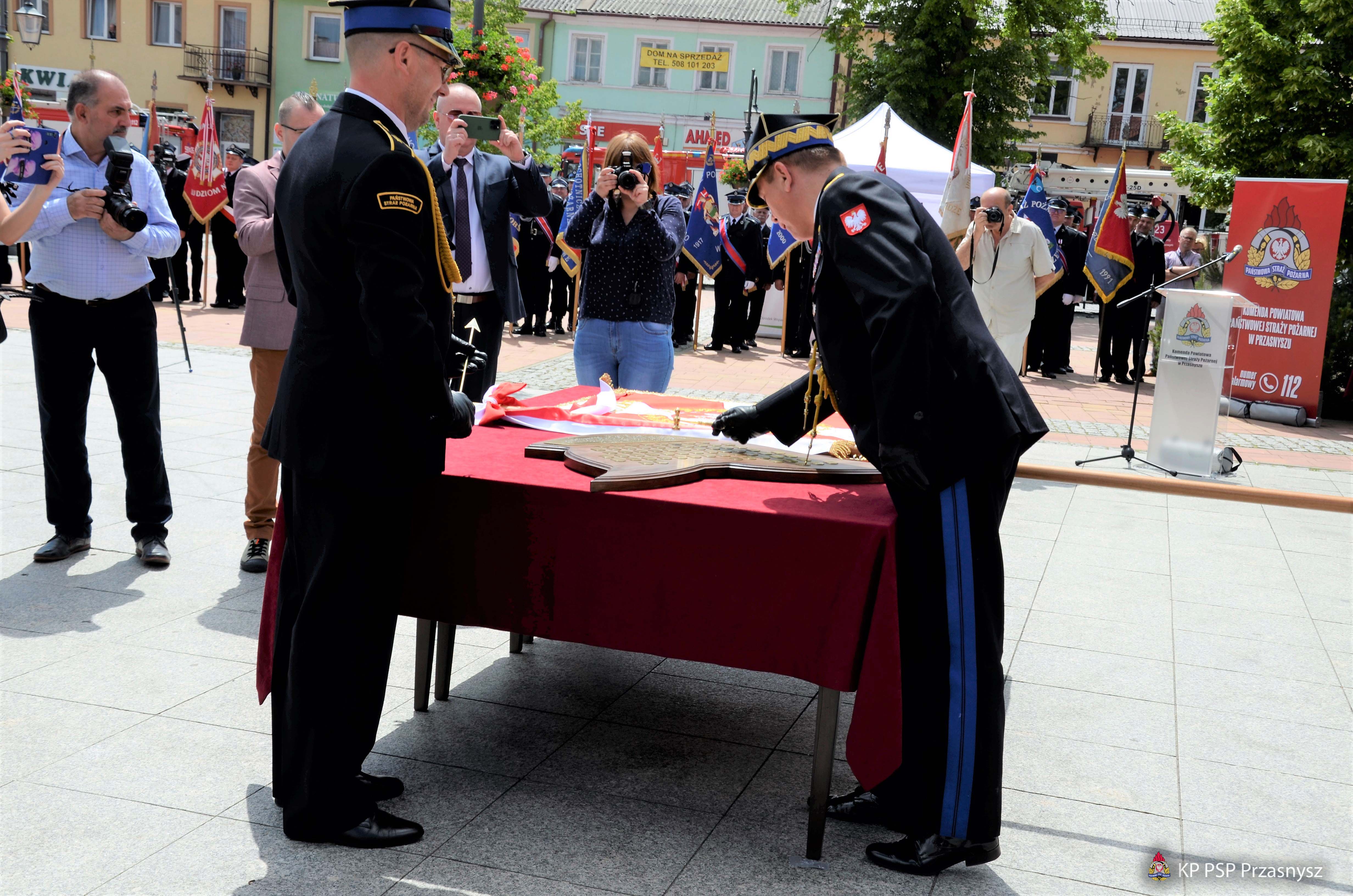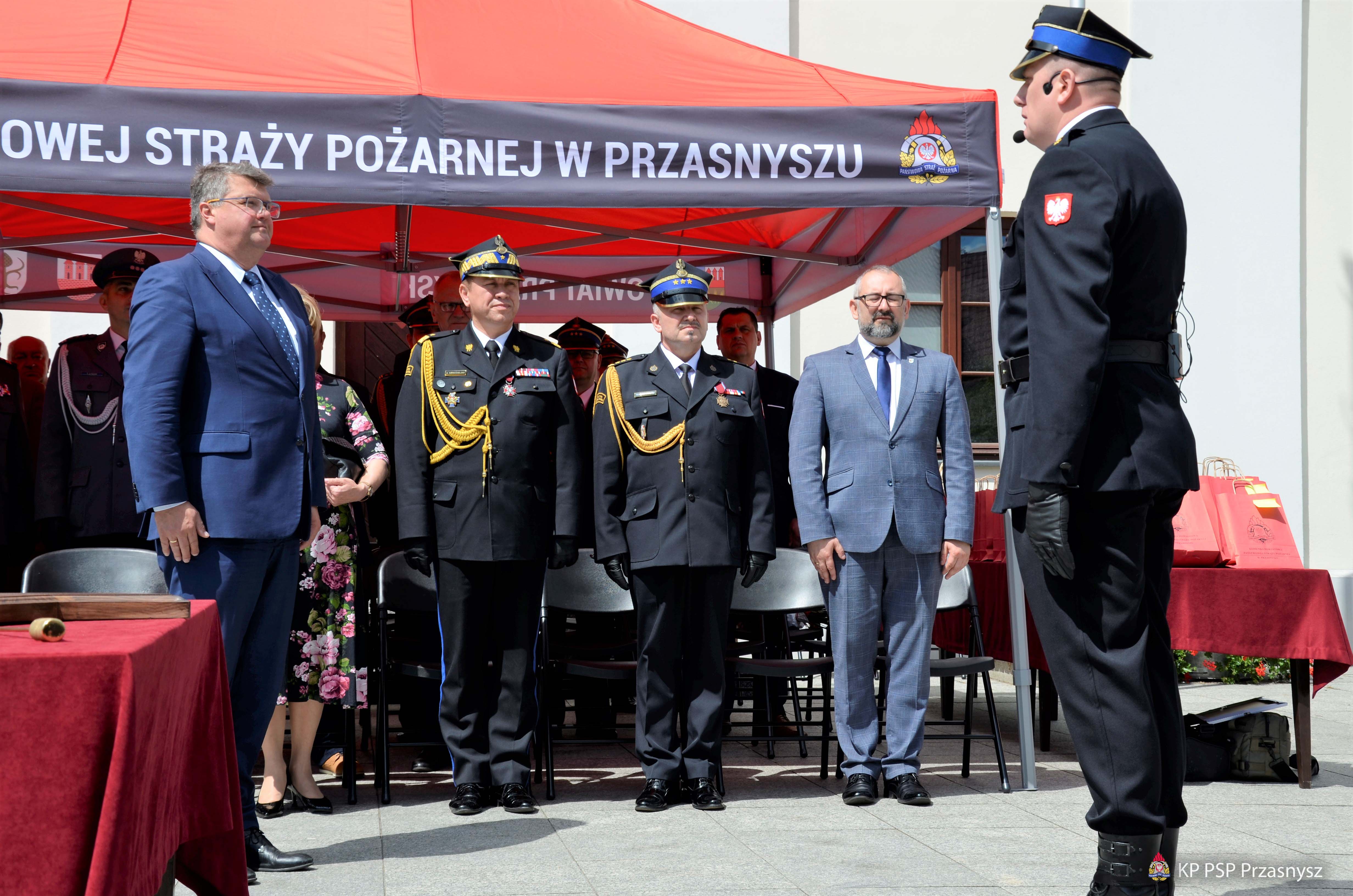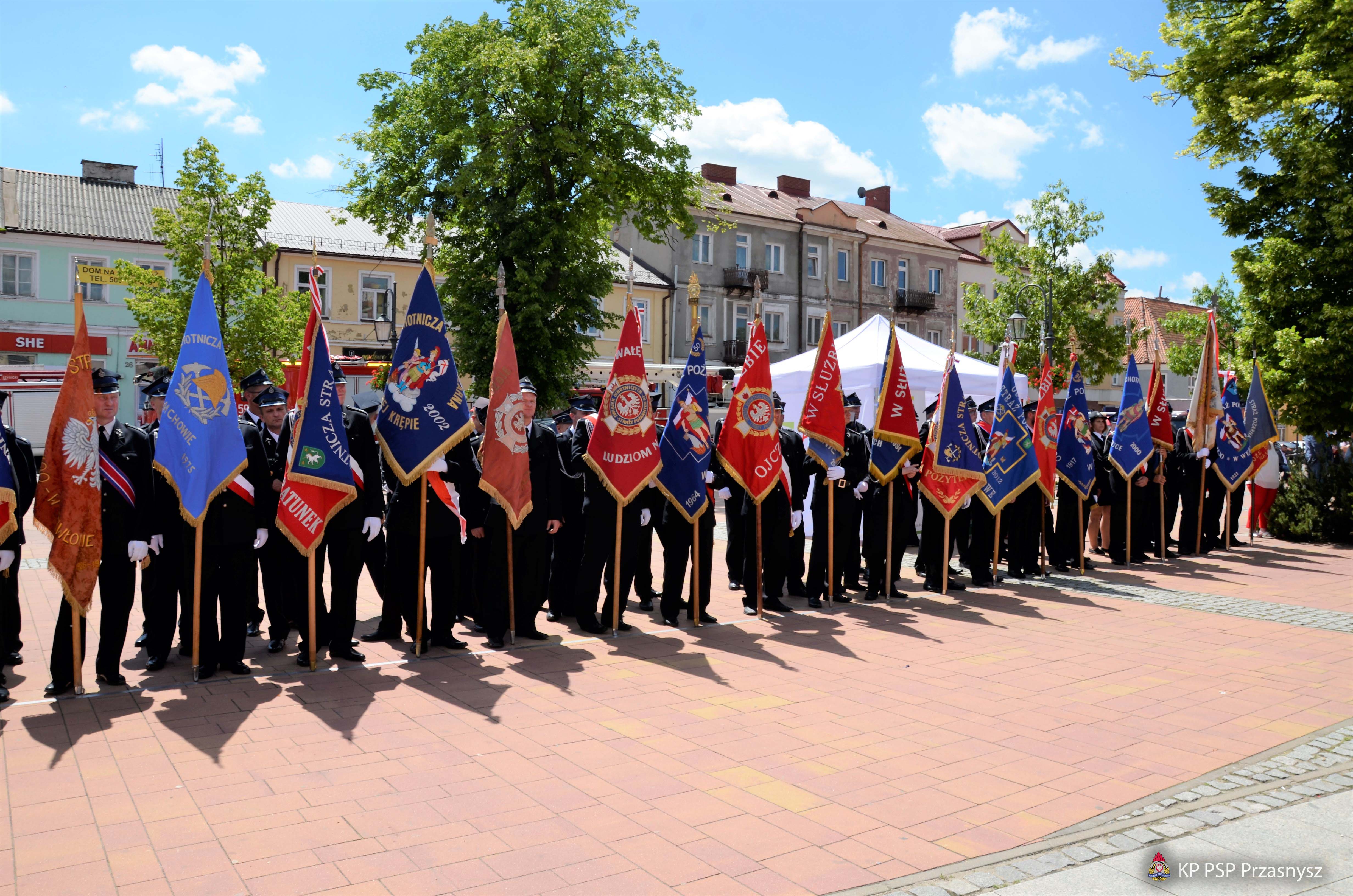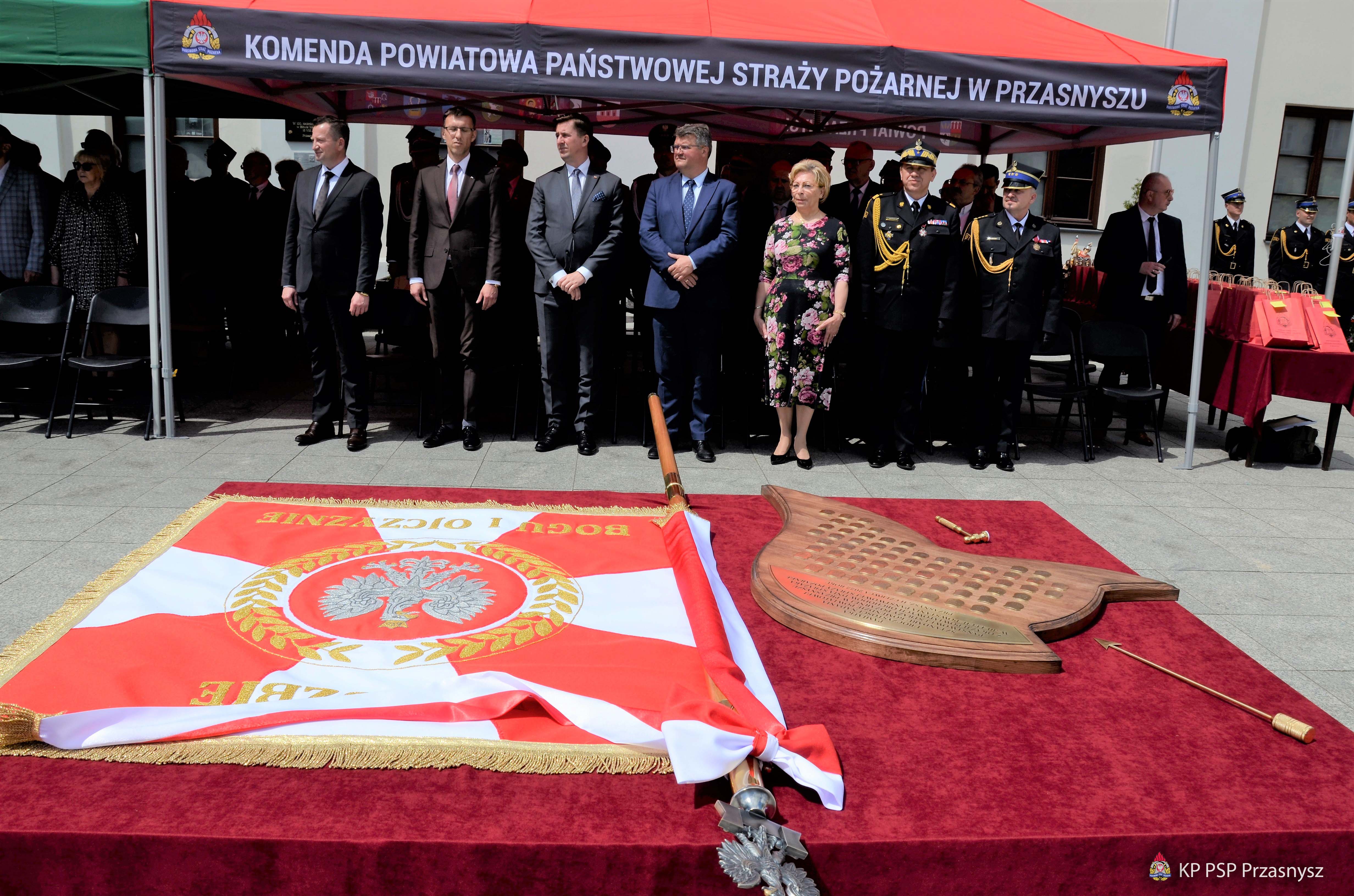 Dla strażaków z Przasnysza było to wyjątkowe święto ponieważ dla Komendy Powiatowej Państwowej Straży Pożarnej w Przasnyszu został nadany i wręczony Sztandar ufundowany przez społeczność lokalną, który jest wyrazem podziękowania strażakom i pracownikom cywilnym za ich służbę oraz pracę na rzecz poprawy bezpieczeństwa na terenie powiatu przasnyskiego. Uroczystego przekazania sztandaru dokonał Przewodniczący Społecznego Komitetu Fundatorów Sztandaru - Starosta Przasnyski Krzysztof Bieńkowski, Sekretarz Stanu w Ministerstwie Spraw Wewnętrznych i Administracji Pan Maciej Wąsik oraz Komendant Powiatowy Państwowej Straży Pożarnej w Przasnyszu st. bryg. Waldemar Białczak. Poświęcenia sztandaru dokonał kapelan strażaków powiatu przasnyskiego Ojciec dh Wiesław Wiśniewski CP i kapelan mazowieckich strażaków ks. mł. bryg. Jerzy Sieńkowski.