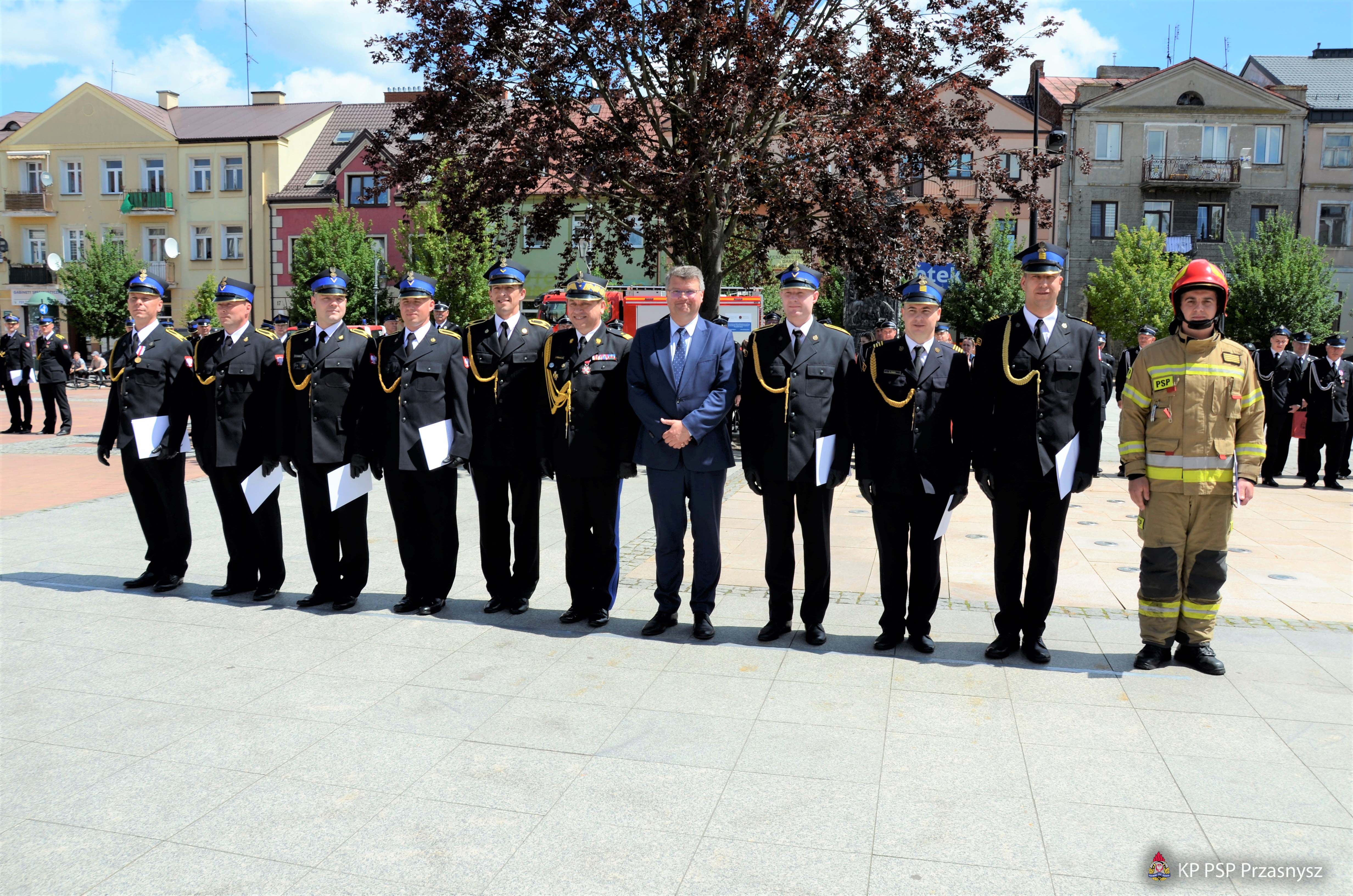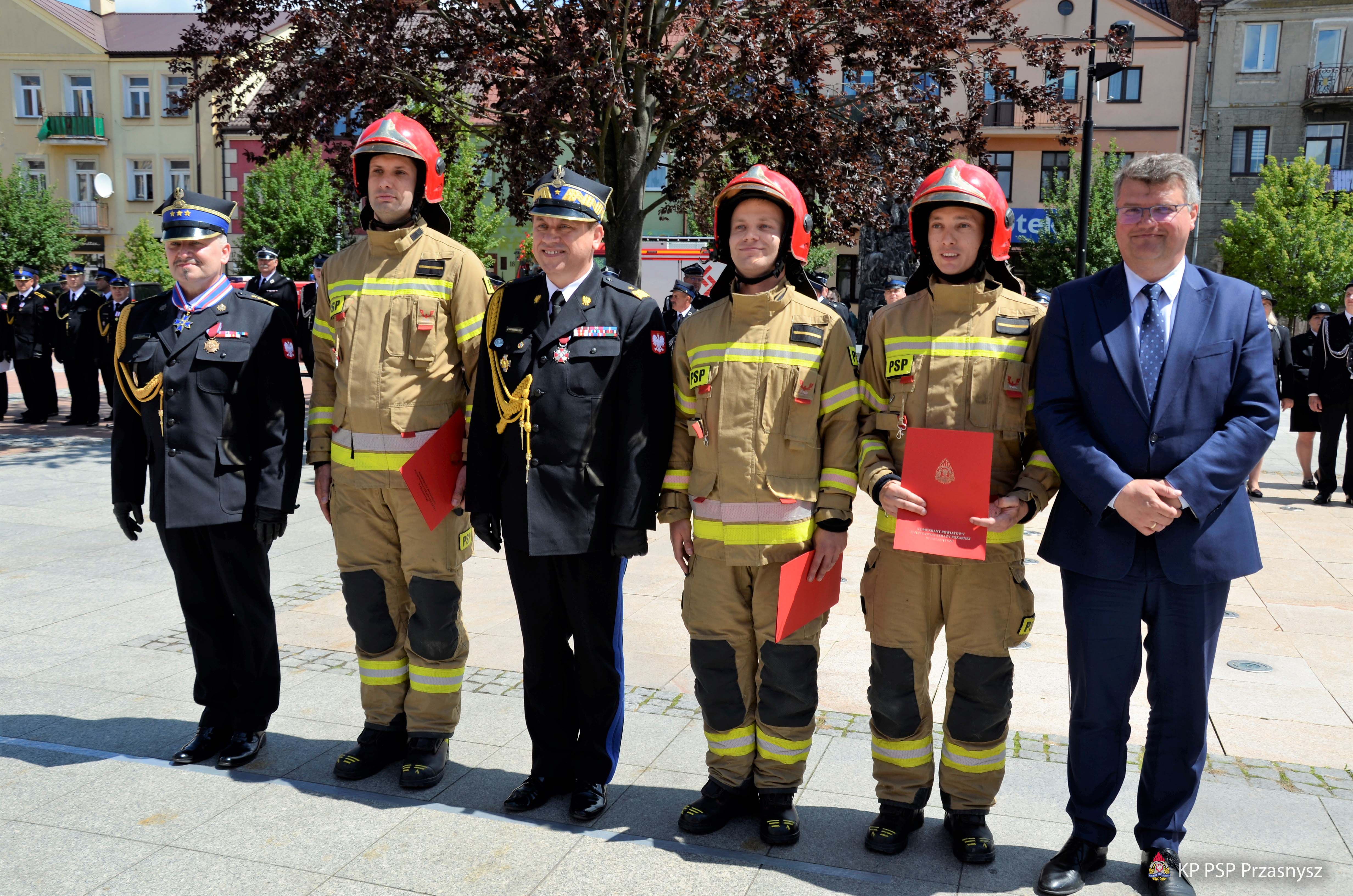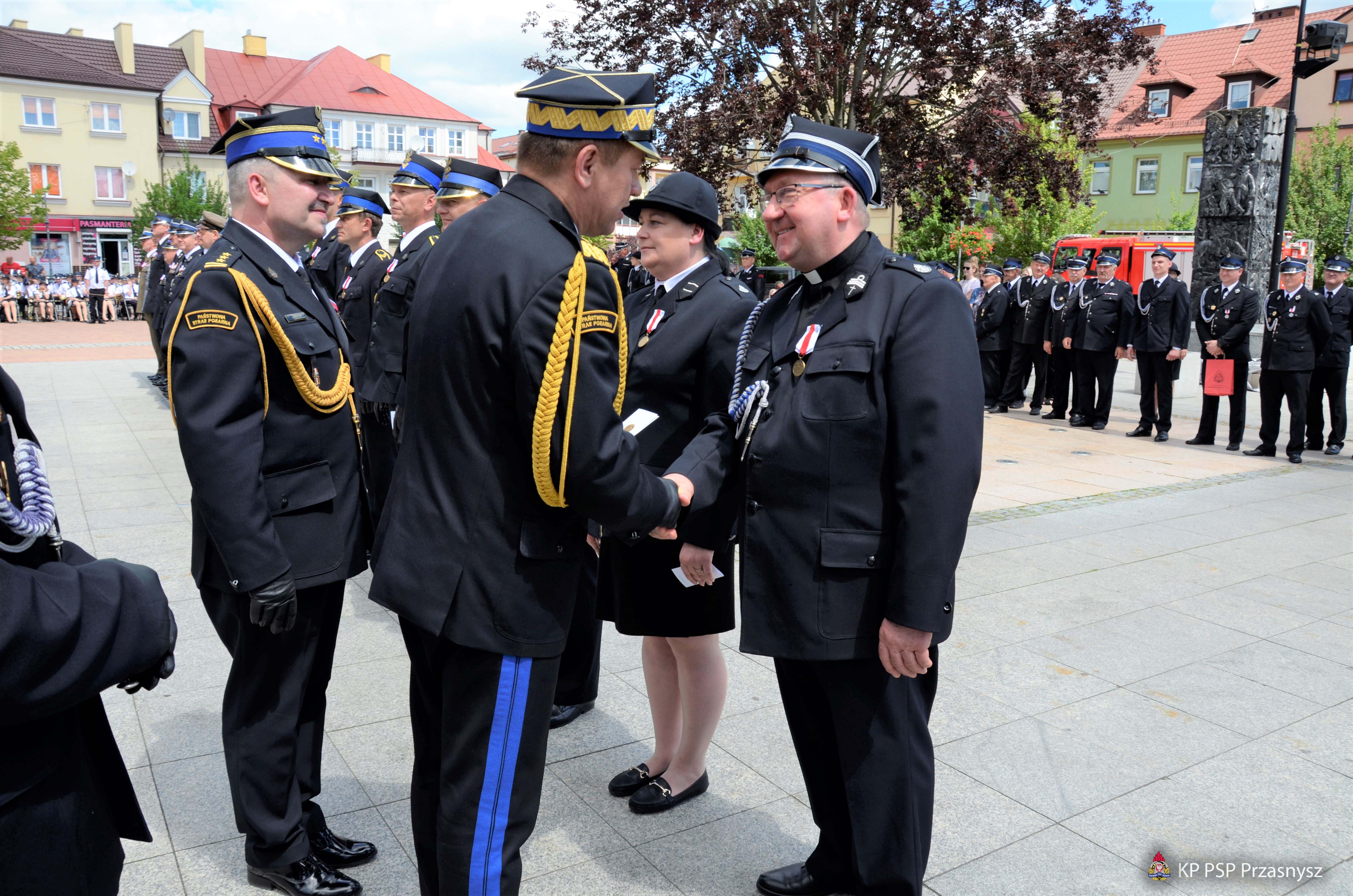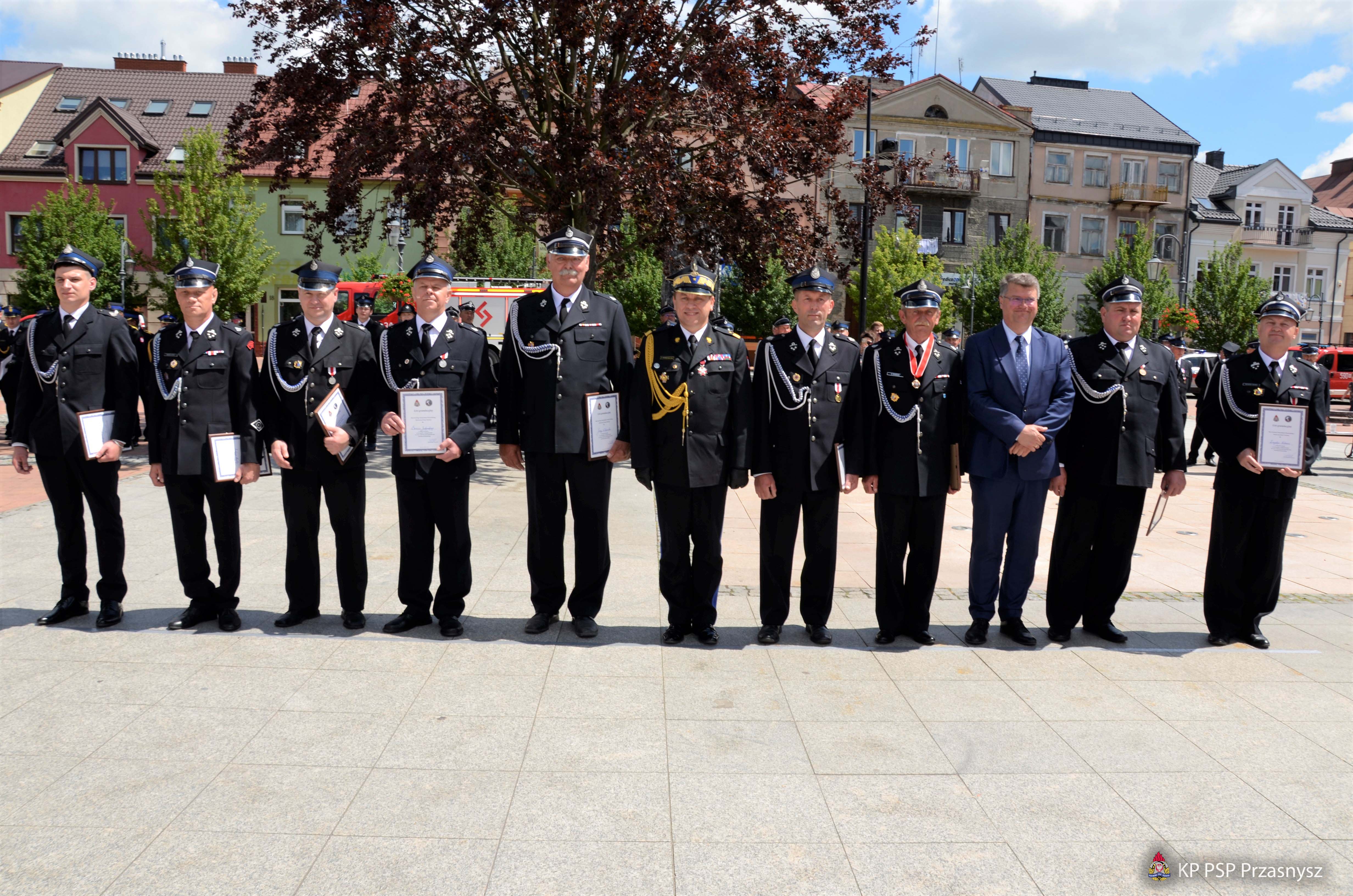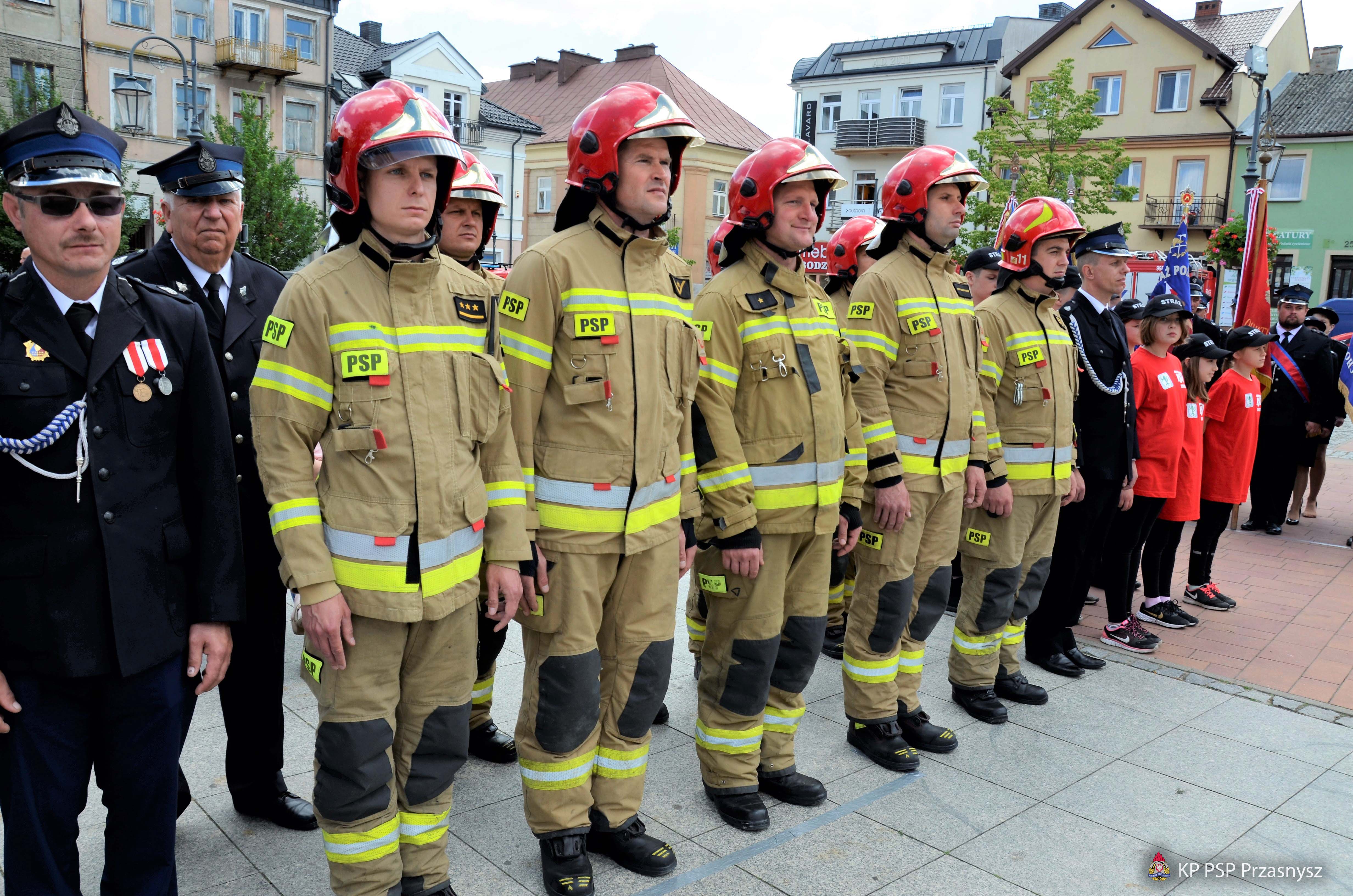 Dla strażaków z Przasnysza było to wyjątkowe święto ponieważ dla Komendy Powiatowej Państwowej Straży Pożarnej w Przasnyszu został nadany i wręczony Sztandar ufundowany przez społeczność lokalną, który jest wyrazem podziękowania strażakom i pracownikom cywilnym za ich służbę oraz pracę na rzecz poprawy bezpieczeństwa na terenie powiatu przasnyskiego. Uroczystego przekazania sztandaru dokonał Przewodniczący Społecznego Komitetu Fundatorów Sztandaru - Starosta Przasnyski Krzysztof Bieńkowski, Sekretarz Stanu w Ministerstwie Spraw Wewnętrznych i Administracji Pan Maciej Wąsik oraz Komendant Powiatowy Państwowej Straży Pożarnej w Przasnyszu st. bryg. Waldemar Białczak. Poświęcenia sztandaru dokonał kapelan strażaków powiatu przasnyskiego Ojciec dh Wiesław Wiśniewski CP i kapelan mazowieckich strażaków ks. mł. bryg. Jerzy Sieńkowski.