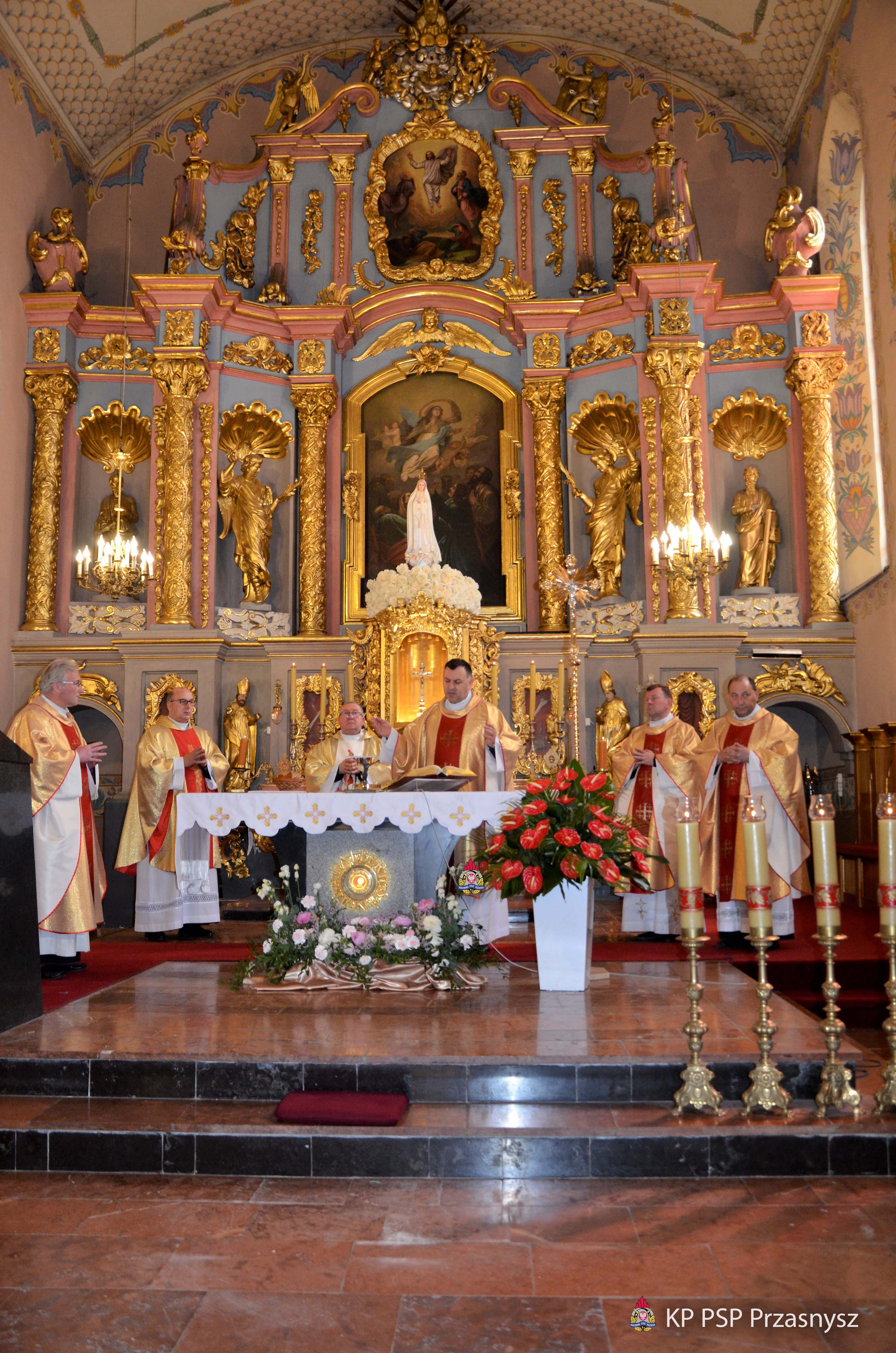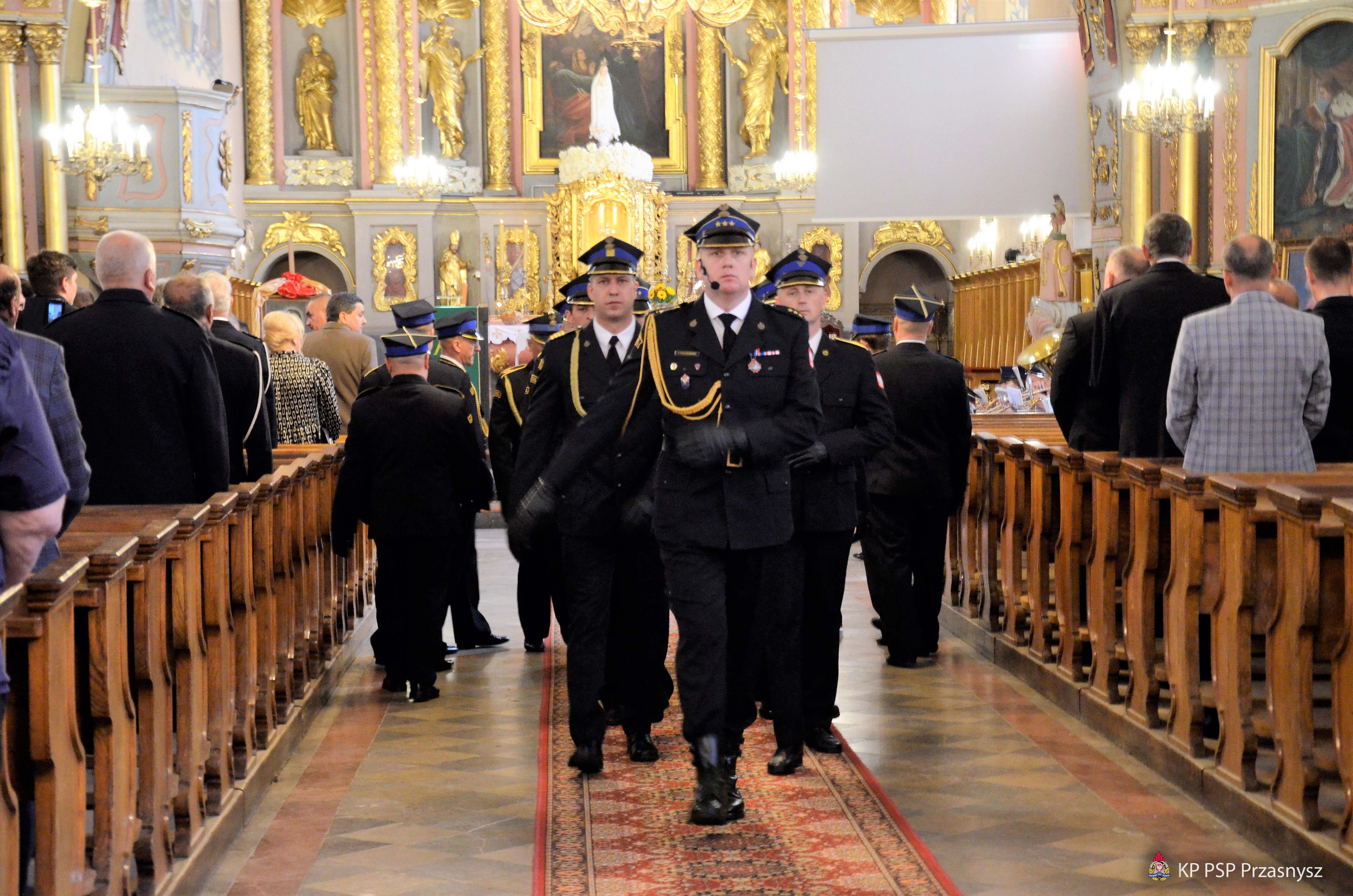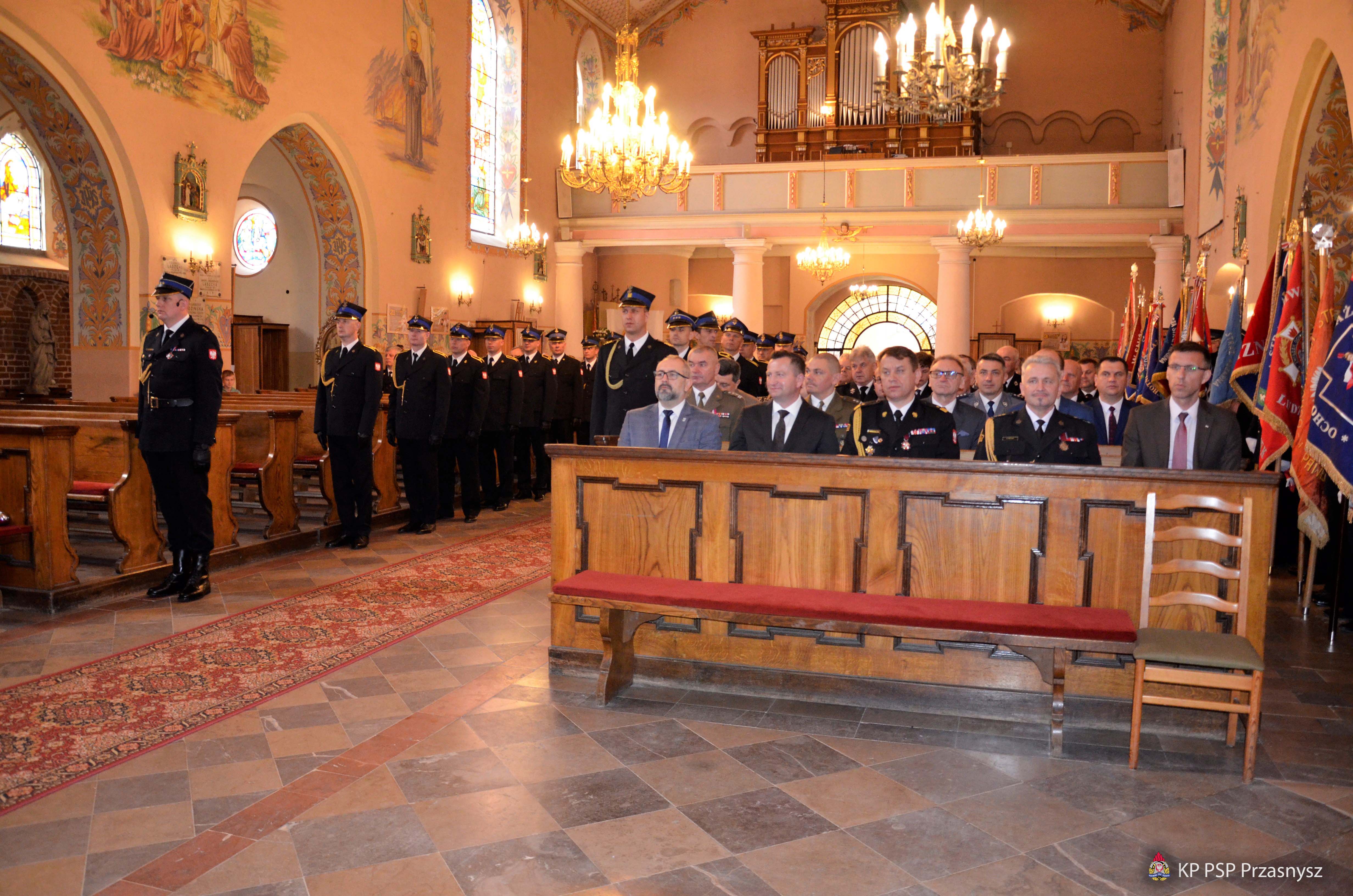 Uroczystość rozpoczęła się Mszą Świętą w intencji strażaków w Kościele Św. Wojciecha, którą sprawował kapelan strażaków powiatu przasnyskiego Ojciec dh Wiesław Wiśniewski w asyście, kapelana mazowieckich strażaków ks. mł.bryg. Jerzego Sieńkowskiego oraz księży proboszczów z parafii powiatu przasnyskiego.