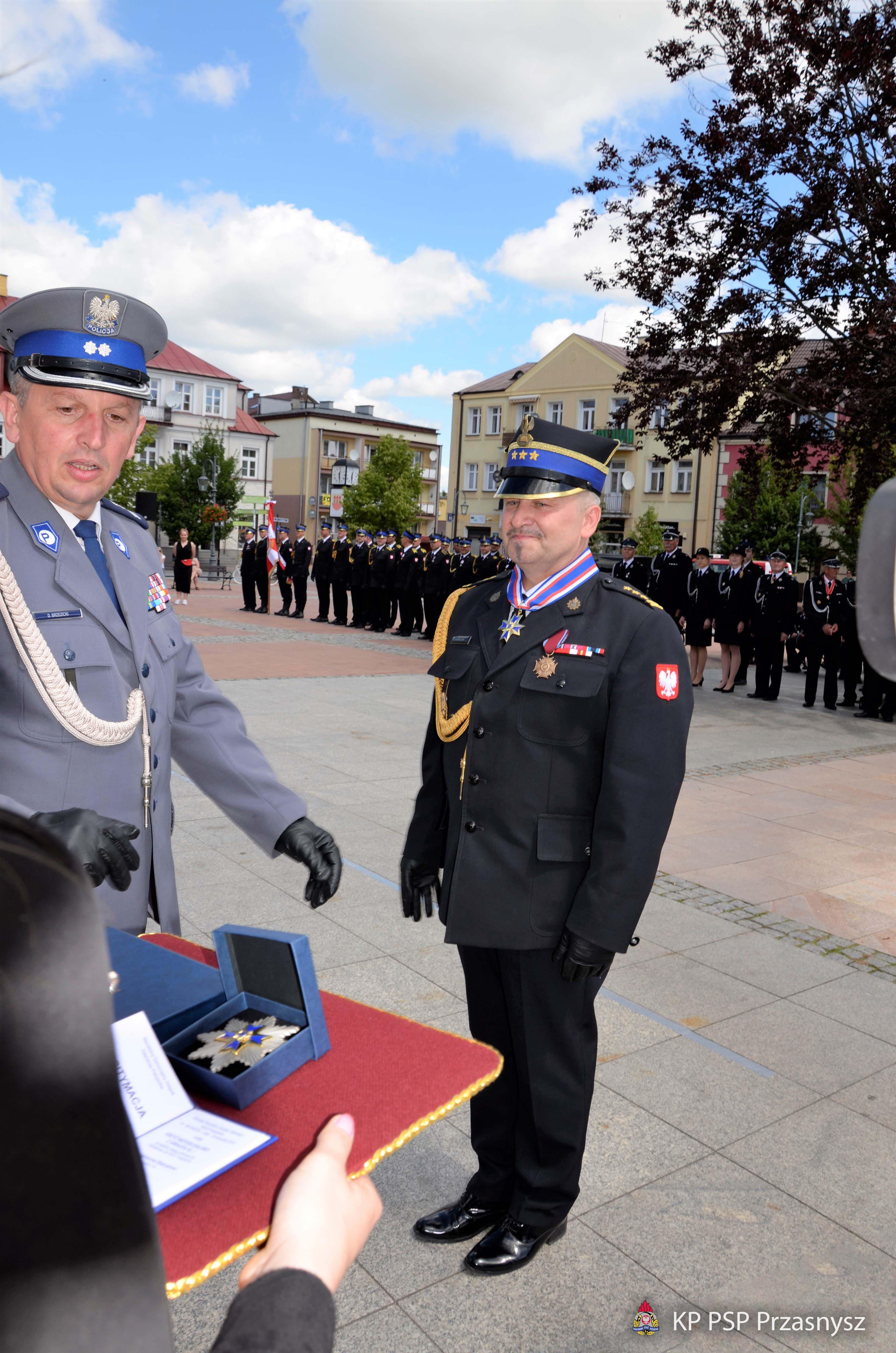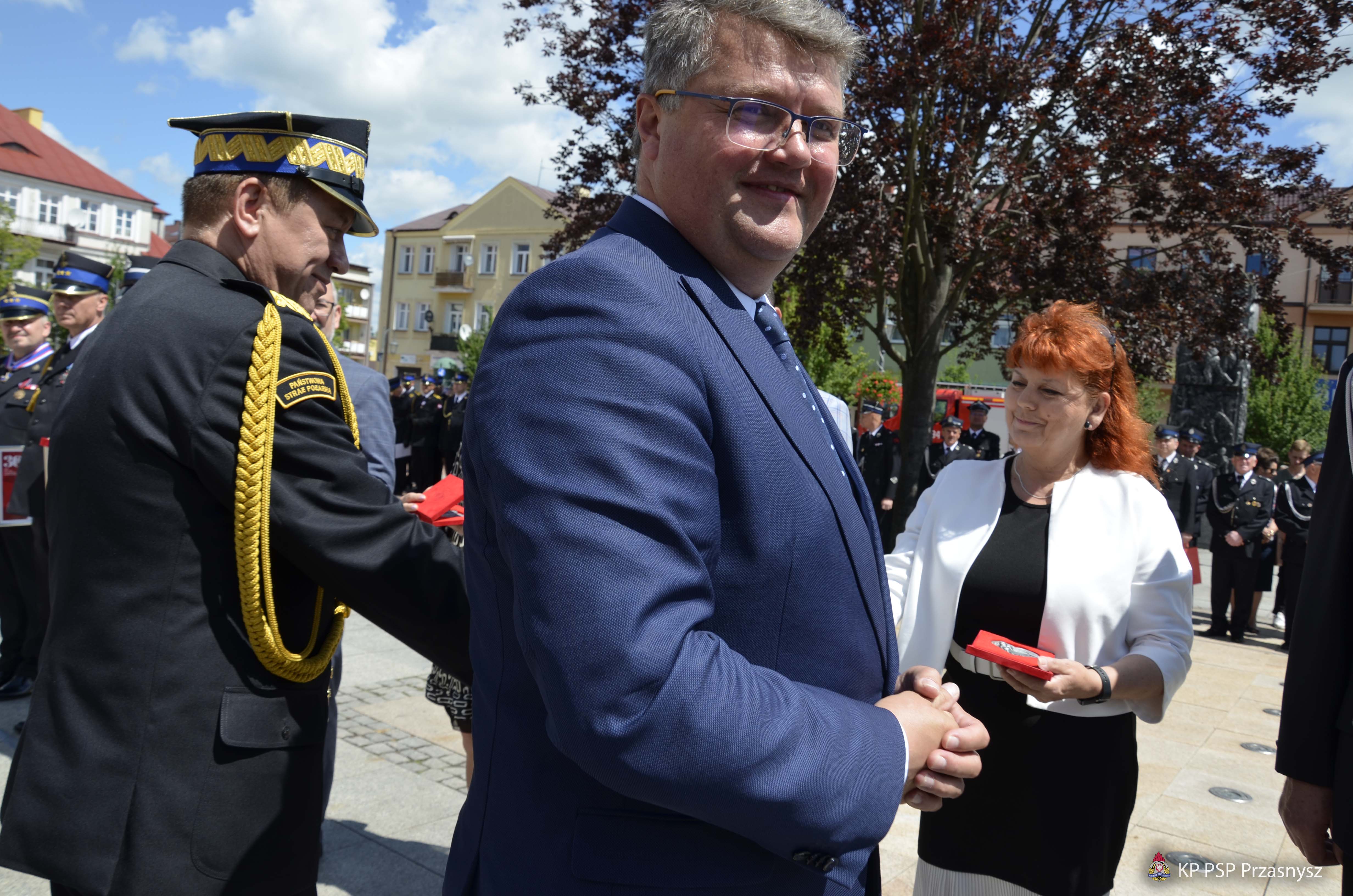 Podczas uroczystości st. bryg. Waldemar Białczak Komendant Powiatowy Państwowej Straży Pożarnej w Przasnyszu został odznaczony przez Zarząd Główny NSZZ Policjantów Krzyżem Niepodległości Klasy I z Gwiazdą, a z rąk Sekretarza Stanu w Ministerstwie Spraw Wewnętrznych i Administracji Pana Macieja Wąsika odebrał promesę na remont budynku Jednostki Ratowniczo-Gaśniczej.