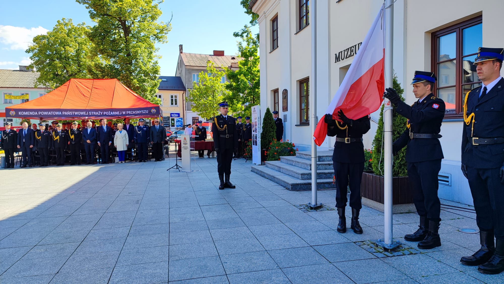 Obchody Powiatowego Dnia Strażaka w Przasnyszu swoją obecnością zaszczycili m.in.: Pan Rafał Romanowski Sekretarz Stanu w Ministerstwie Rolnictwa, Pani Anna Ewa Cicholska Poseł na Sejm, Komendant Główny Państwowej Straży Pożarnej w Przasnyszu gen.bryg. Andrzej Bartkowiak, nadbryg. Jarosław Piotrowski Mazowiecki Komendant Wojewódzki Państwowej Straży Pożarnej, parlamentarzyści, przedstawiciele władz wojewódzkich, przedstawiciele władz samorządowych, przedstawiciele służb mundurowych, przedstawiciele jednostek Ochotniczych Straży Pożarnych, lokalna społeczność.