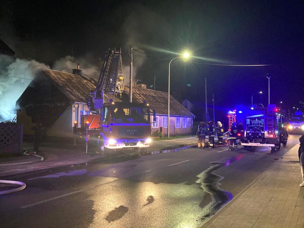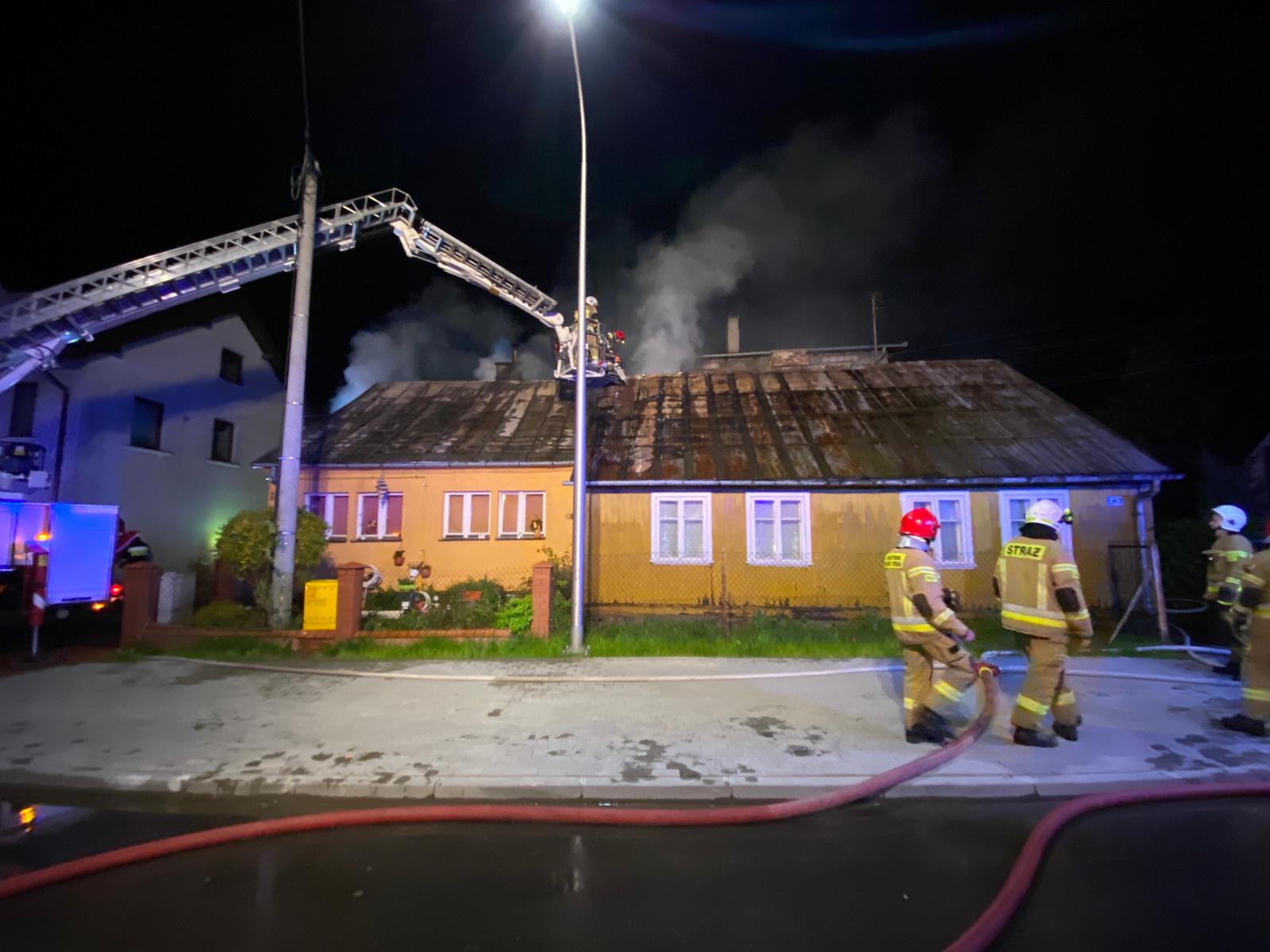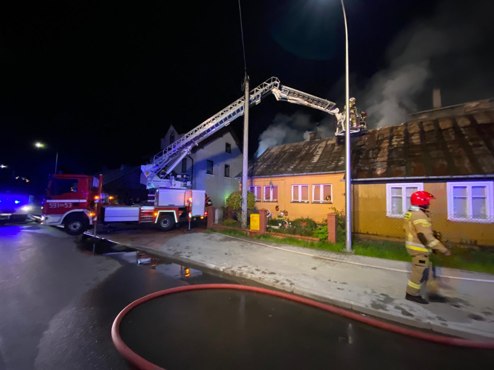 W chwili przyjazdu straży pożarnej zastano pożar rozwinięty konstrukcji dachowych na obiektach. Budynek zamieszkiwany był przez dwie starsze osoby dorosłe, które opuściły dom przed przybyciem służb ratowniczych. Ze względu na bardzo zwartą zabudowę pożar przeniósł się na przylegający szczytem sąsiedni niezamieszkany budynek drewniany kryty blachą. Na skutek wysokiej temperatury popękaniu uległy szyby oraz stopieniu ramy okienne w zagrożonym budynku mieszkalnym – murowanym w odległości około 2 metrów, budynek ten zamieszkiwały dwie osoby, które ewakuowały się przed przybyciem służb. Żadne osoby nie odniosły obrażeń.