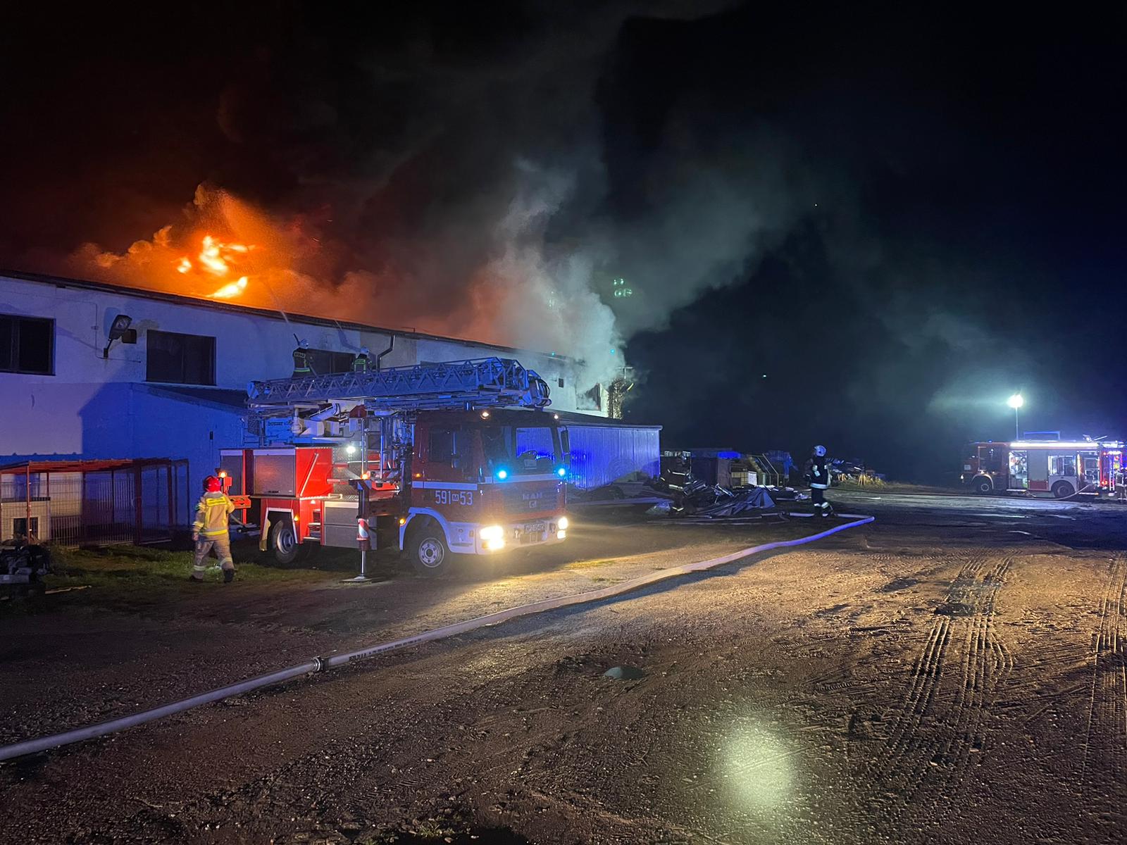 Pożar hali produkcyjno – magazynowej w miejscowości Mchowo