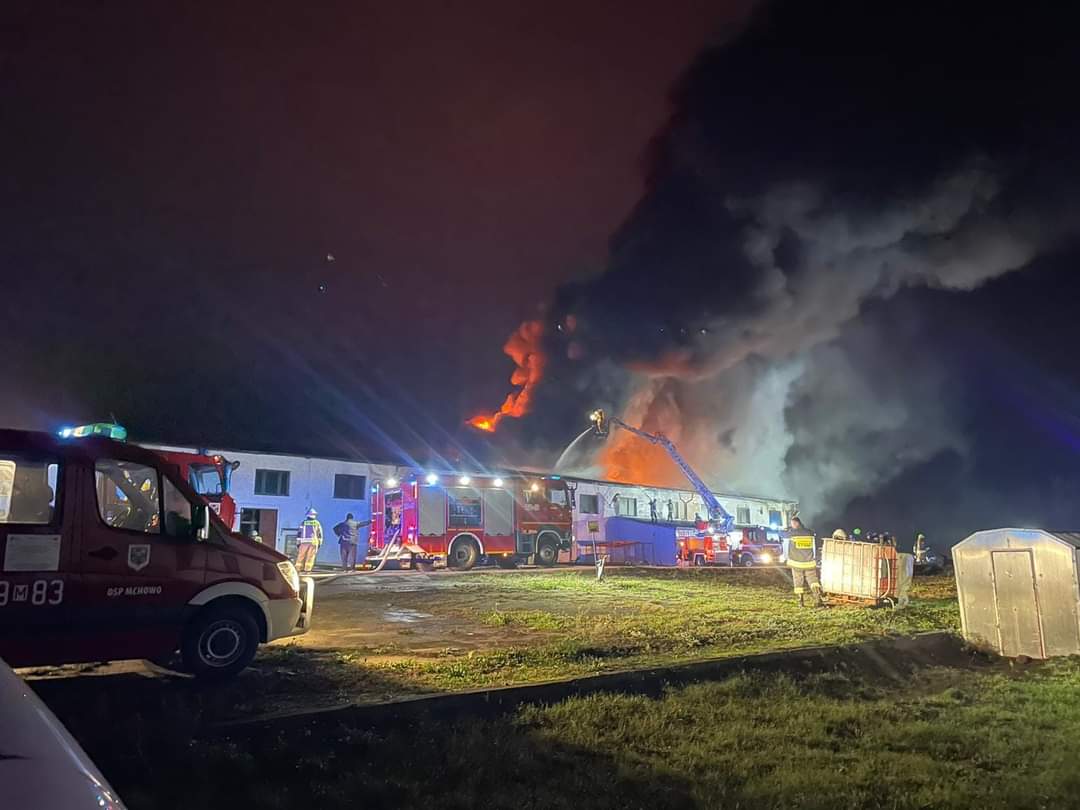 25 października o godz. 23.16 do Stanowiska Kierowania Państwowej Straży Pożarnej w Przasnyszu wpłynęło zgłoszenie o pożarze hali produkcyjno – magazynowej w miejscowości Mchowo.