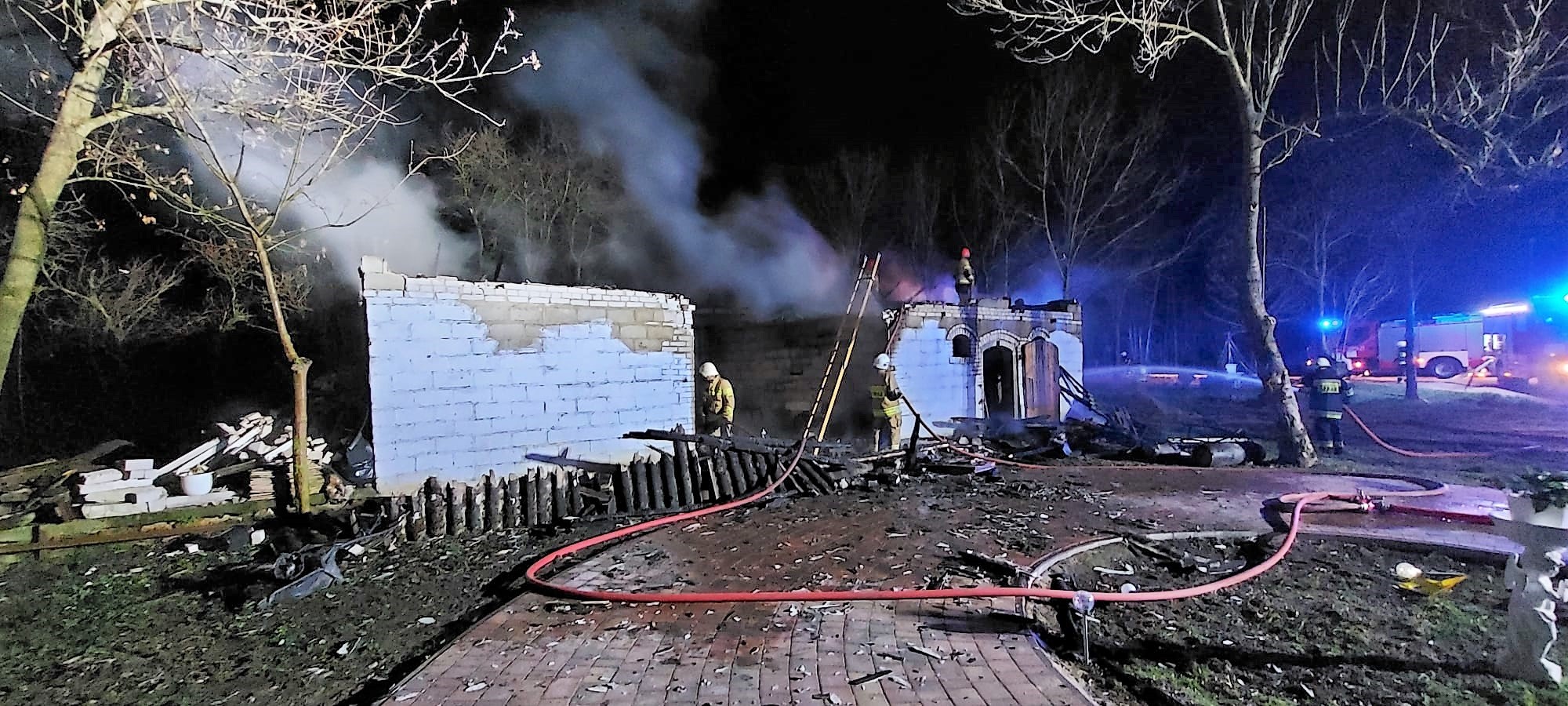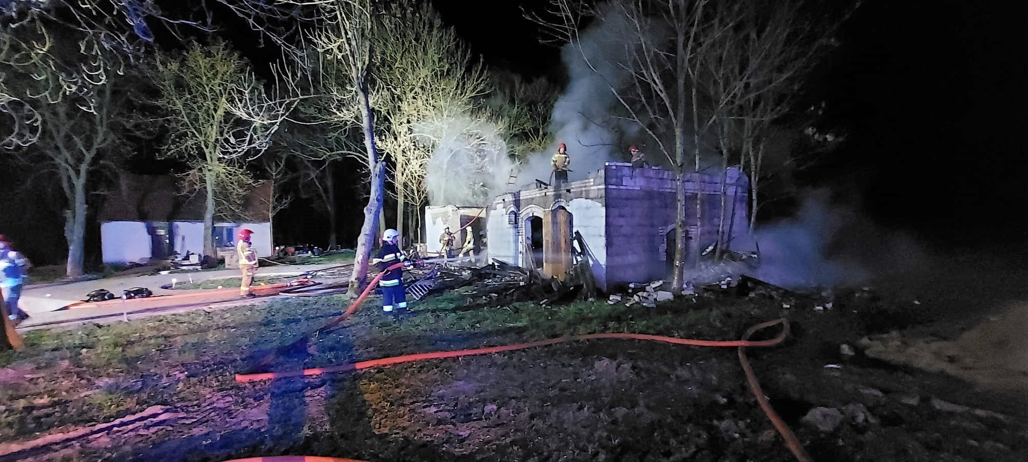 Po ugaszeniu pożaru dokonano niezbędnych prac rozbiórkowych budynku i przelaniu wszystkich nadpalonych elementów. Cały budynek został sprawdzony kamerą termowizyjną w celu wykluczenia dodatkowych zagrożeń pożarowych. Na koniec oddymiono całość i dokładnie przeszukano pogorzelisko - nie znaleziono żadnych osób poszkodowanych oraz nie było żadnych zwierząt.