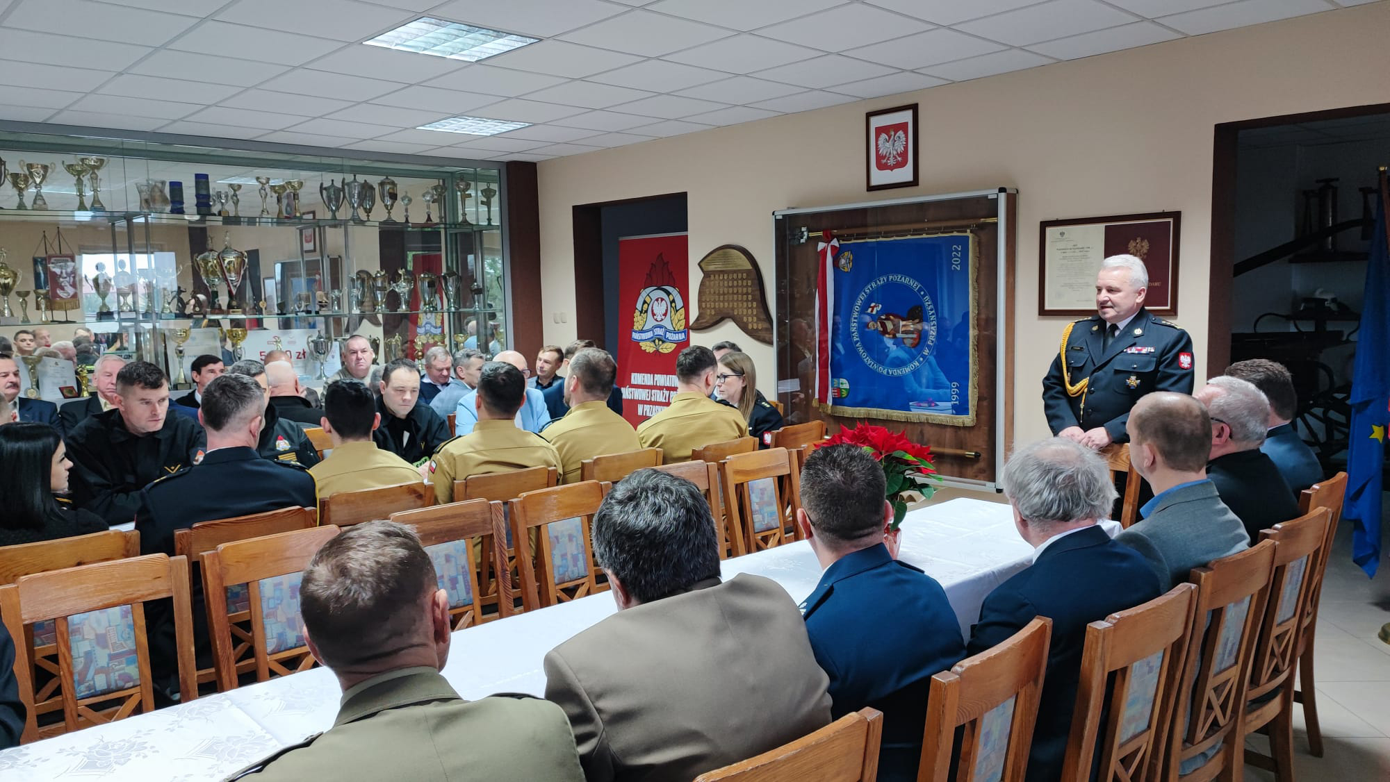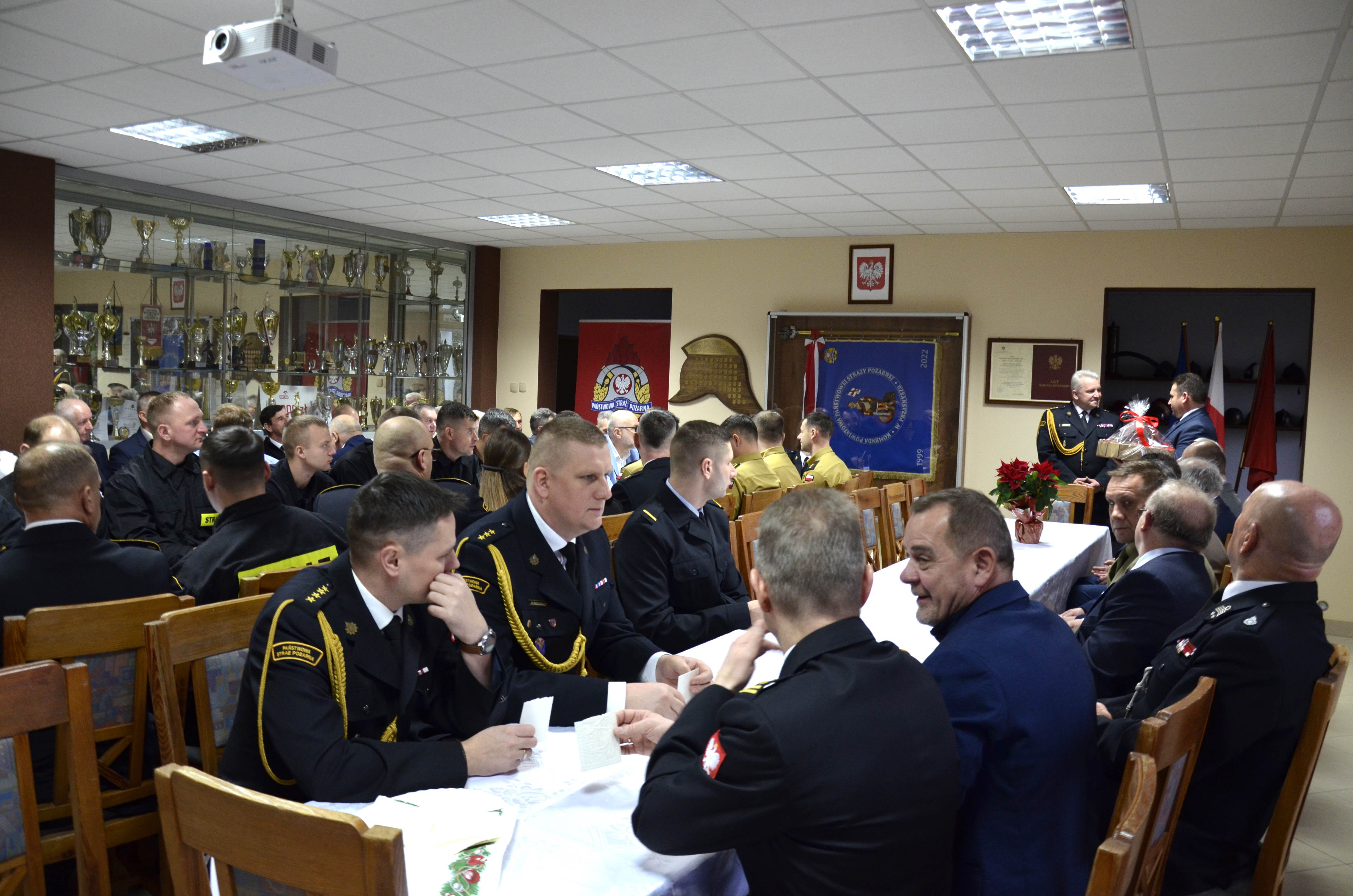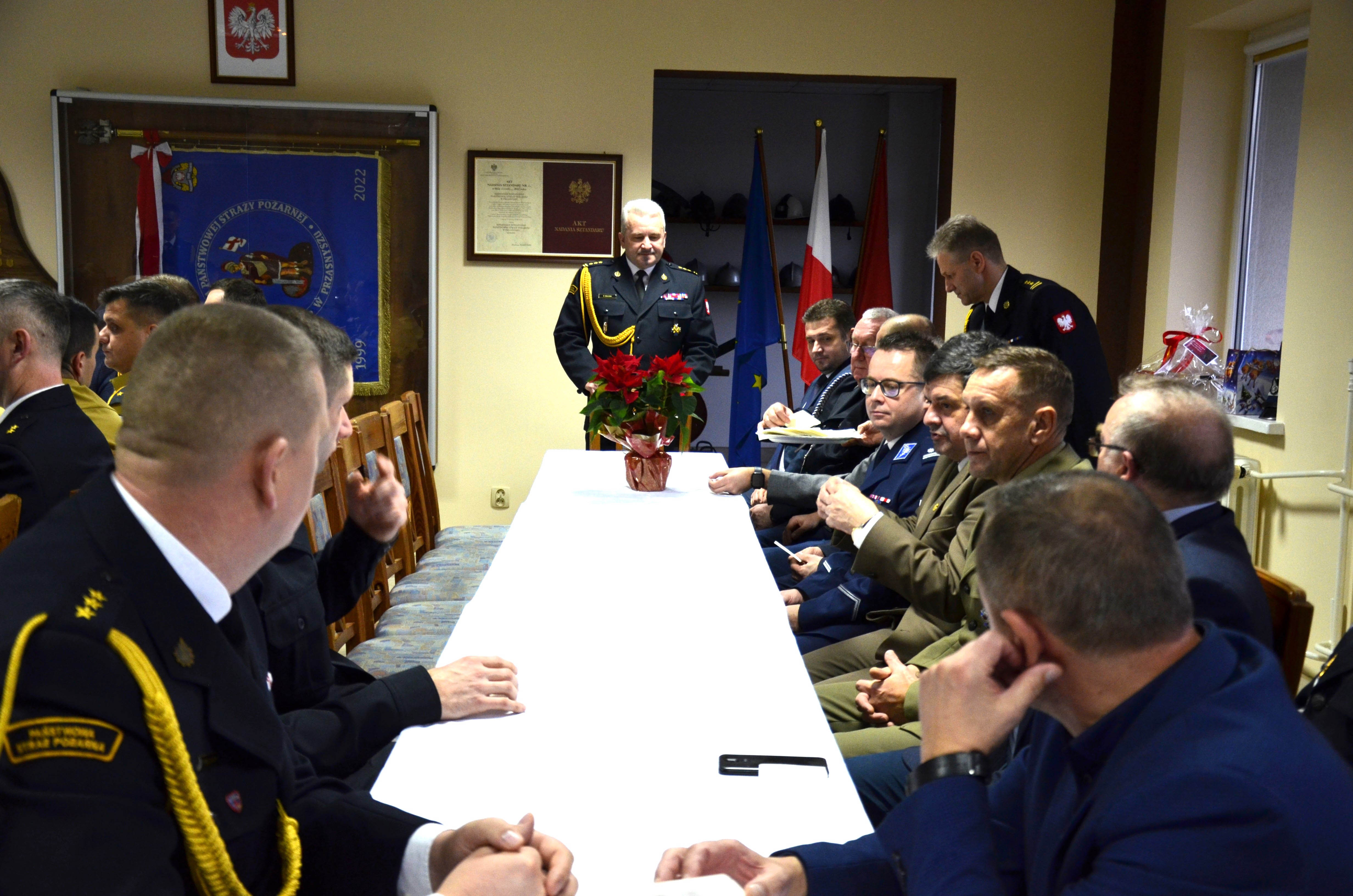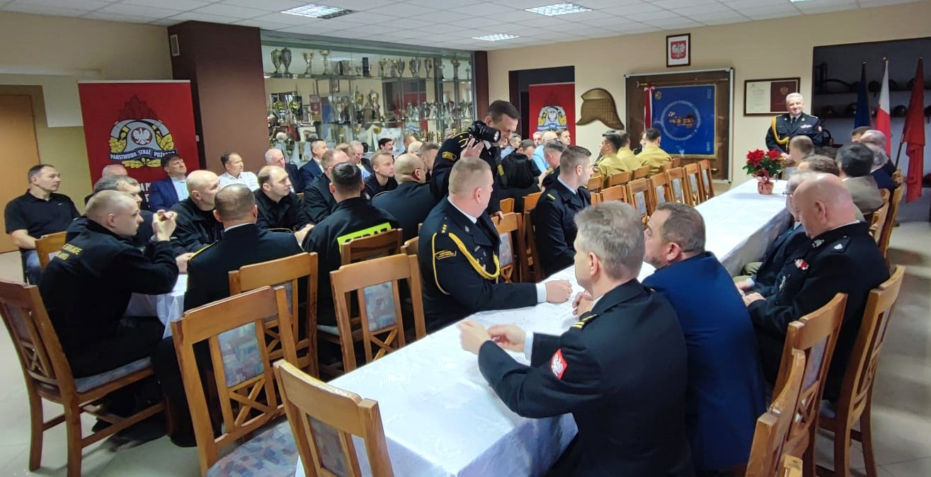 W dniu 21 grudnia 2023 r. tradycyjnie w naszej komendzie odbyło się wigilijne spotkanie opłatkowe, w którym uczestniczyli czynni funkcjonariusze, pracownicy cywilni oraz emerytowani funkcjonariusze Komendy Powiatowej Państwowej Straży Pożarnej w Przasnyszu.